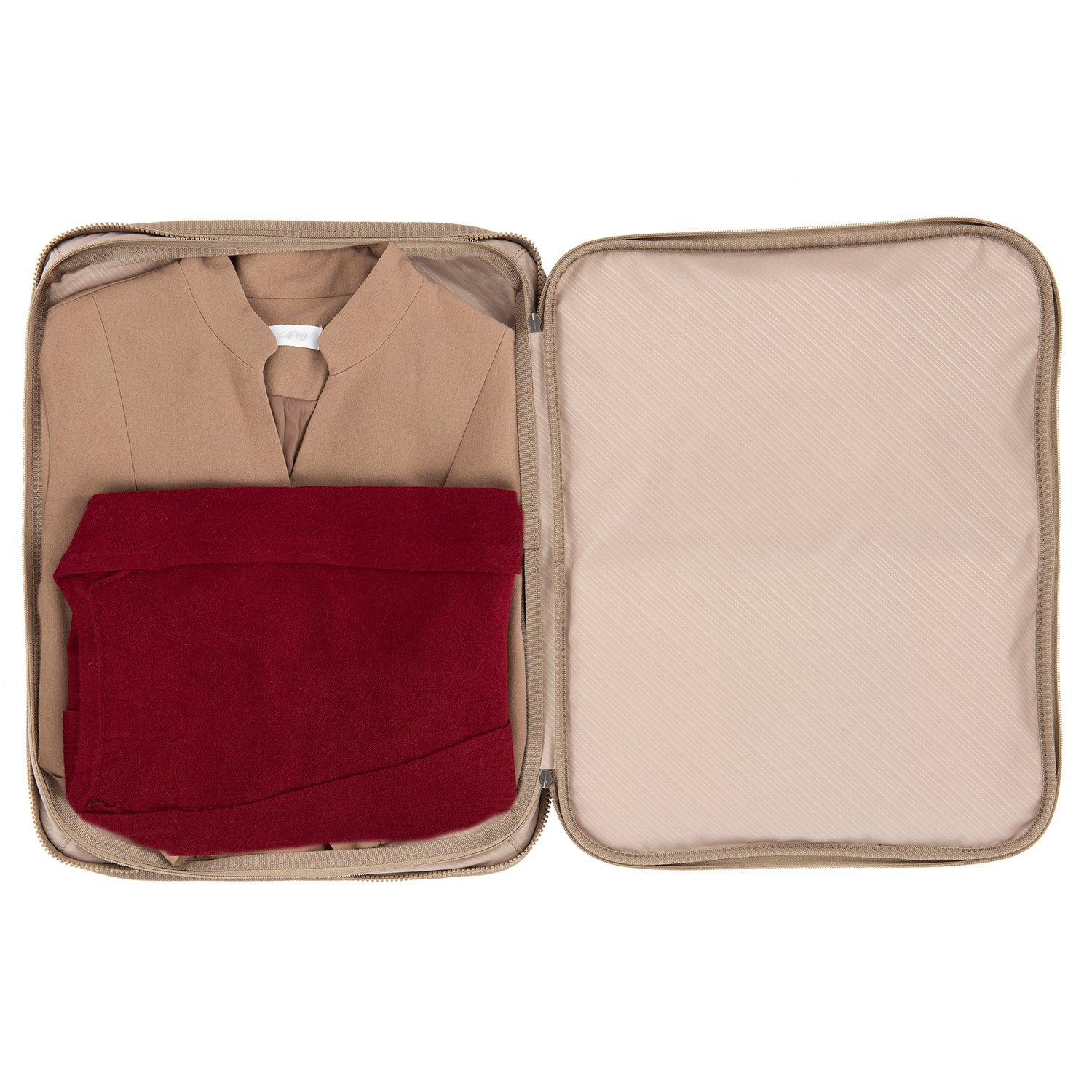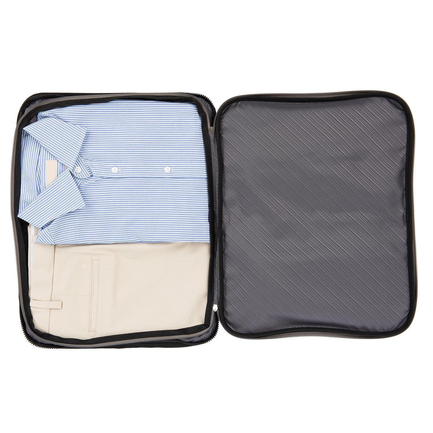 • Rear full-length zippered pocket keeps pressed shirts or blouses wrinkle-free. Two integrated packing cubes keep contents organized and easy to access.