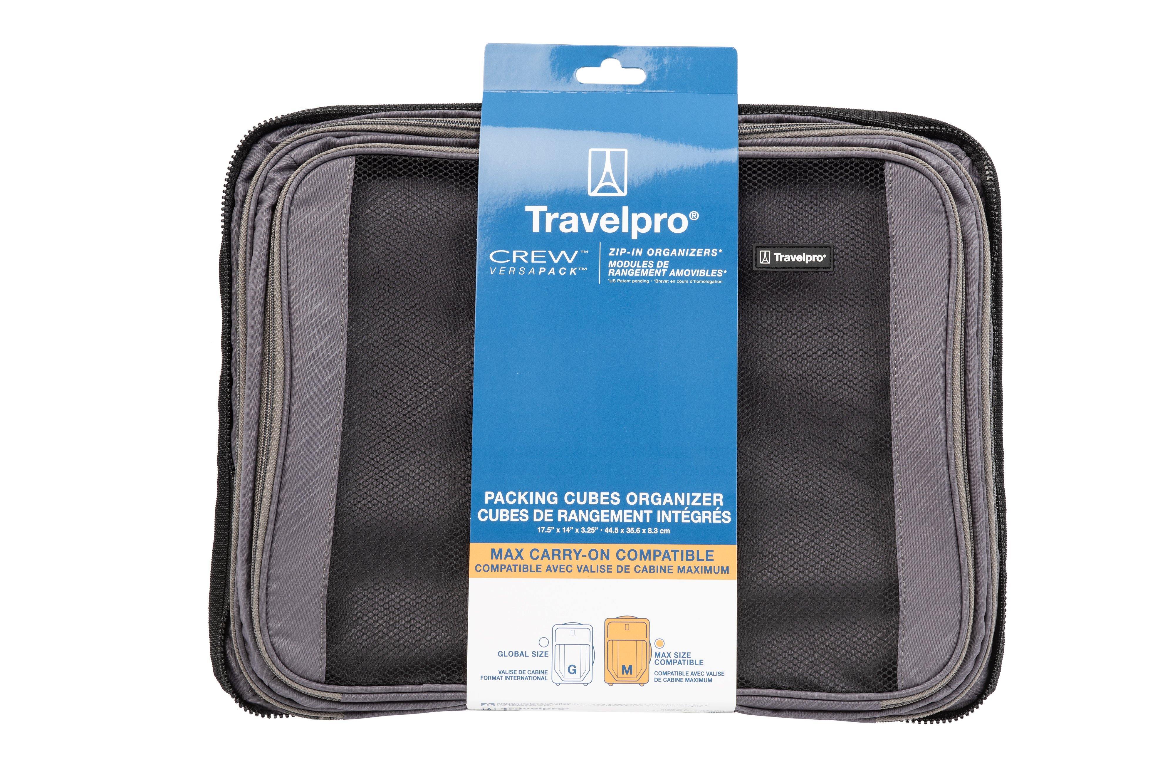 Customize your luggage and stay ultra-organized, wherever you land. The Travelpro Zip-in Packing Cubes Organizer features two built-in zippered packing cubesgreat for packing everything from shorts and shirts to undergarments, accessories, grooming tools, cords and more. Plus, a zippered full-length rear pocket protects shirts and blouses from wrinkling. Specifically designed to zip into the interior lid of the Crew VersaPack Global Carry-on, the Packing Cubes Organizer also works as a free-floating organizer in the main compartment of your carry-on or larger Crew VersaPack check-in models. Pack the way your lifestyle demands, and keep everything organized in a zip with the entire line of interchangeable Travelpro patent-pending Zip-in Organizers. Backed by our Built For a Lifetime Limited Warranty with the Trusted Companion Promise.