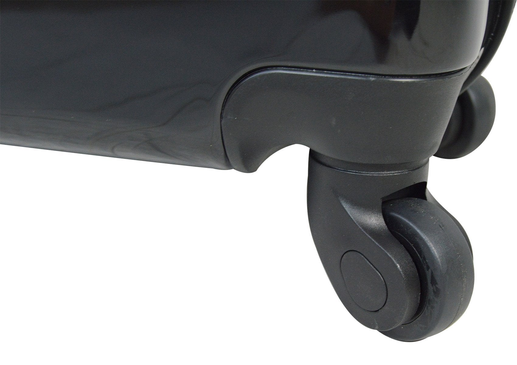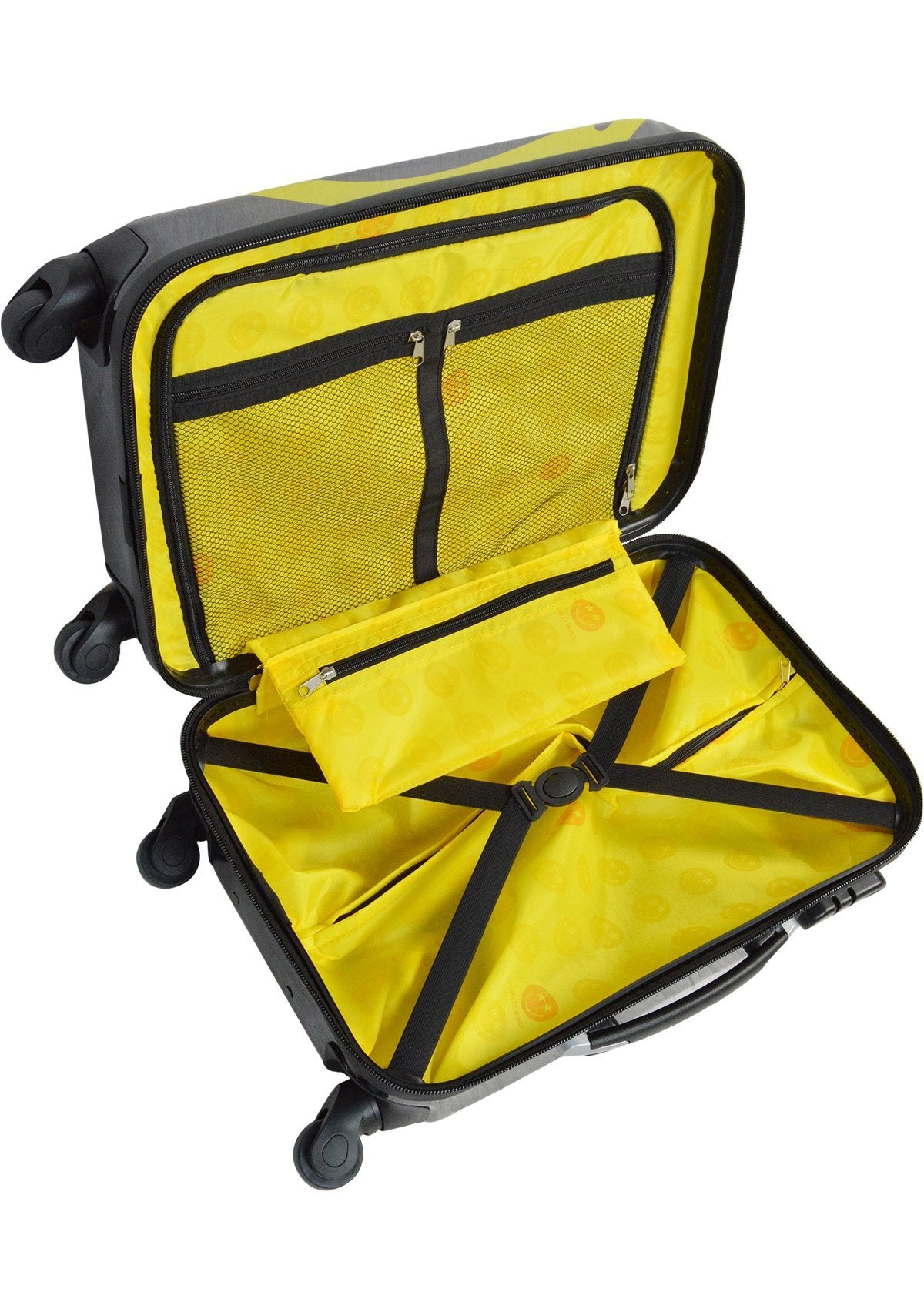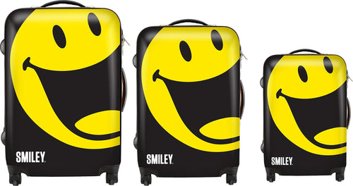 Lightweight Durable polycarbonate composite construction High performance Multi directional wheels Smooth action aluminum trolley system Expansion feature on 26 and 30 styles Soft touch carry handles TSA approved combination locks Self repairing EZ-Zippers Features. Roomy Split opening design. Printed Smiley Lining. Elastic tie down straps. Divider curtain for maximum organization. Large mesh and small lining storage pockets. 5 year Warranty Specifications.