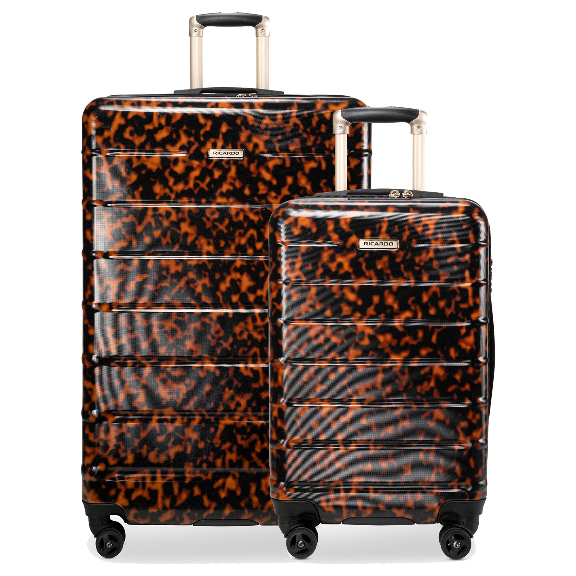 Travel beautifully with the Ricardo Beverly Hills Cambria Hardside 2-Piece Luggage Set, featuring the perfect pairing of a 20" carry-on and 29" large check-in suitcase. Crafted from a durable yet lightweight polycarbonate alloy, this set delivers exceptional impact resistance and a sleek, modern design in stunning color options like Black Pearl, Mango Tango, Blue Pearl, and Tortoise. Each suitcase with wheels glides effortlessly on 360 dual spinner wheels and features an ergonomic telescoping handle with a comfortable grip, plus soft-touch top and side carry handles for easy lifting. Inside, youll find spacious dual packing compartments with adjustable compression straps, zippered pockets, and a built-in wet pocket for organized travel. The expandable design adds flexibility, while the TSA-recognized combination lock keeps your belongings secure through every journey. Whether for quick getaways or long adventures, this versatile luggage set nests neatly for storage and is backed by Ricardos trusted 10-Year Limited Warrantyyour stylish travel bag duo built to journey beautifully, trip after trip.
