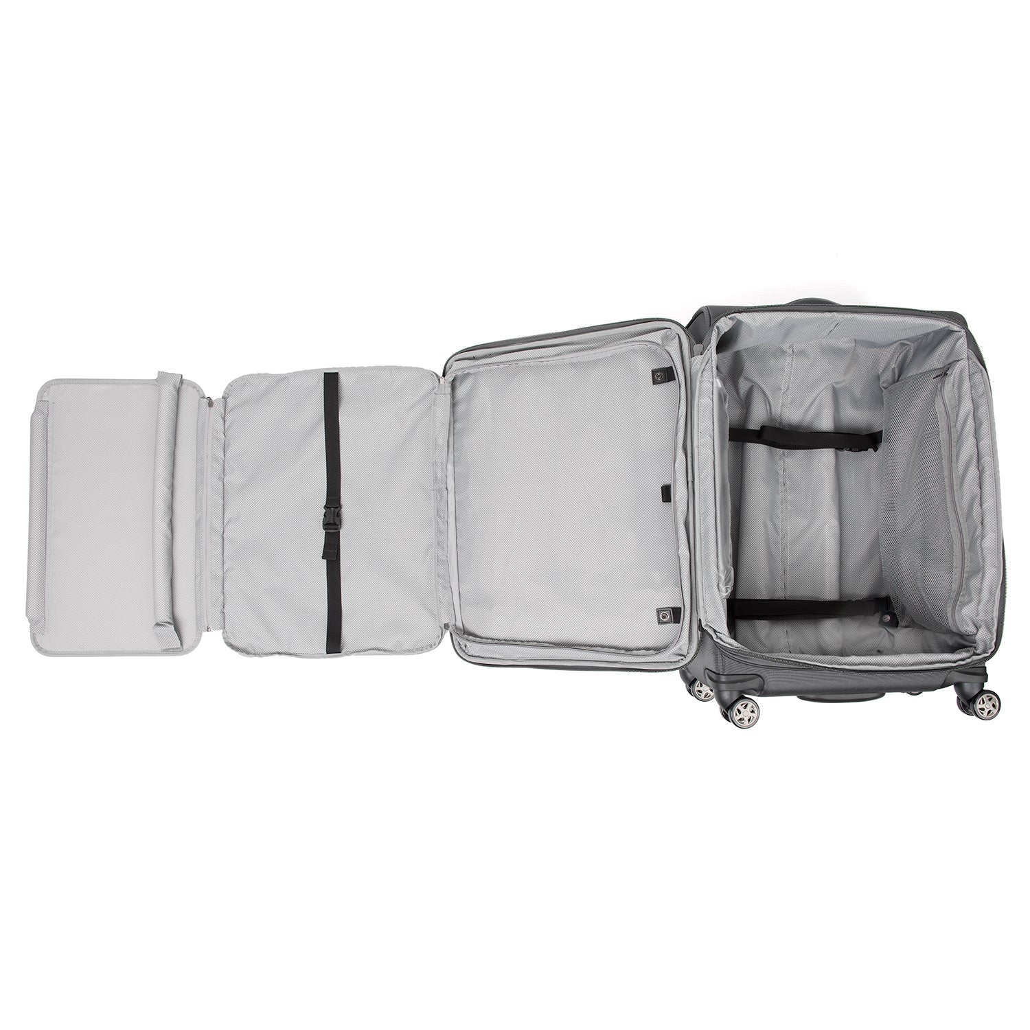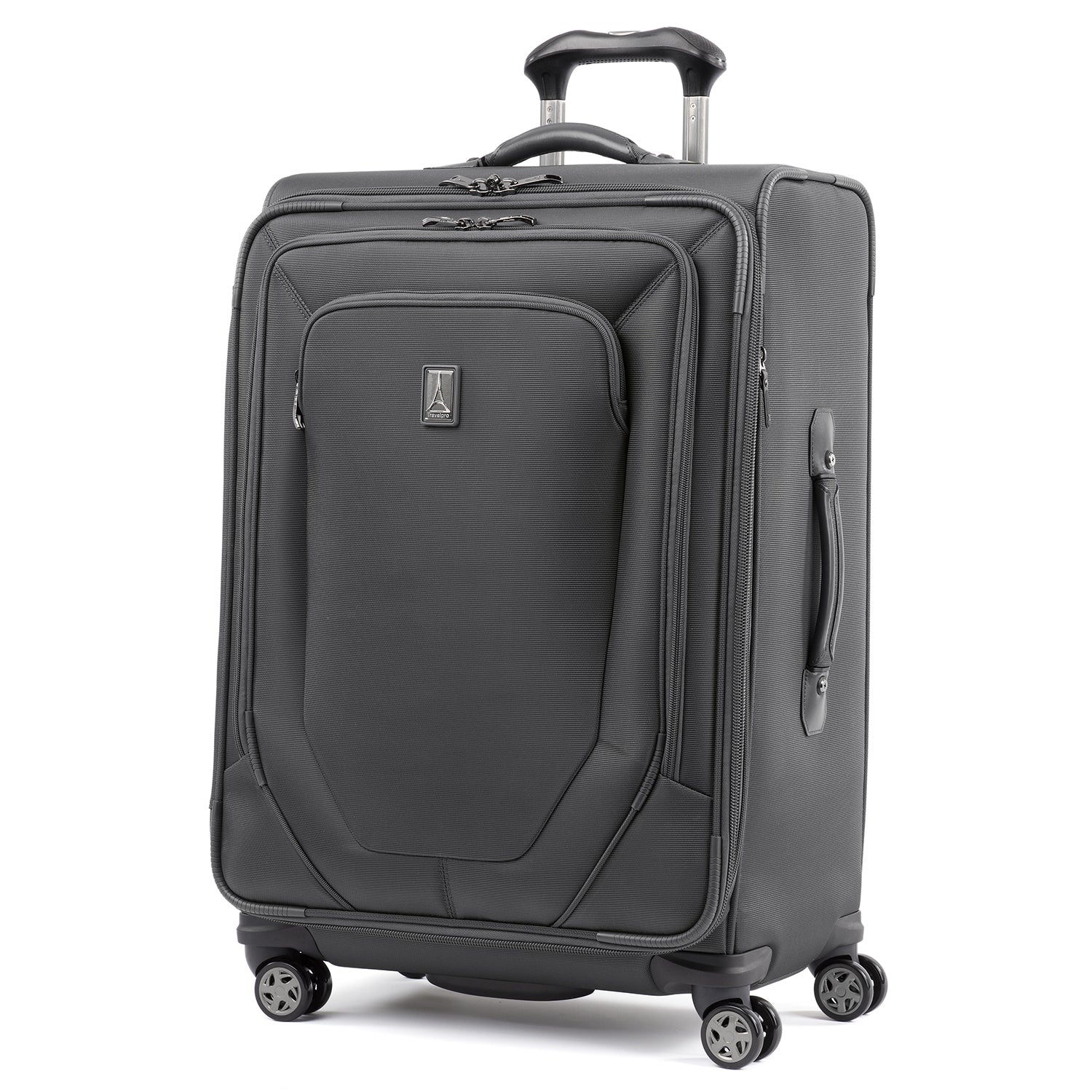 The traveler crew 10 25 inch expandable spinner suite is built for frequent flyers. Traveler's crew 10 incorporates the most advanced technology for spinner and roll aboard luggage. Packed with amazing innovations - magnetron wheels, power scope extension handle, contour grip, customizable interior tie-down straps, durable buckles and shear resistant zipper heads - this crew series is a breakthrough in durability, maneuverability and comfort. Amazingly durable and lightweight, this collection elevates traveler's heritage of design excellence to a new standard. Backed by a lifetime warranty, crew 10 luggage is engineered to last.