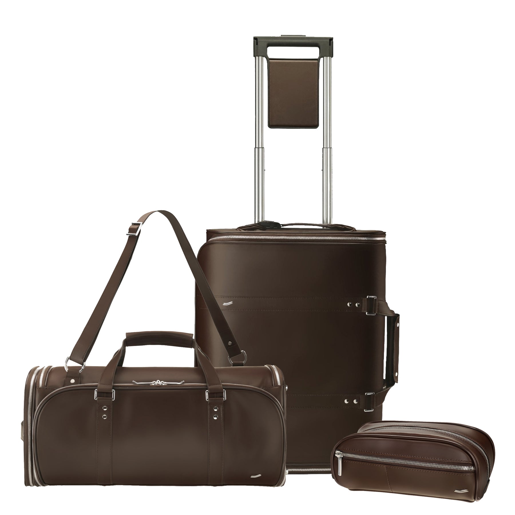 3-Piece Travel Set Zero Crease System, Leather Travel Bag & Dopp Kit