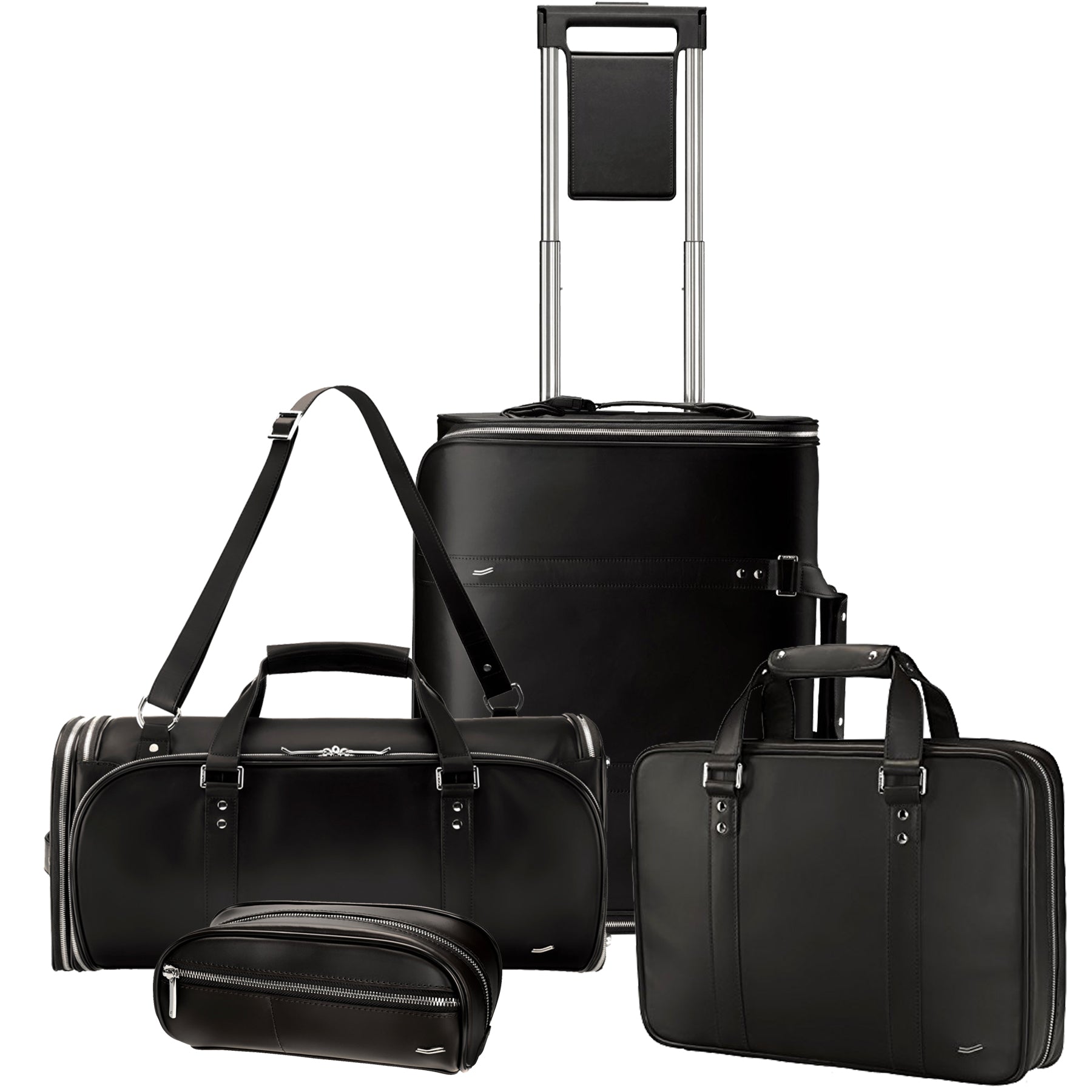 4-Piece Travel Set Zero Crease System, Leather Travel Bag, Leather Briefcase & Dopp Kit