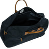 • Duffle: Not only is our foldable travel bag functional, it's also exceptionally stylish and sleek. Leave the tired gym bag at home, and travel in style with our gorgeous weekender bag. Our suitcase-friendly attachment bag is made using water-resistant, satin nylon with full-grain Tuscan leather trim. It features 1 exterior zipper pocket, durable handles, and a rear sleeve to secure to the luggage handle.