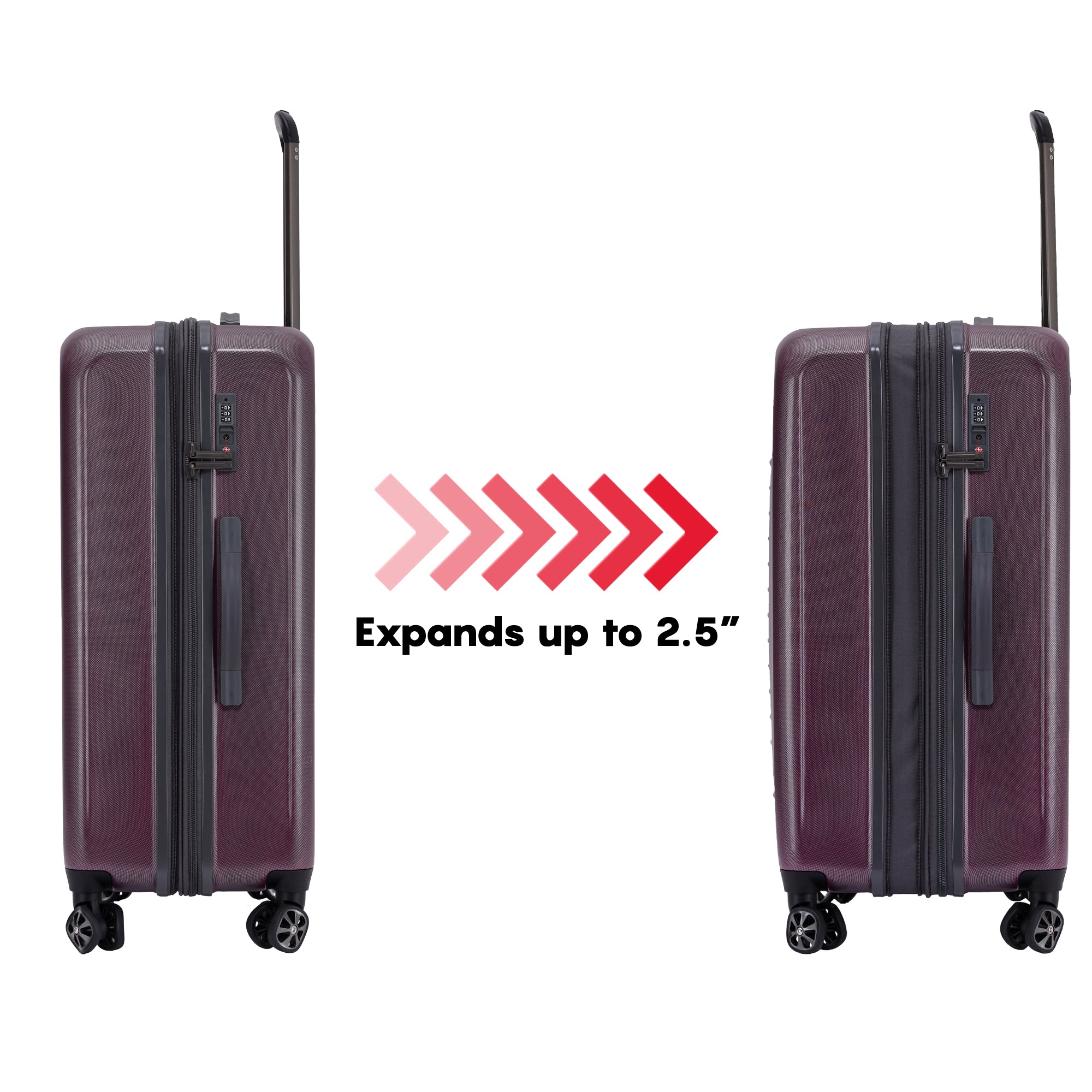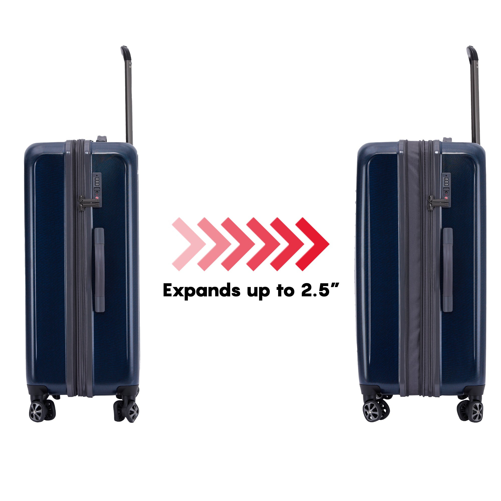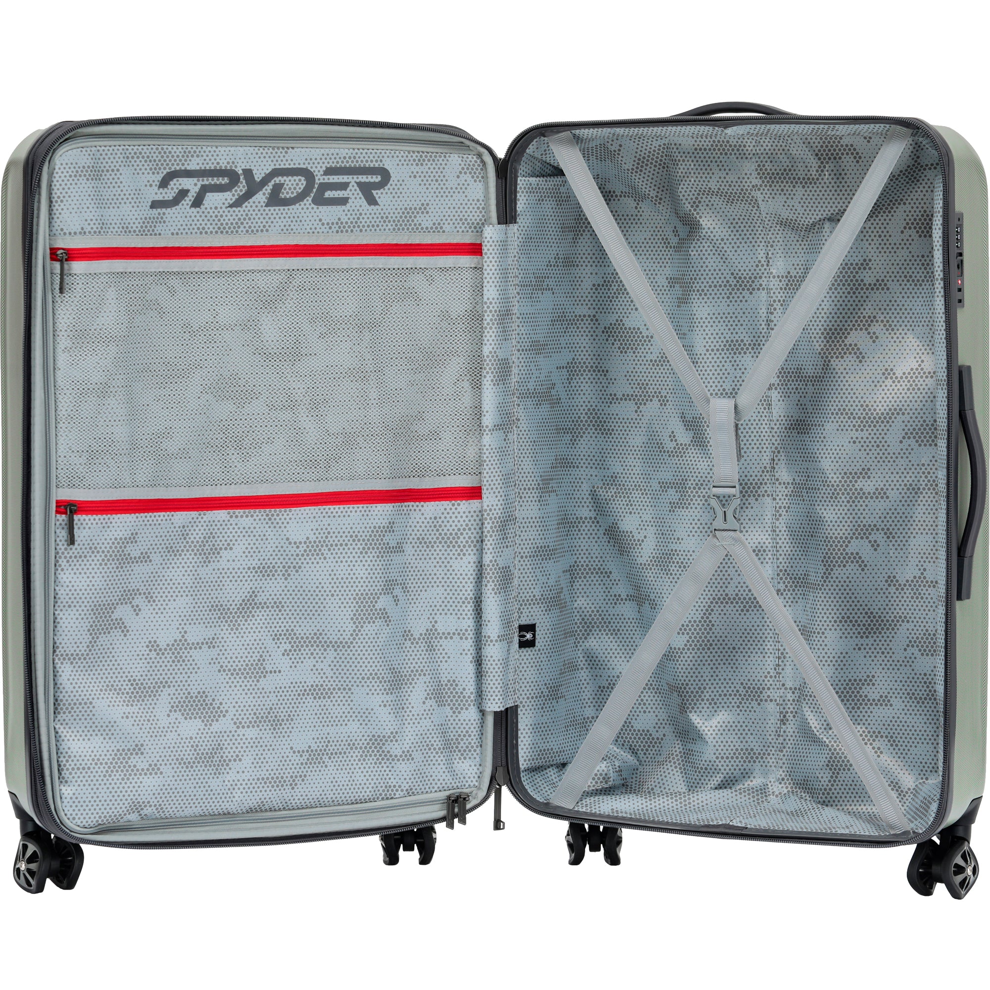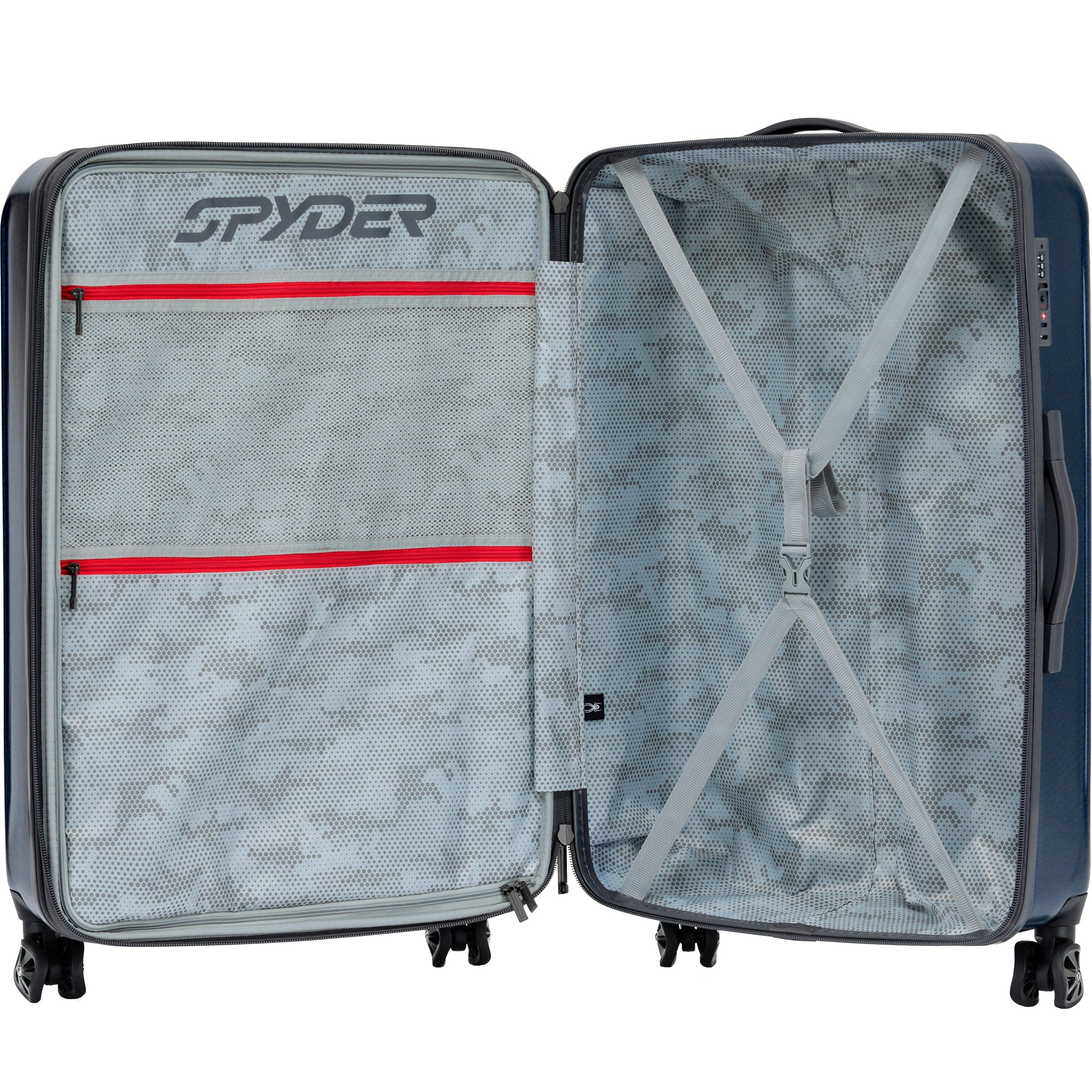 Discover the Spyder Rails Hardside Expandable Suitcase Series, designed for smooth and organized travel. Available in 20" carry-on, 24", and 28" sizes, as well as 2-piece and 3-piece sets, there's an option for every journey. Enjoy maximum durability and a quiet ride with dual 360 spinner Shark wheels. Expand your packing capacity with a full 2.5 expansion. The multi-stage telescopic handle system ensures comfort and easy wheeling. Stay organized with two packing compartments, compression straps, a mesh divider, and multiple accessory pockets. Easily lift your packed case with two convenient carry handles. A TSA-approved combination lock keeps your belongings secure. Backed by a 5-year limited warranty, travel confidently with the Spyder Rails Suitcase Series.