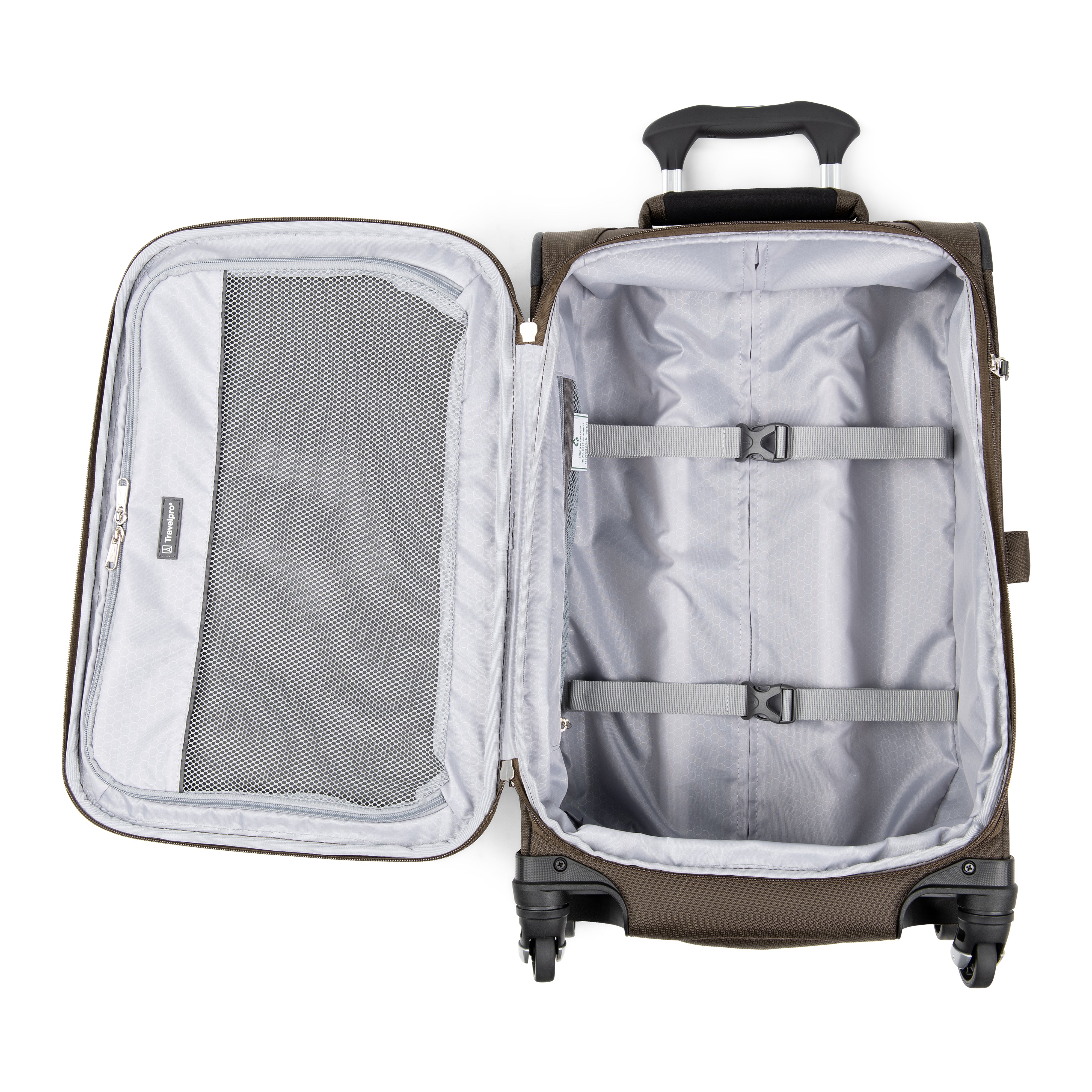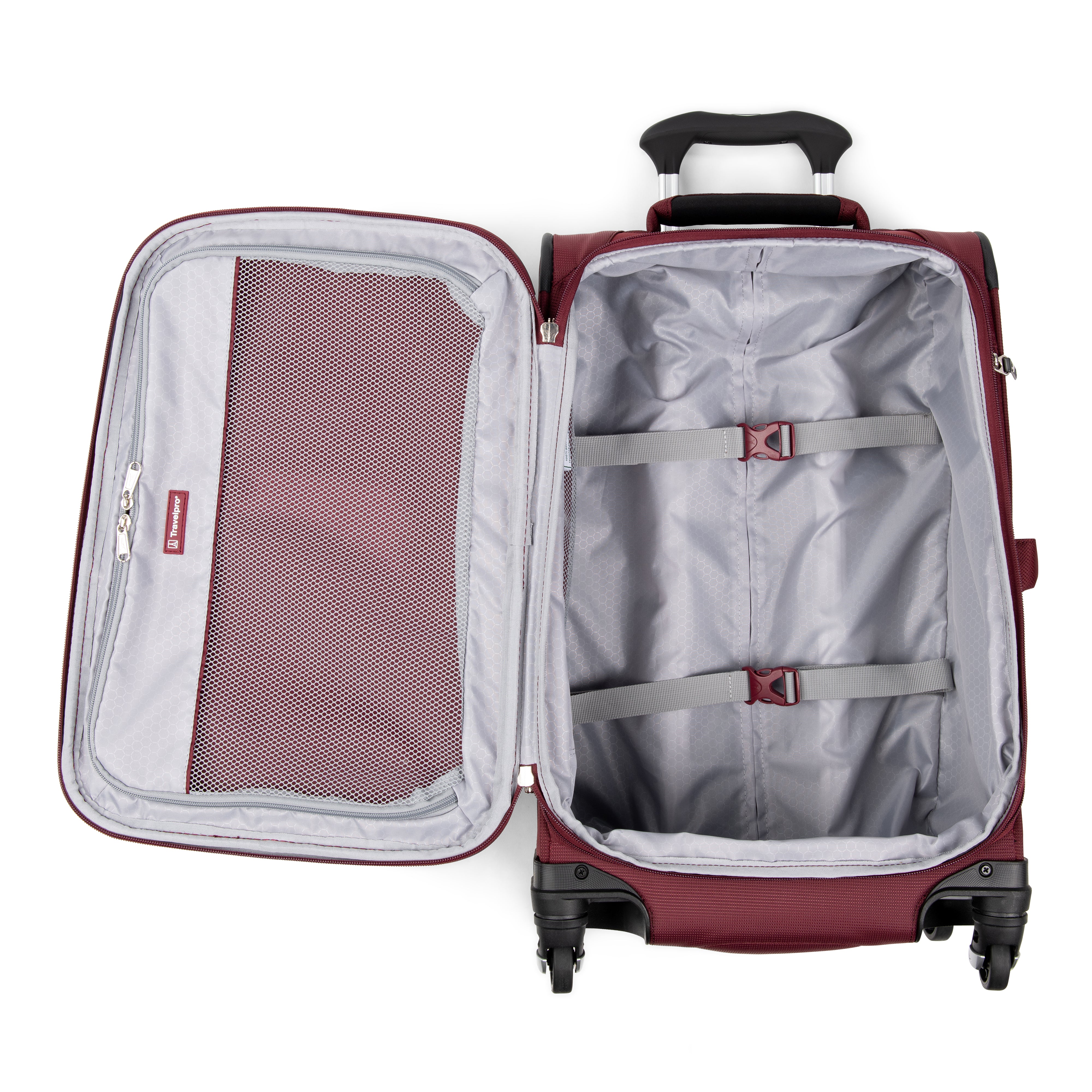 This carry-on soft-sided spinner is so light, it flies! One of our lightest wheeled carry-on suitcases, the Maxlite 5 21" Expandable Spinner is designed for ultimate comfort and mobility, featuring a 2-position adjustable PowerScope Lite handle with patented Contour Grip and 4-wheel 360 rotating spinners that glide effortlessly. Enjoy packing convenience with two quick-access, exterior front pockets, full-length interior lid pocket, side accessory pocket and adjustable hold-down straps, while the high-tensile-strength expandable zipper gives you maximum packing flexibility.