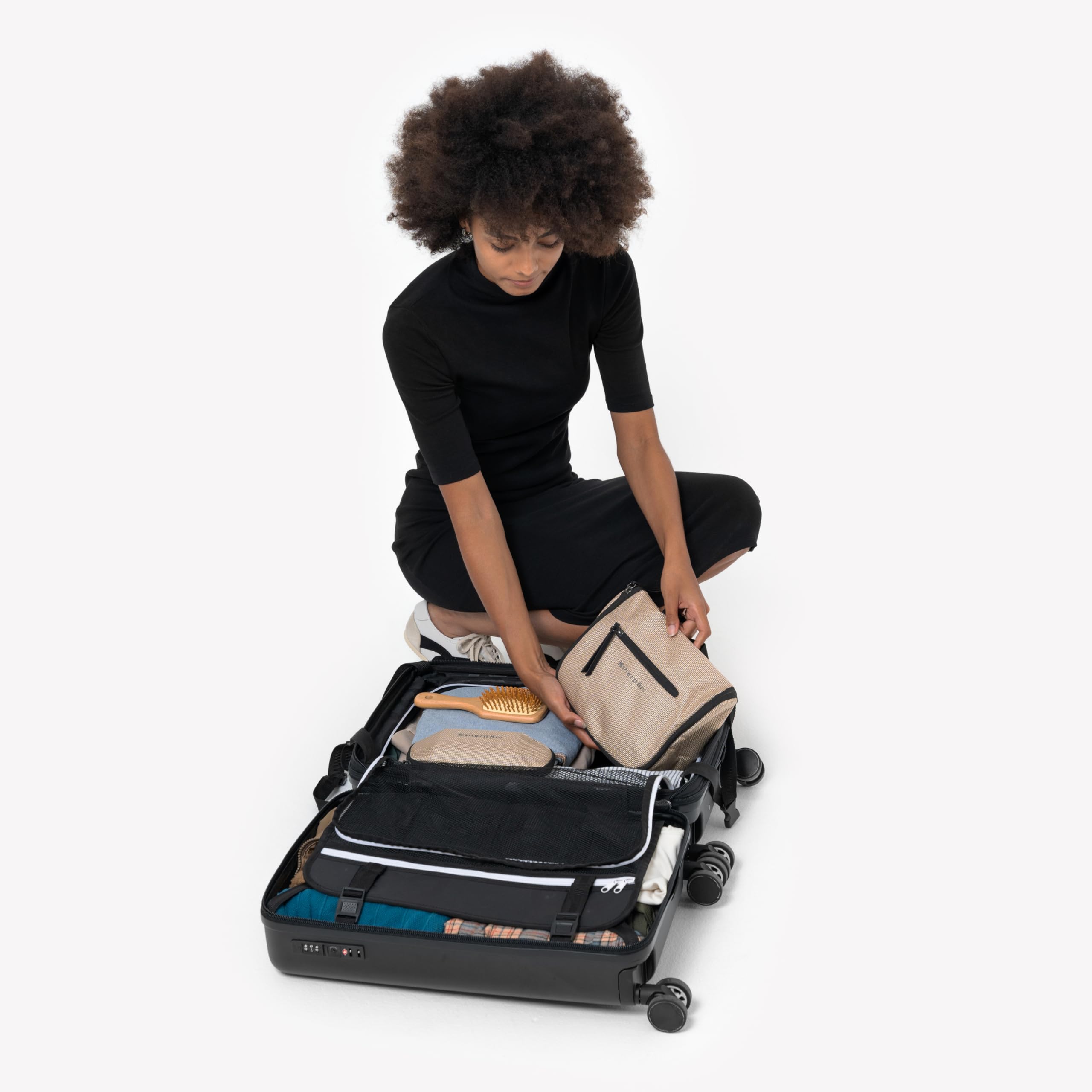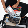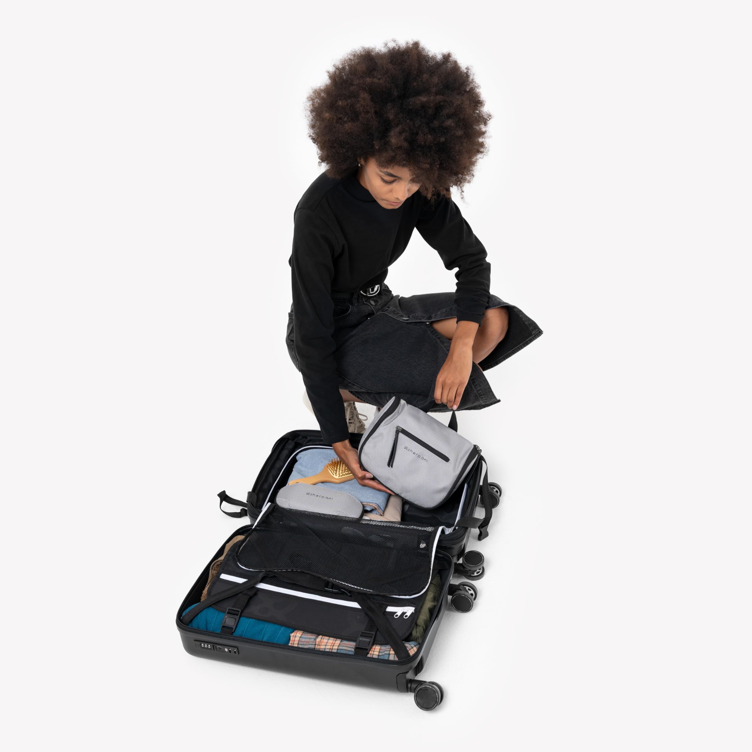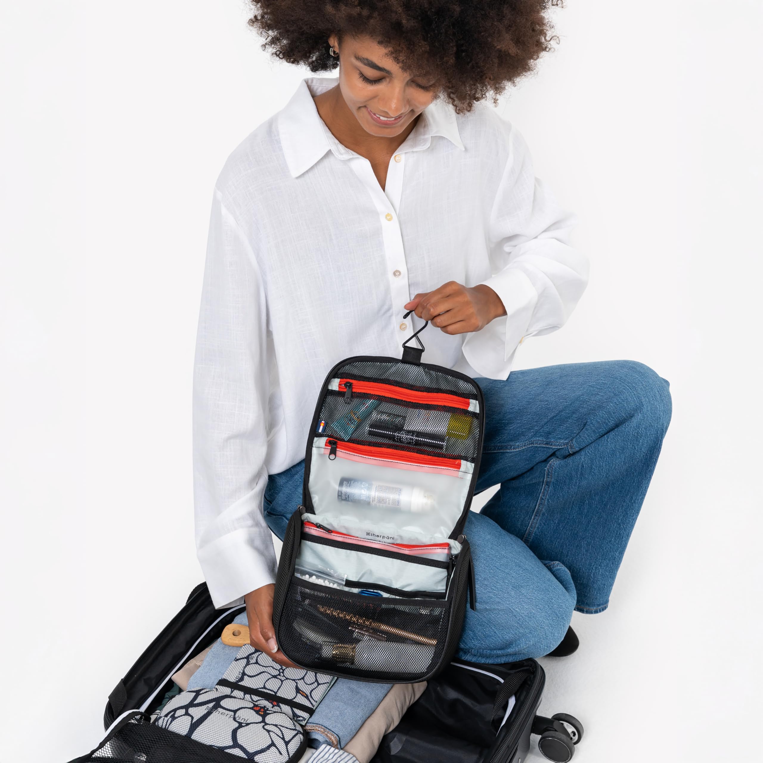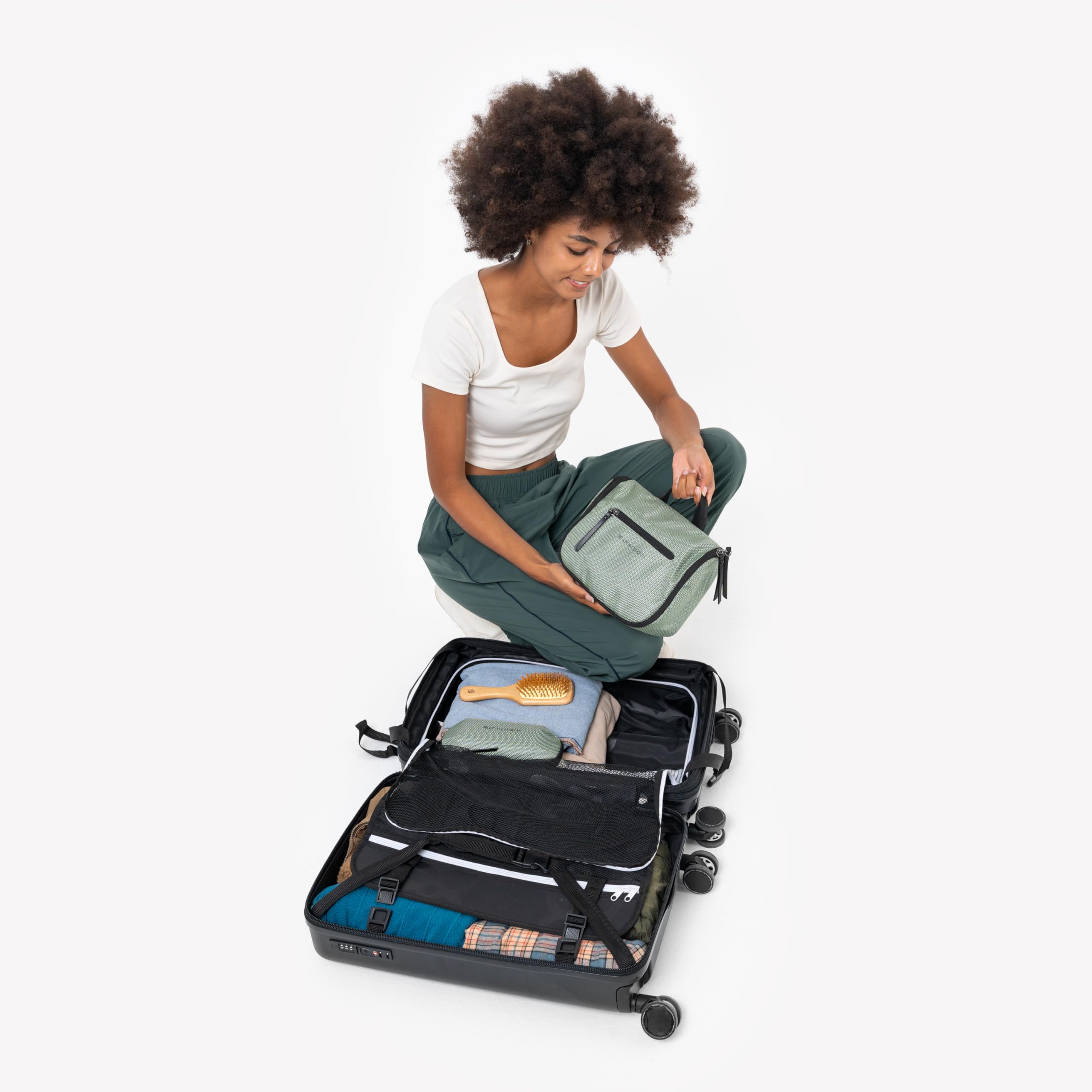 Say goodbye to unpacking at every hotel stop. The Co-Pilot is a 3L hanging toiletry case designed with organized travel in mind. Featuring mesh and clear zip pockets, four slip compartments, a removable wet pouch, and a hook to keep your essentials clean and close by, this pouch is punching way above its weight. Water-resistant materials will keep your stuff clean and dry no matter how wet the bathroom counter gets.