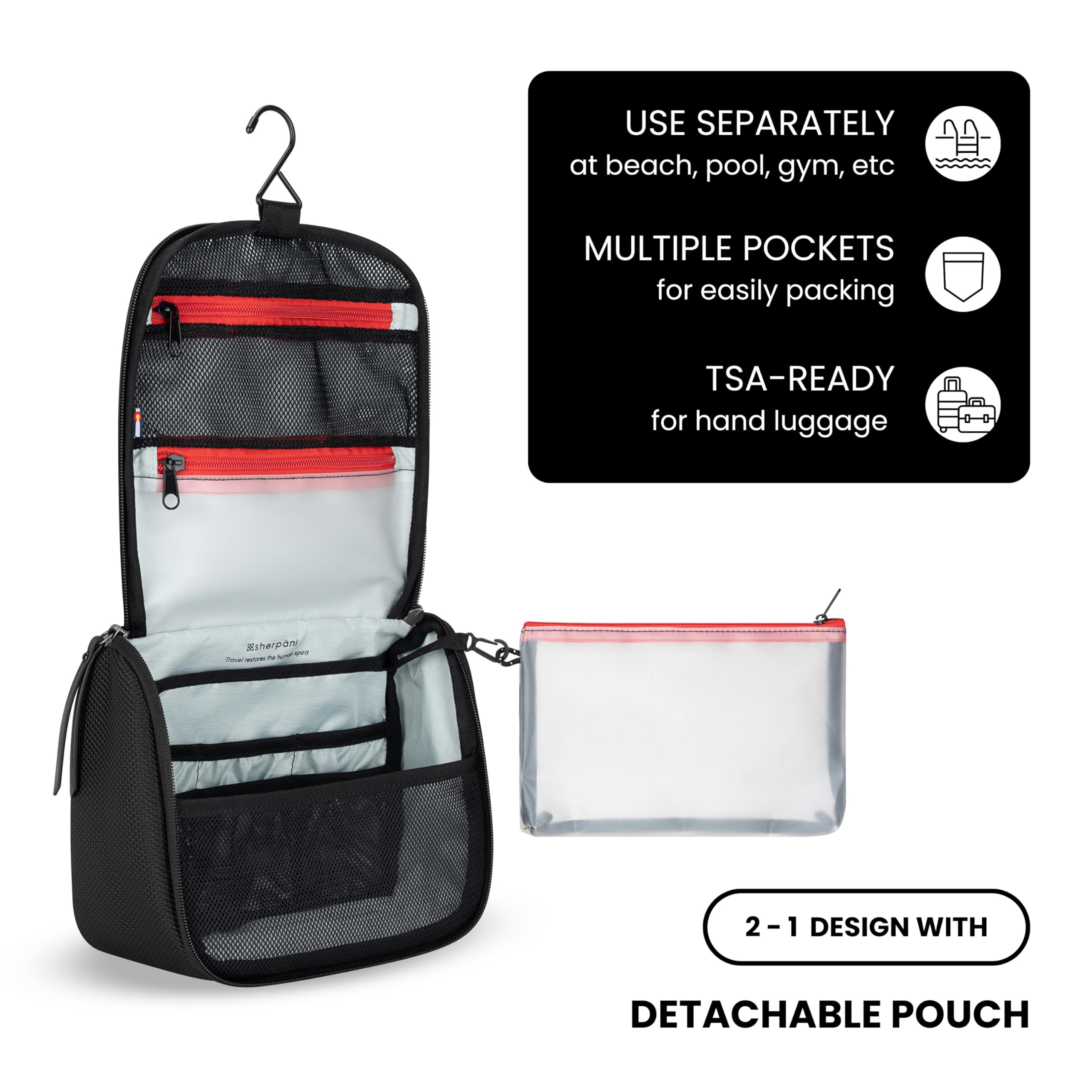 Sherpani Co-Pilot, Travel Toiletry Bag, Hanging Cosmetic Organizer, Water Resistant Makeup Bag, Shower Dopp Kit, Travel Essentials Toiletries for Women