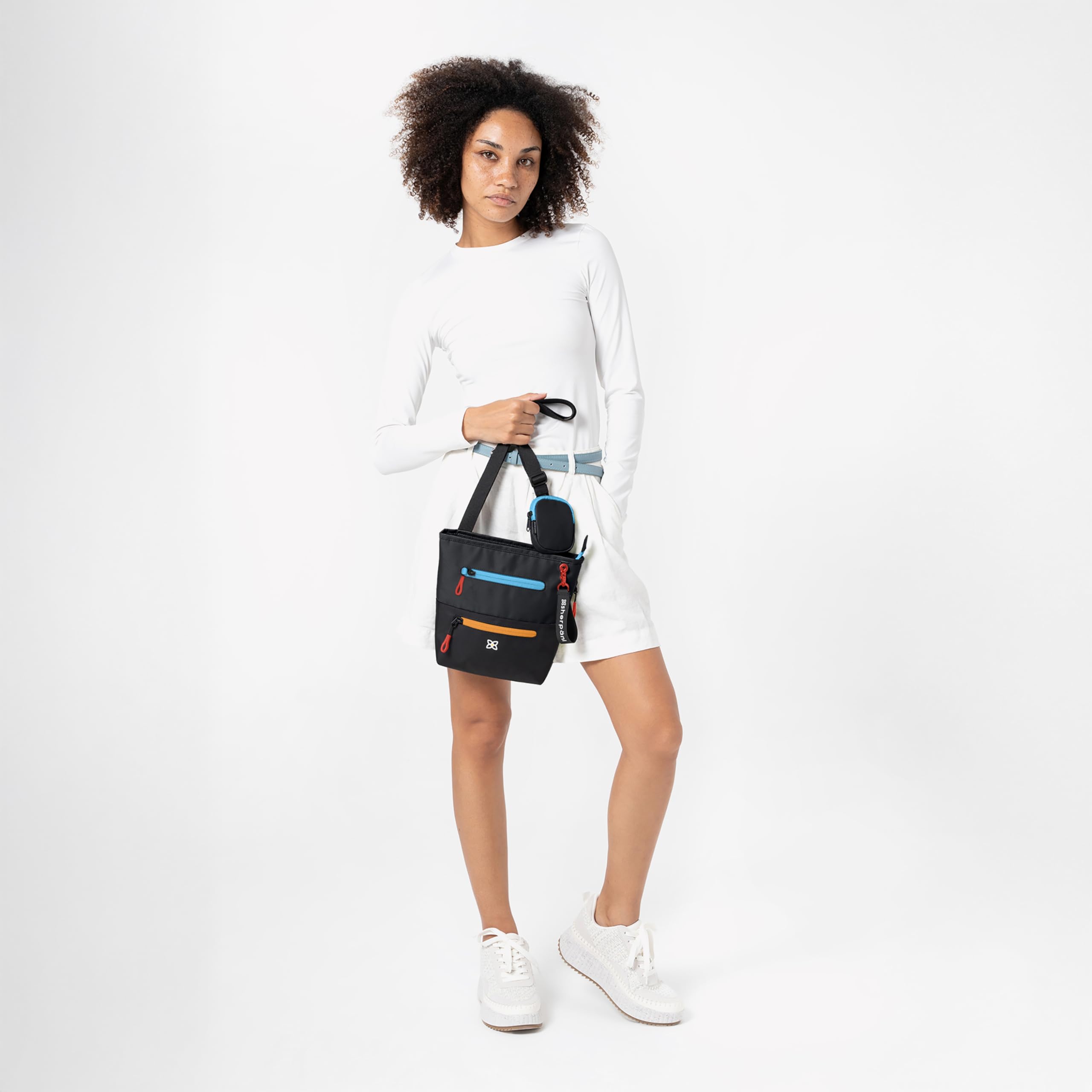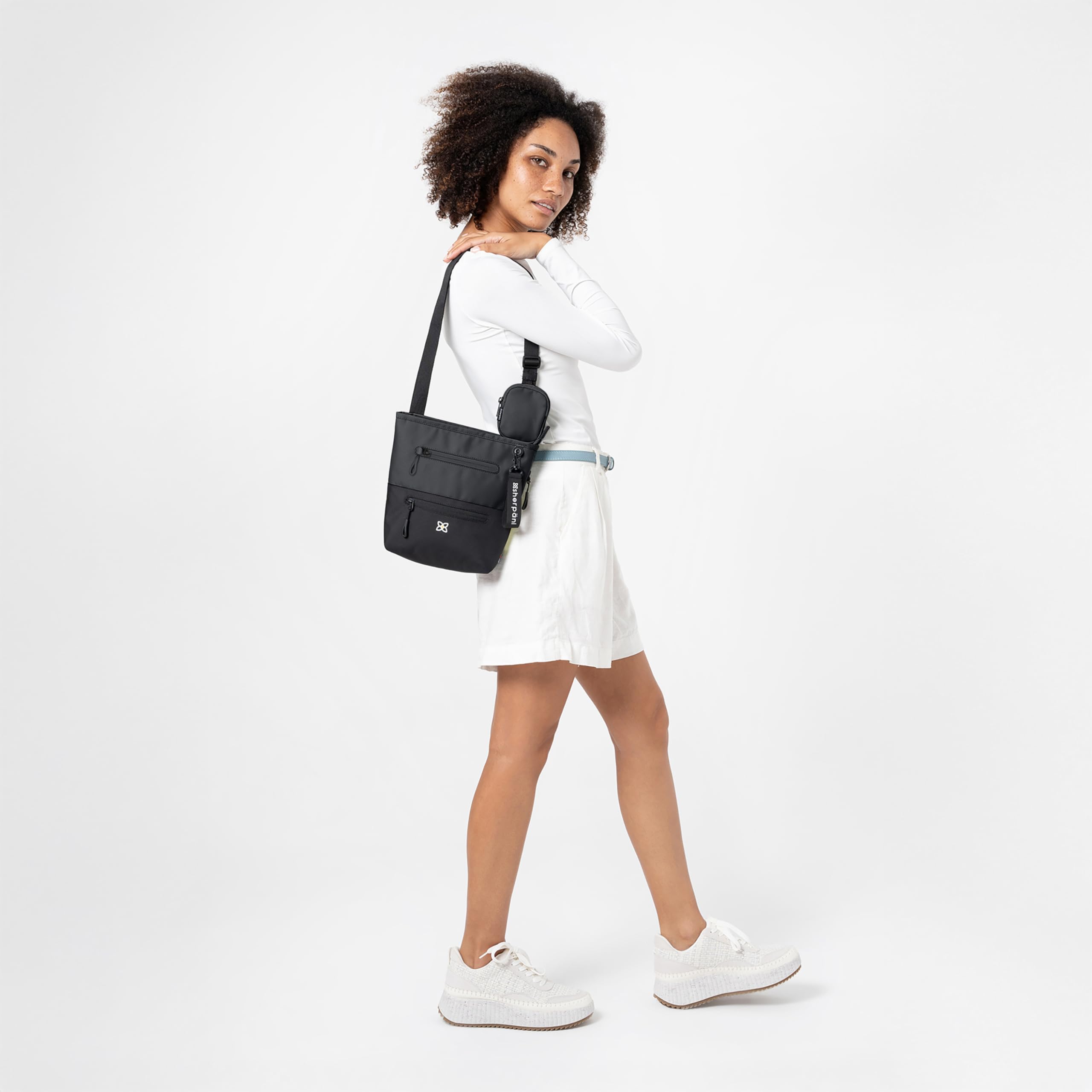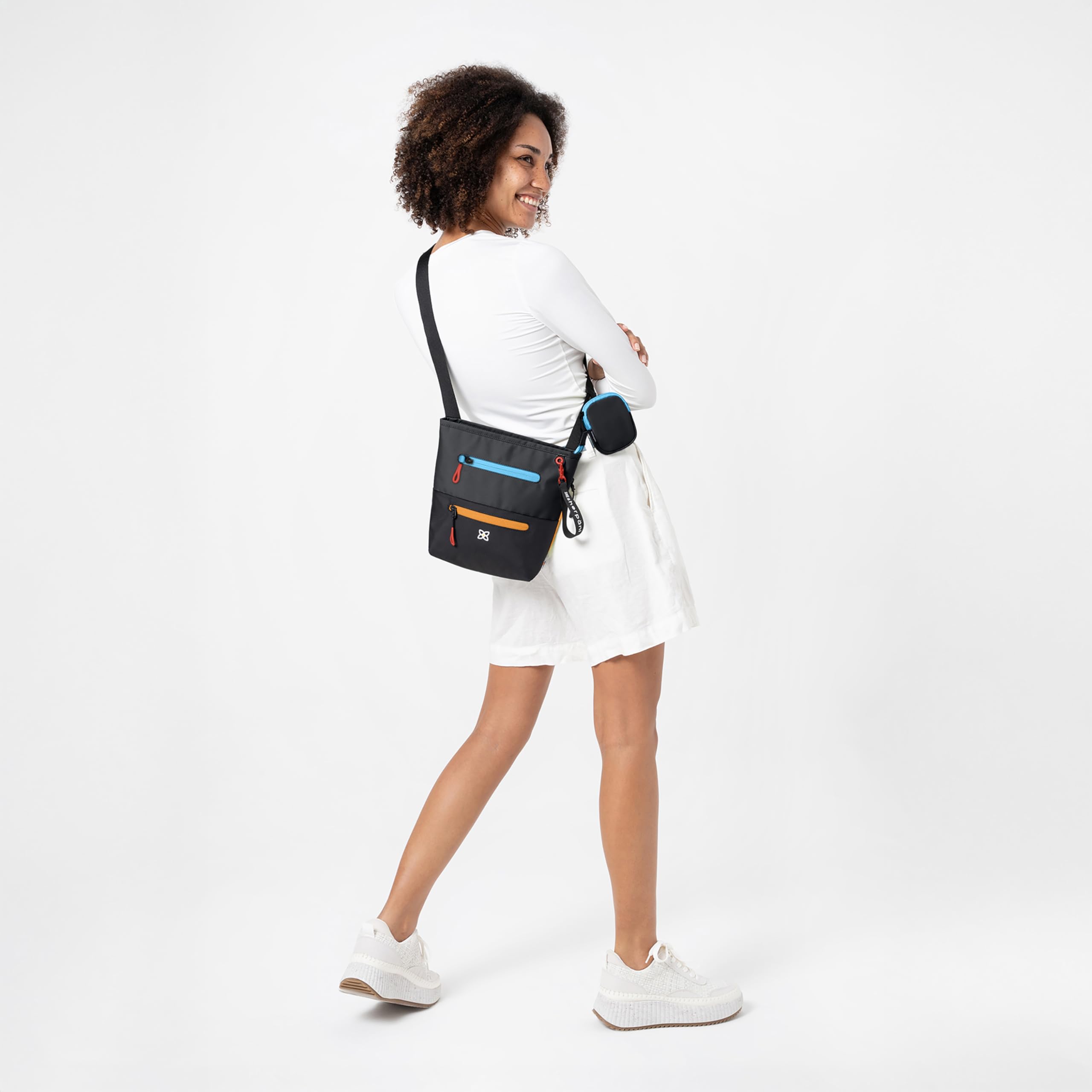 The Sadie crossbody is a fan-favorite for a reason. With 4L capacity, intuitive organization, RFID protection, and a detachable coin purse, it keeps your everyday essentials (and your extras) secure in a design thats both ultra-comfortable and unexpectedly roomy. Made from water-resistant, recycled material, this bag also includes a secret back pocket, adjustable strap, and bright color options for wherever you choose to wander.