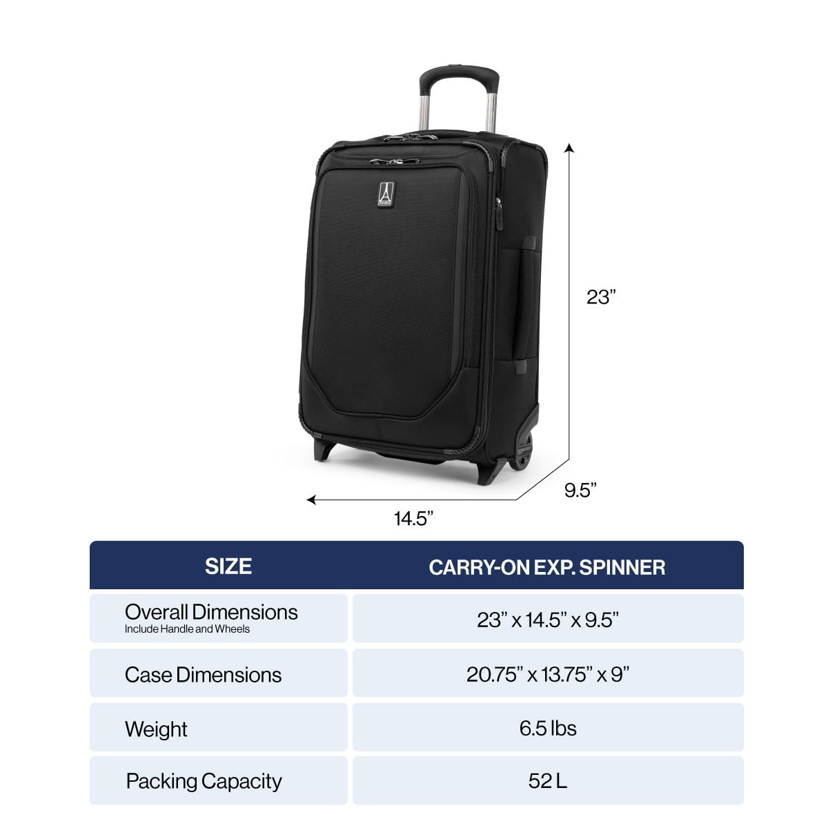 Travelpro is the brand of choice carried by crews from more than 90 worldwide airlines. Our extensive insider knowledge of the functionality and resilience needed by todays aviation professionals provided inspiration when designing the new Crew Classic assortment specifically for the passenger who appreciates organized packing. Travel like a pro wherever you go with a Rollaboard built for ultimate dependability, mile after mile. The Crew Classic Carry-on Expandable Rollaboard is lightweight yet exceptionally durable with upgraded organization for ultimate convenience. Perfect for business or leisure travel, this full-size carry-on is great for short and medium-length trips with a tip-resistant zippered expansion option to increase packing space when needed. Pack more while staying organized with the removable compression packing organizer, which can also be used as a divider to separate contents in the main compartment. Interior hold-down straps, water-resistant storage, and multiple accessory pockets keep everything where it belongs and easy to find. Two high-performance ball bearing wheels ensure the smoothest roll and long-lasting durability, while a PowerScope Lite handle minimizes wobble and adjusts heights to the comfort of the user. Backed by a Built For a Lifetime Limited Warranty with our 3 Year Trusted Companion Promise, which covers damage caused by an airline or other common carrier.