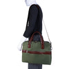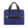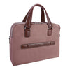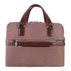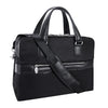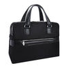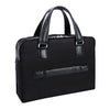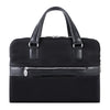 - Compact soft-sided nylon brief with leather handle and accents.