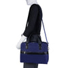 - Silver accent hardware and metal zippers with metal feet on the base.