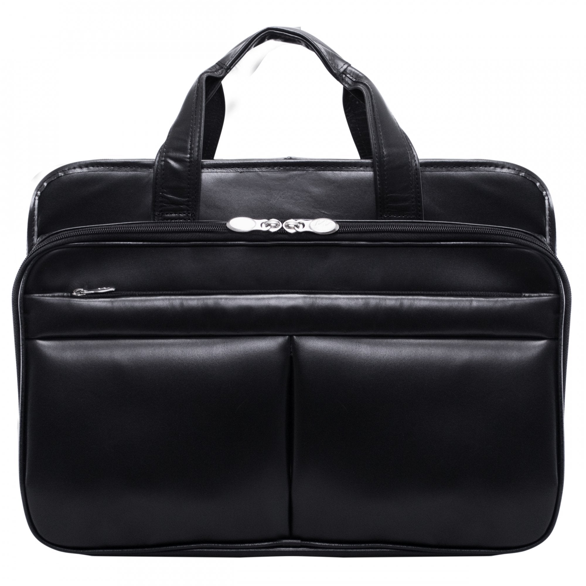 Walton 17" Leather Expandable Double Compartment Laptop Briefcase w/ Removable Sleeve