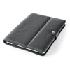 Protection and mobility. Look up your favorite Osgoode Marley items with ease by storing your iPad in this comprehensive case. iPad gets slid into the plush lined main section and secured safely with the help of a fitted leather top and elasticized corners on bottom. From there, you have the option to leave it vertical, and hold up your CNN headlines as you would read a book, or positioned horizontally with 3 adjustable angles for hands free placement. Front and rear are left simple and elegant, with just slight sewing detail. Tab and snap closure. It’s the best looking one we have seen. Oh and it comes in our Cashmere leather.