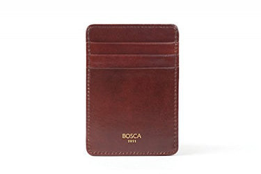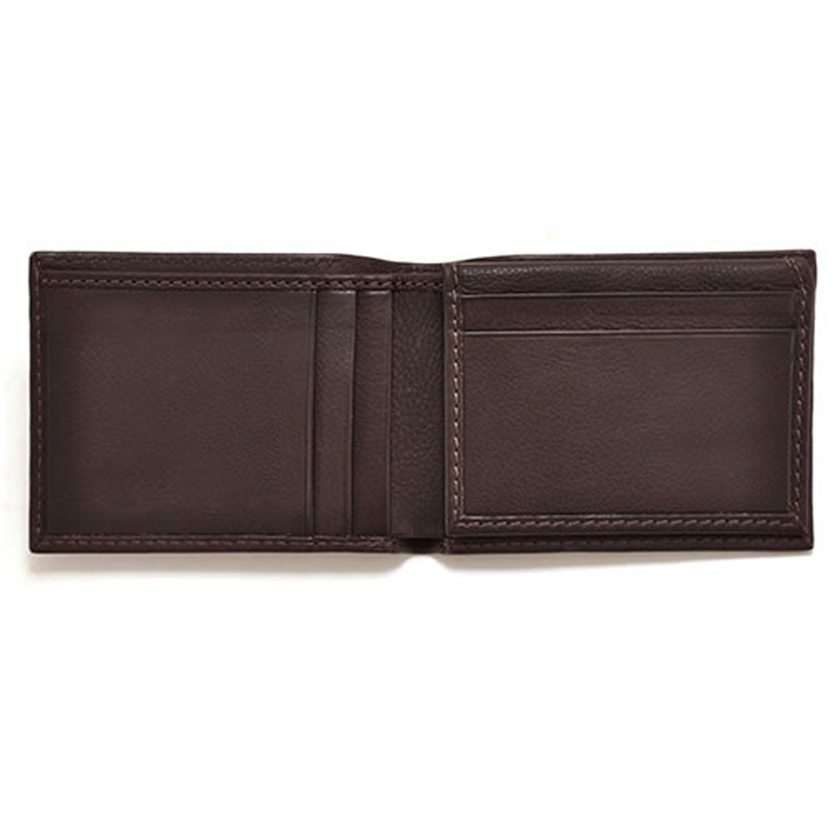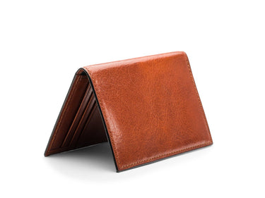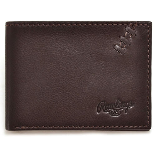 Classic leather multi compartment passcase with baseball lace detailing. 0.50"D X 4.25"W X 3.25"H when folded. Interior 8 credit card slots, id holder and two slide pockets. Single bill compartment.