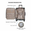 The Montecito 3.0 Softside Carry-On is designed for travelers who value durability, organization, and style. Its high-performance fabric is treated to resist water and abrasion, ensuring it stays looking sharp trip after trip. Smooth 360 recessed dual wheels and a patented telescoping handle make maneuvering effortless, while padded carry handles and a bottom grip simplify lifting. Four exterior pockets keep essentials within reach, and inside, a spacious dual-compartment layout with compression straps, mesh pockets, a Tech Tracker pocket, and a removable toiletry bag keeps everything in place. With expandable capacity, lockable zippers, and a TSA-recognized lock, Montecito 3.0 delivers the perfect balance of reliability and refined functionality.