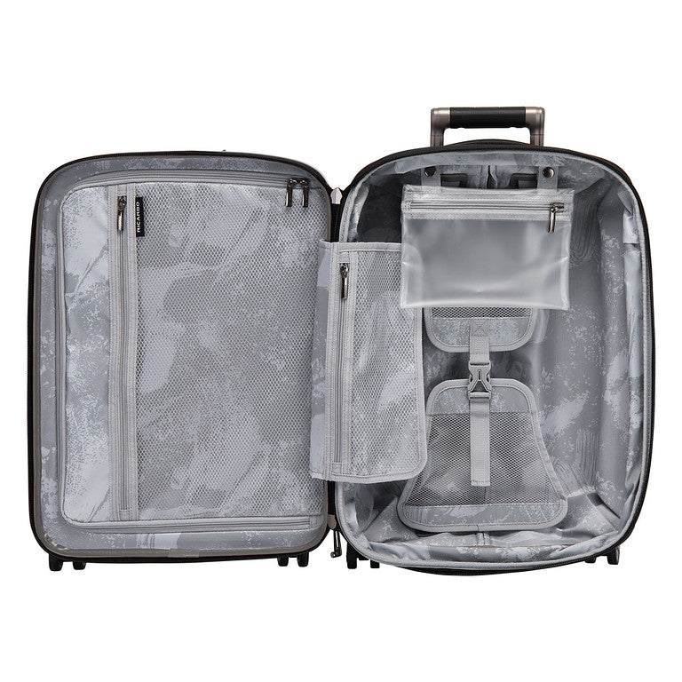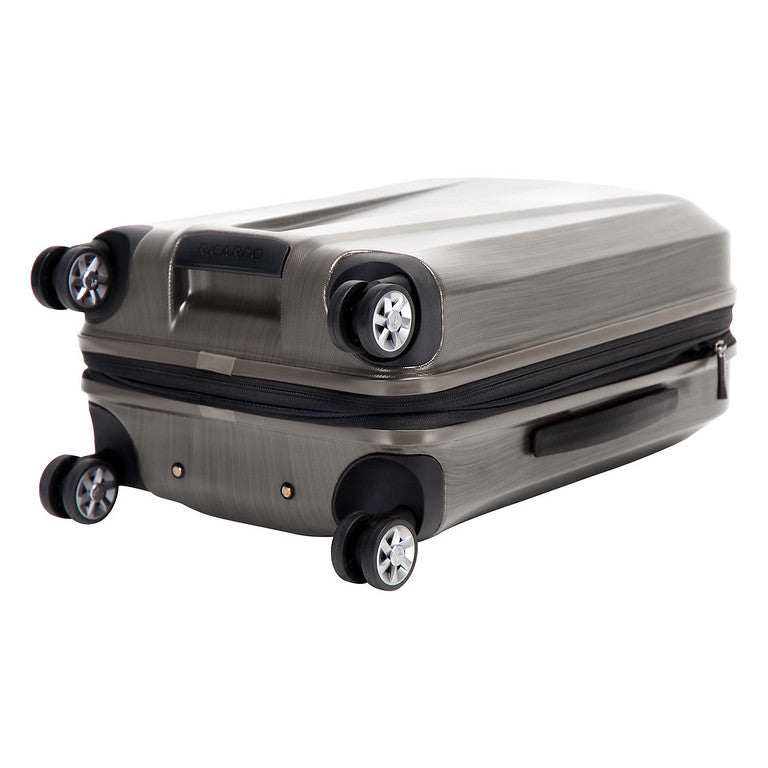 Ideal for a weekend getaway, this lightweight spinner case from the Rio Dell collection delivers exceptional durability and sleek modern style. The hard-wearing, 100% polycarbonate shell protects your belongings, while comfortable gel carry grips make it easy to lift in and out of overhead bins, and a multi-stage telescoping handle and dual spinner wheels let you navigate busy airport concourses with ease. The roomy interior and zip-around expansion means you can pack a lot in a compact space and mesh dividers keep it all beautifully organized. Security is a snap with the removable, see-through toiletry pouch.