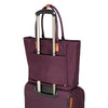 • Exterior zip pocket. Zippered, pass-through pocket slides onto your luggage handle.