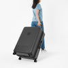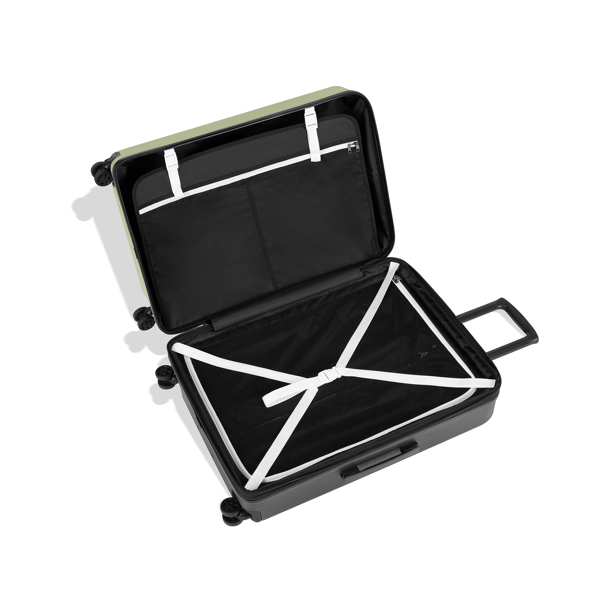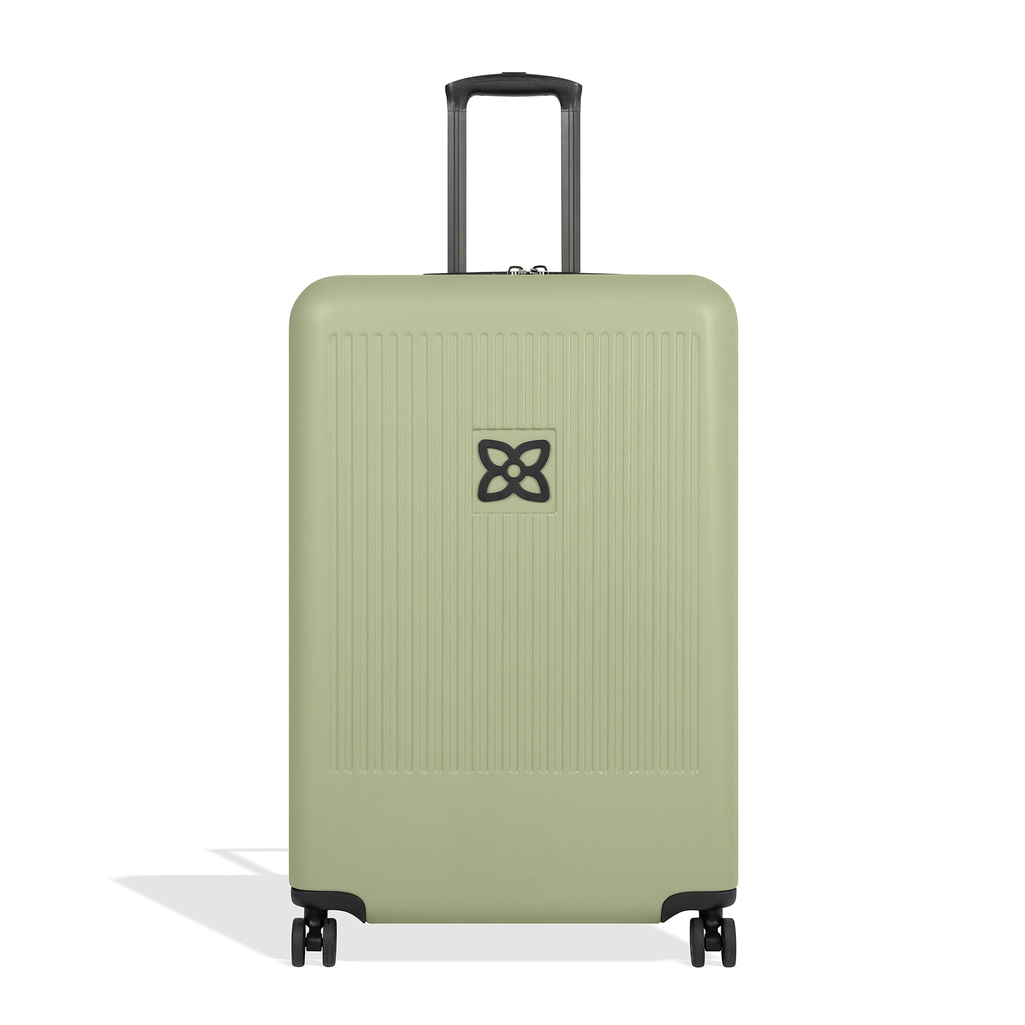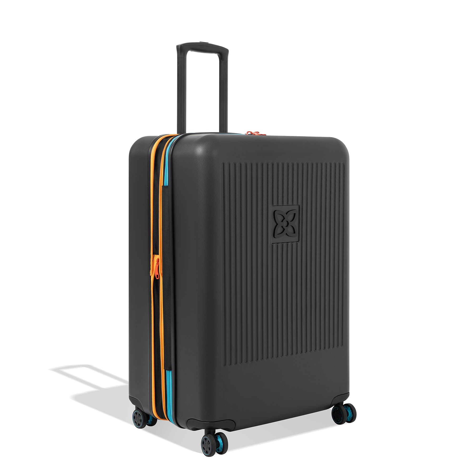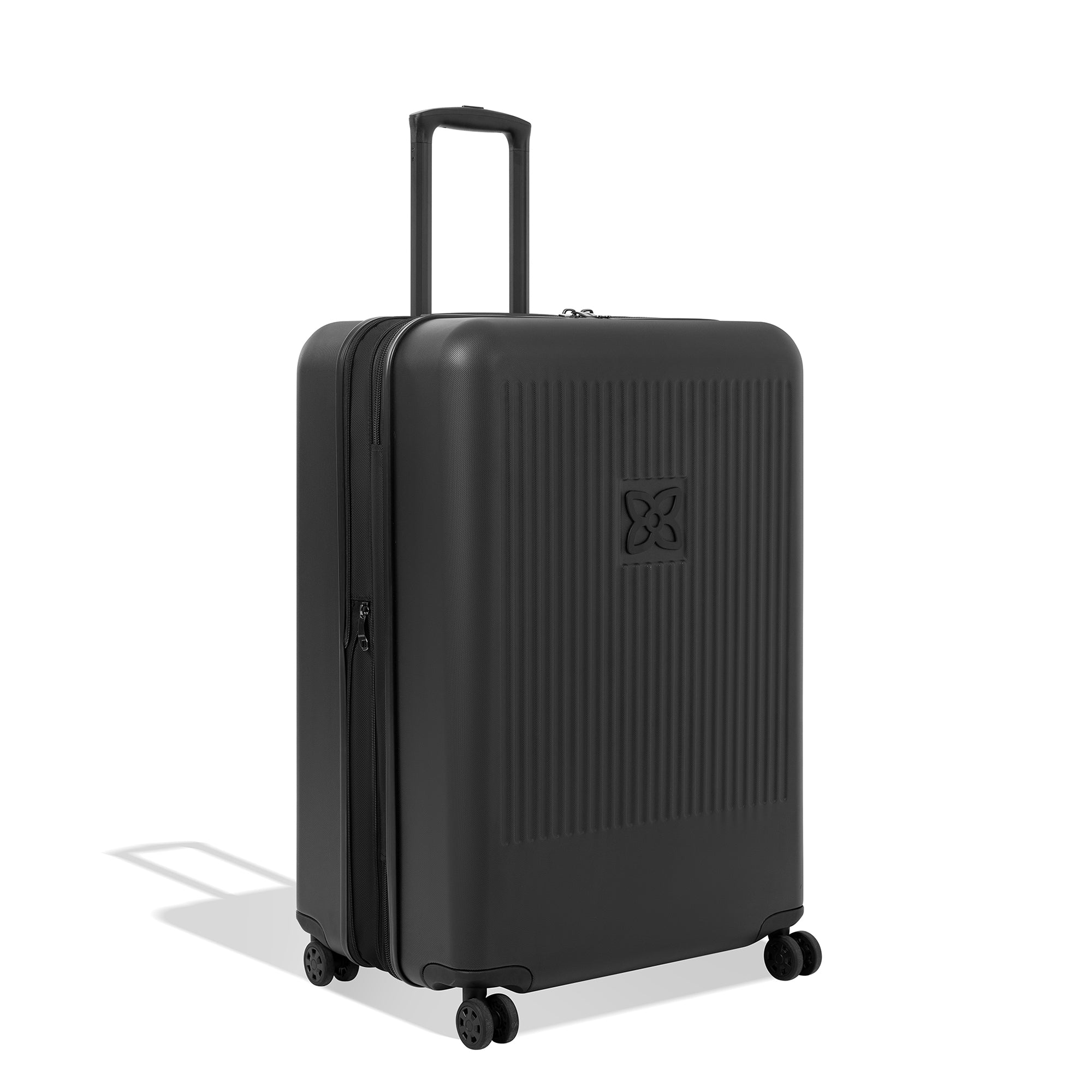 Don't want to leave anything behind? The spacious Meridian will hold it all with its 97-liter capacity! Now available in this larger size for your checked luggage needs, our signature hard shell suitcase is every traveler's dream. Features include an uncrushable exterior, chip-proof color, retractable luggage handle, two-inch expansion zipper, TSA-approved locking zippers, and four 360-degree spinner wheels for smooth rolling.