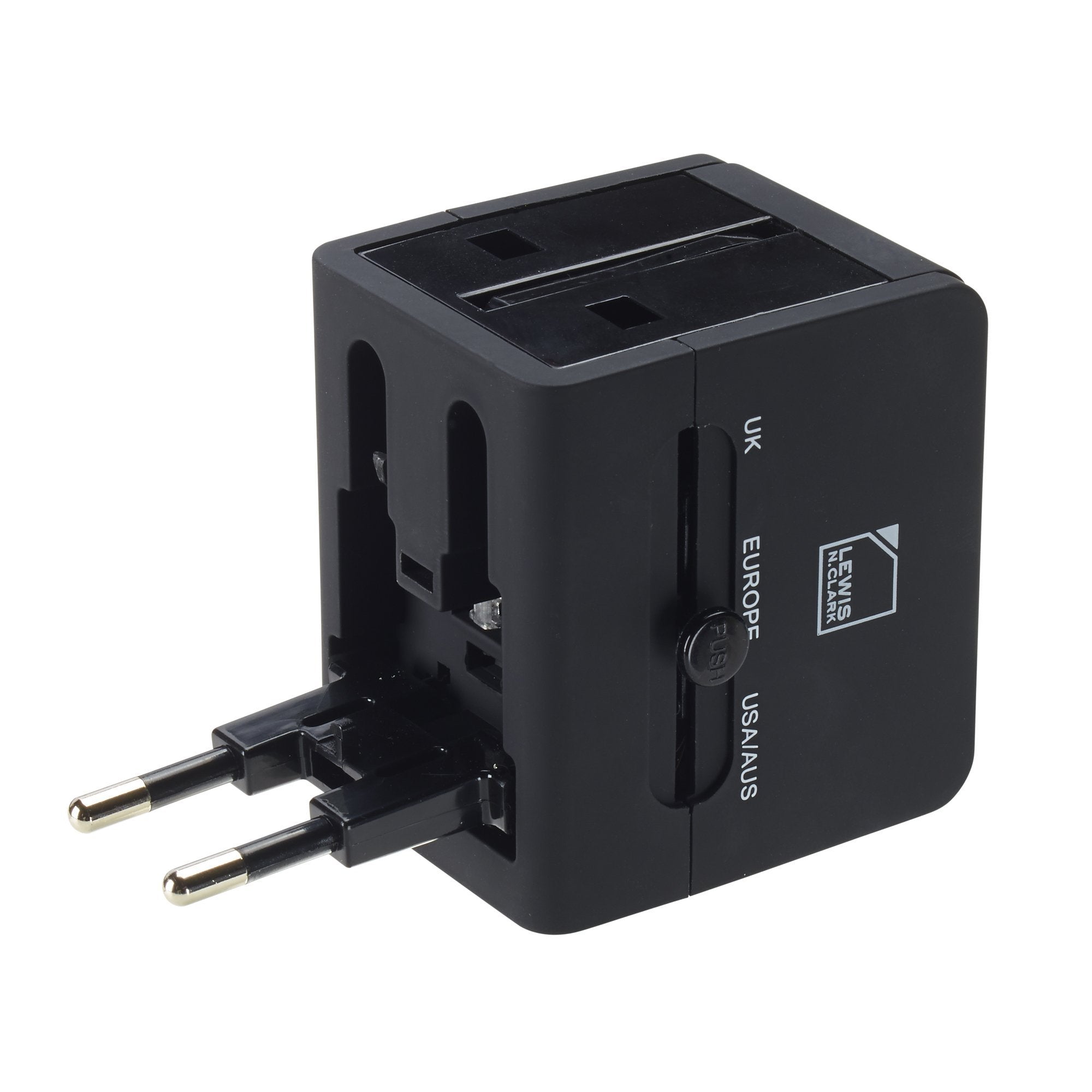 Compact all-in-1 unit includes the four most common global plug configurationsand a type a usb charger to eliminate the need for carrying multiple adapters.Built-in surge protection with surge and voltage indicator lights.