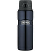 Color:Midnight Blue The Thermos brand is well known as the quality andperformance leader in insulated food and beverage products. The Stainless Kingseries creates a new chapter in Thermos' storied history with a modern linethat blends out newest technology with a dash of the past. Why Thermos? Anideal choice for people on the go, the Stainless King Vacuum Insulated Leak-Proof Drink Bottle is built to last and loaded with features to make for amore enjoyable drinking experience. Thermos vacuum insulation technologyvirtually eliminates temperature change within the beverage container bycreating an airless space between two stainless steel walls. The result is aninsulation layer that performs better than any other. A superior insulatedcontainer you can depend on to keep your beverages hotter, colder, fresher,longer.This drink bottle is perfect for all day beverage enjoyment as it keepsbeverages hot for 12 hours or cold for 24, making it a great choice forwherever life's adventures may take you. Features and Benefits Constructedwith double wall stainless steel, this 24 ounce drink bottle is virtuallyunbreakable, yet its sleek design is both eye-catching and functional. Thespecially designed lid features a smooth flow design that helps control theflow of warm liquids. Leak-Proof and Worry-Free The Stainless King Leak-ProofDrink Bottle comes equipped with a locking lid which operates simply with thepush of a button. And because of the double wall insulation, the stainlesssteel body stays cool to the touch with hot beverages and condensation-freewith cold beverages. Recommended Tip for Maximum Beverage Enjoyment In orderto maximize the incredible insulation technology, it is recommended to eitherpre-chill or pre-heat the drink bottle just prior to use. This can beaccomplished by filling the drink bottle with cold or hot tap water, attachingthe lid and letting it rest for a few minutes. Before you are ready to use,simply empty the water and fill with your favorite beverage. Attaching the lidwill further increase the thermal efficiency. The Stainless King VacuumInsulated Leak-Proof Drink Bottle is made of BPA-free materials. HighlightsInsulated: Keeps hot for 12 hours or cold for 24 hours with Thermos vacuuminsulation technology Durable: Unbreakable stainless steel interior andexterior High Quality Materials: 100% BPA-free Capacity: 24 ounce