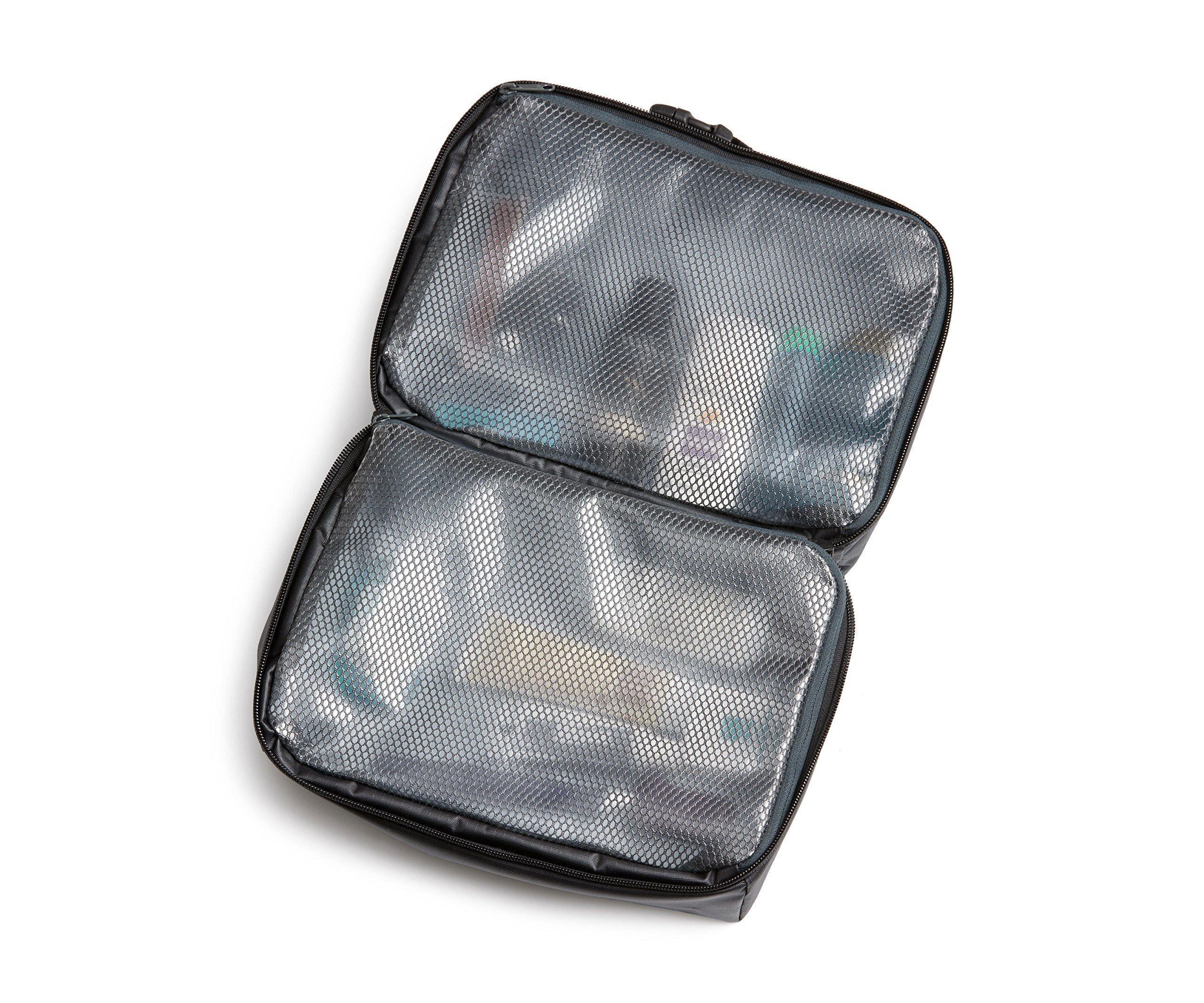 Organize toiletries and other overnight essentials safely and stylishly insidethis travel kit from Timbuk2. The Timbuk2 Nomad Travel Kit is made fromlaminated nylon fabric and features a small rectangular shape with a clamshellopening and full zipper access for easy use. Detailed with an adjustablehanging loop, this toiletry kit features two separate zipper compartments thatoffer ample storage for shampoo, conditioner, moisturizer, razors, toothpaste,deodorant, and other personal hygiene products. The small shape makes it easyto pack inside any carry-on case, overnight bag, duffel bag, or gym bag,making it perfect for every type of trip.