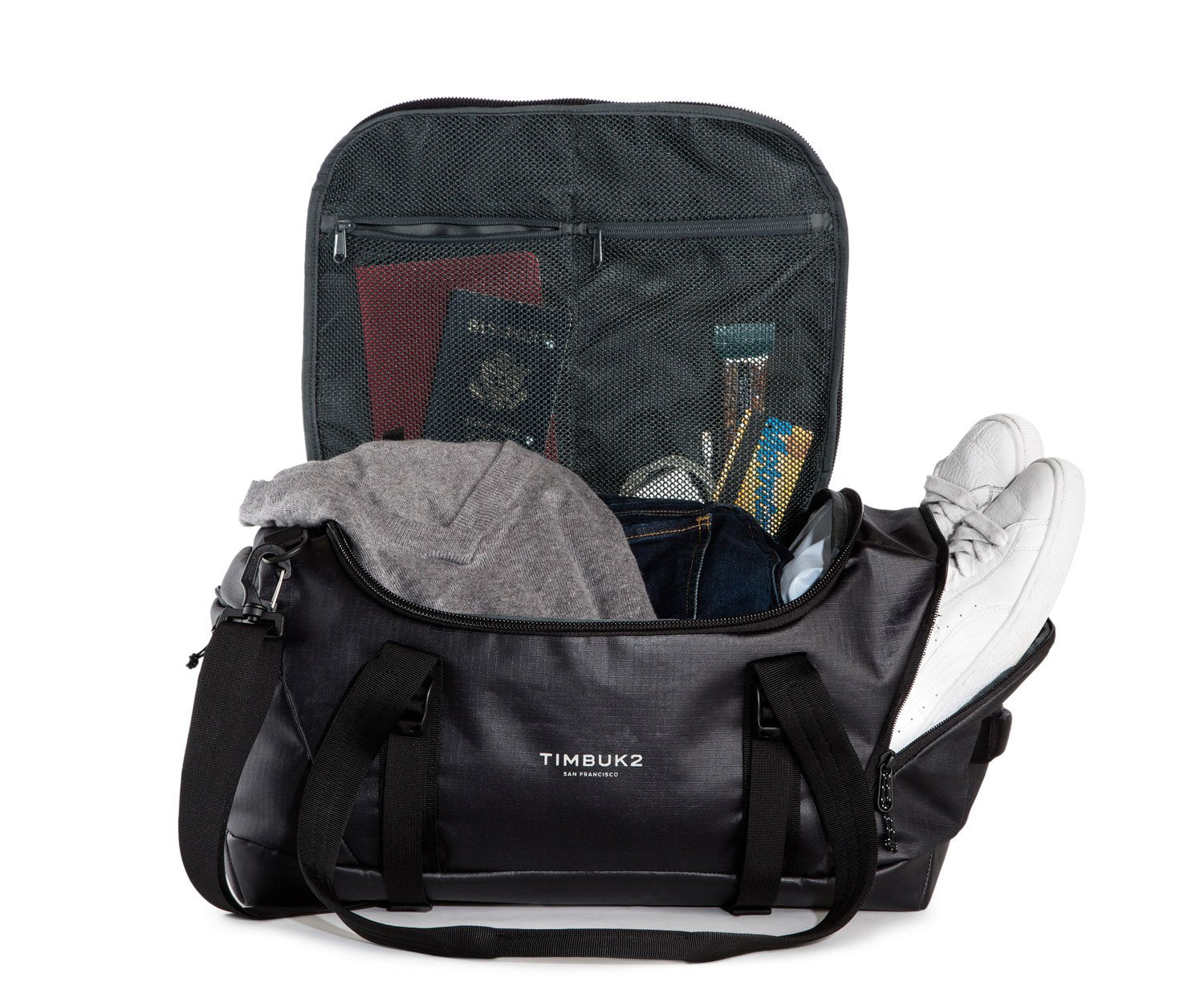 The Quest can be your go-to duffel. Its better looking than your old beater, but just as hard working. So if you love a good duffel and shower regularly, the Quest is for you. Lightweight Ripstop Nylon means you only carry what you pack and compression straps let you stuff it or keep it slim accordingly. And its big-mouth opening and large floating shoe pocket facilities sanitary packing. Grab it in your hands or sling it over your shoulder and enjoy your Quest.