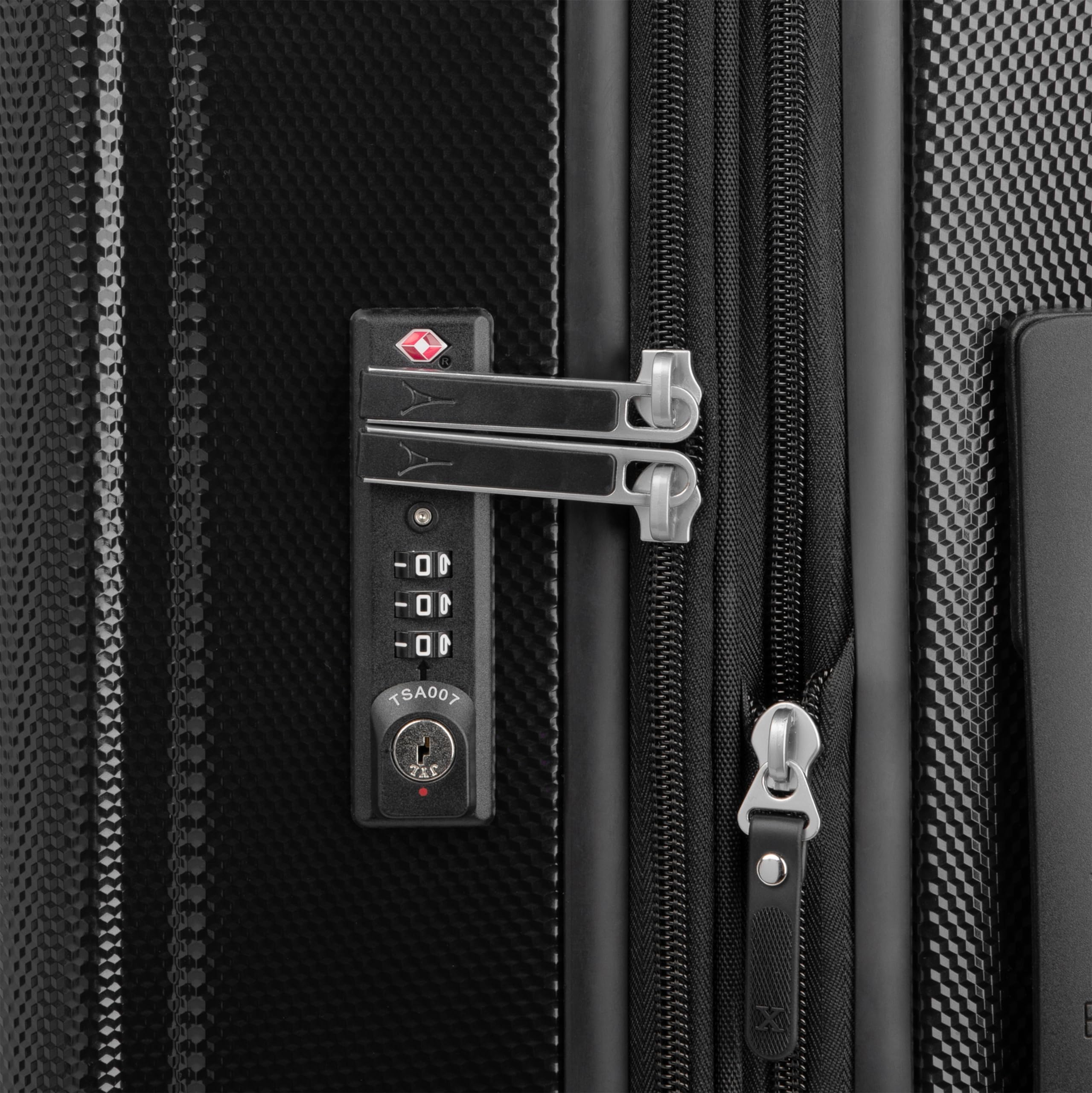 the 100% polycarbonate hard shell features an attractive finish that helps