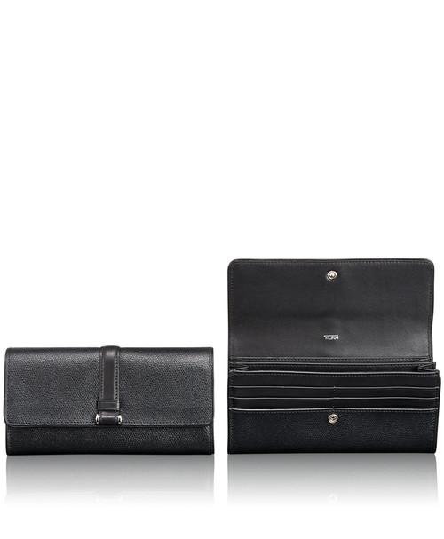 Sophisticated. Simple. Elegantly detailed. Sinclair is a modern collection of thoughtfully designed professional totes, briefs, carry-alls and accessories for women. Each piece is exquisitely executed in textured coated canvas and highlighted with leather trim. This continental wallet features three gusseted compartments and 12 card pockets plus a back zip pocket. Comes in an elegant gift box.