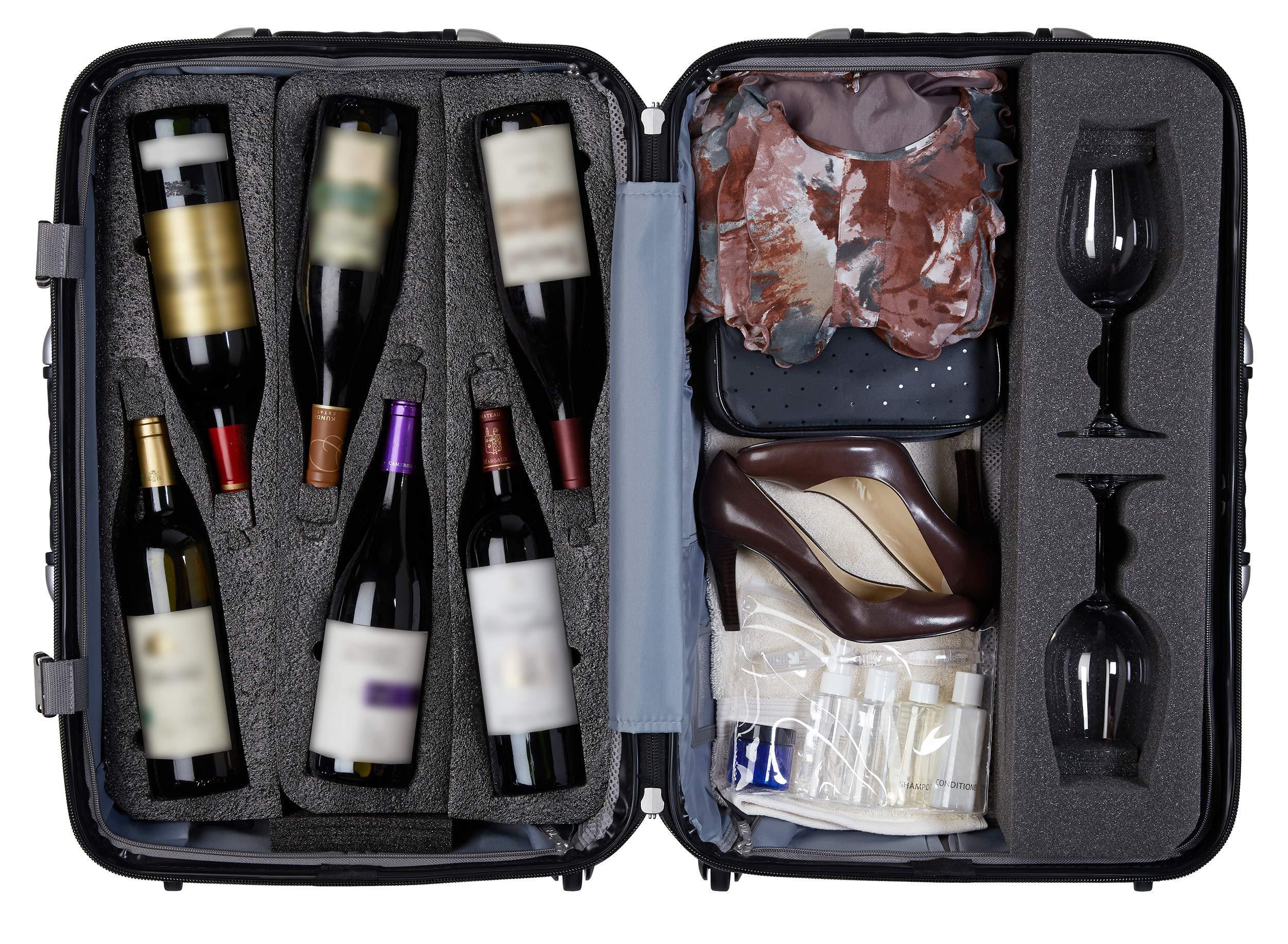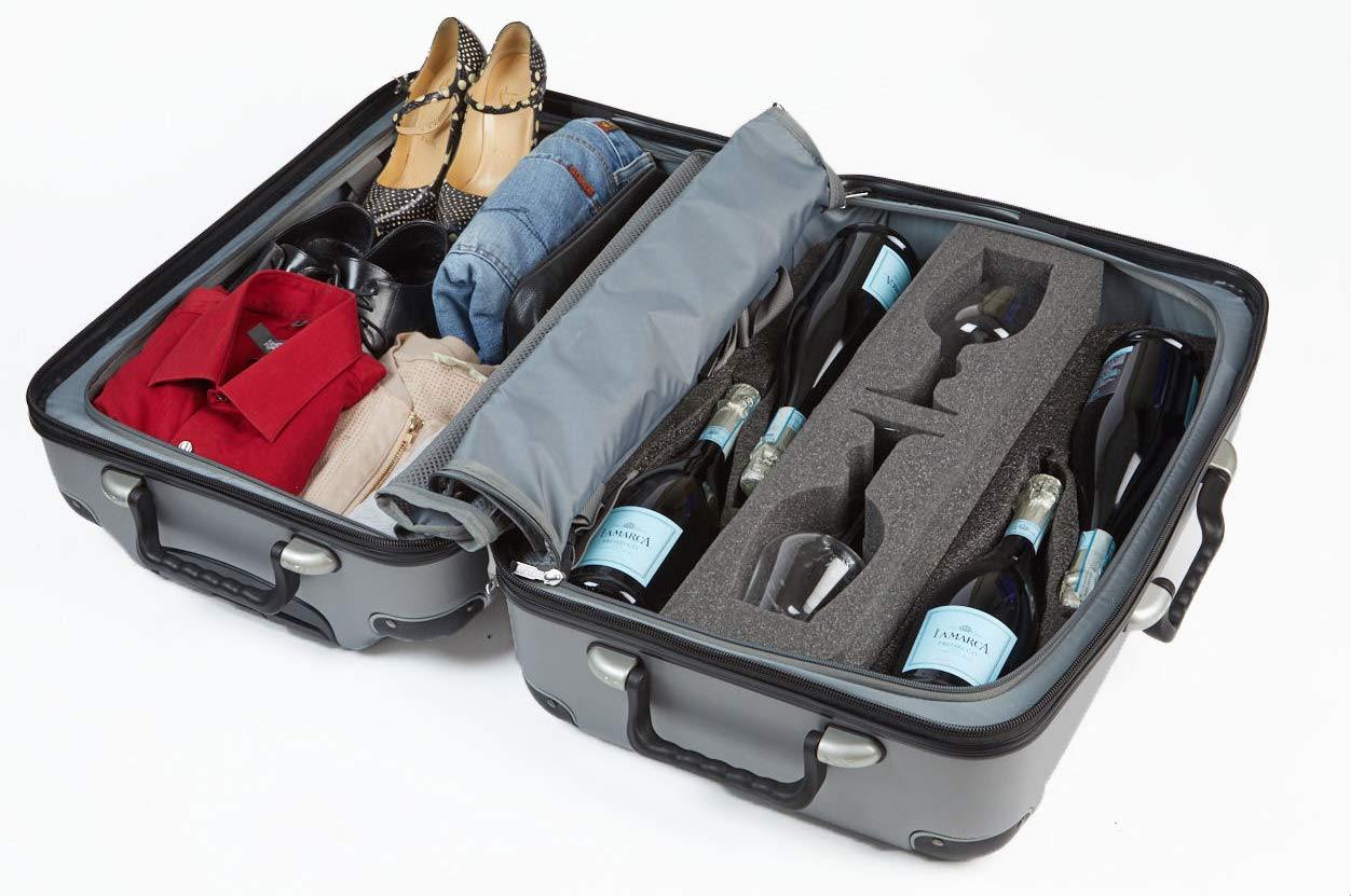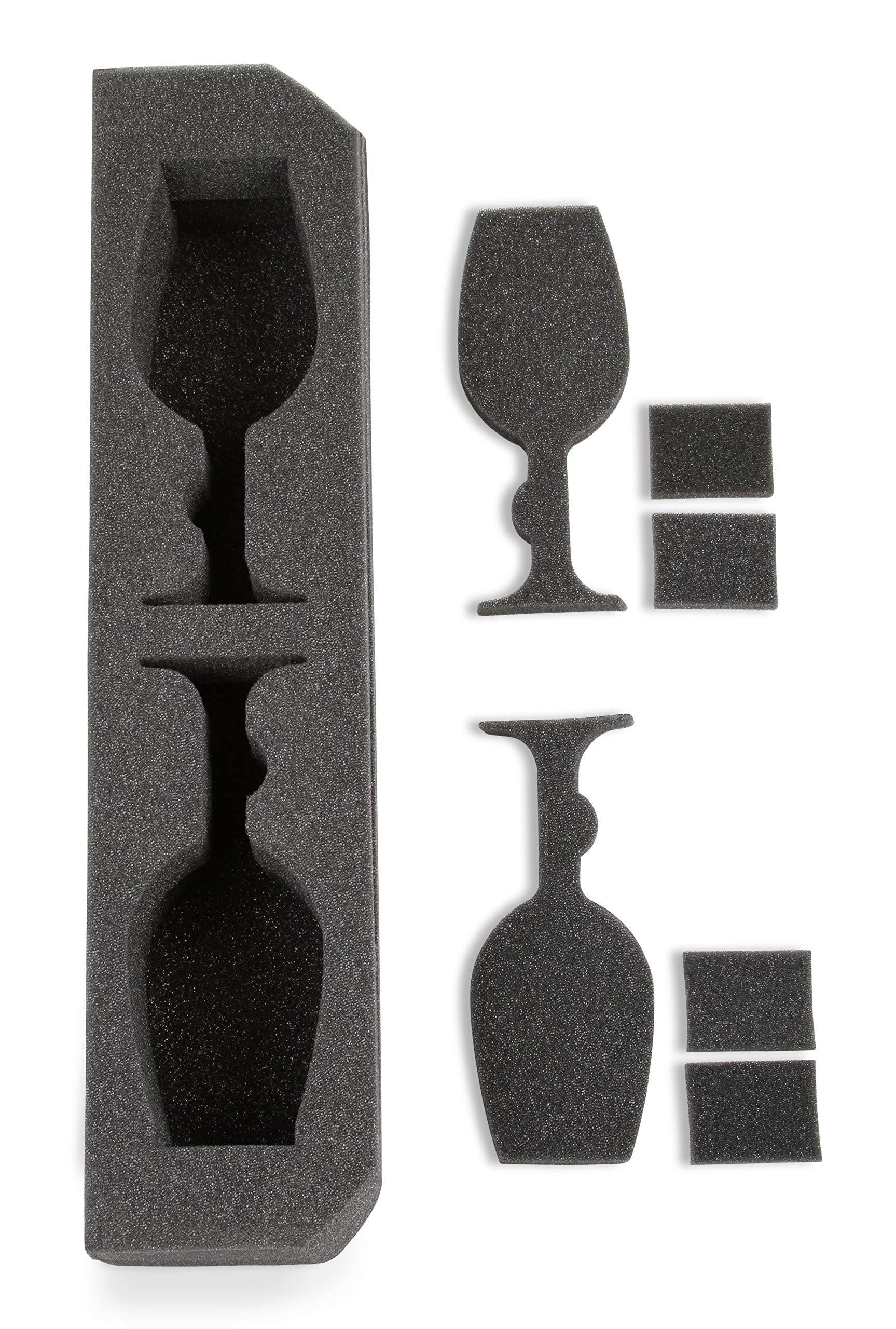 Color:12-bottle suitcase - Wine glass insert Whats wine without a glass?Cheers to the wine glass insert, giving wine connoisseurs the option to travelwith two large Bordeaux-shaped glasses in the VinGardeValise.This insertreplaces one 2-bottle insert in only the Grande 12-Bottle VinGardeValise. Touse: It is recommended that you place wine glasses into the insert prior toplacing the insert in the suitcase. Gently press the bowl of the glass intothe cavity first, followed by the stem. Foam wine glass covers are included.