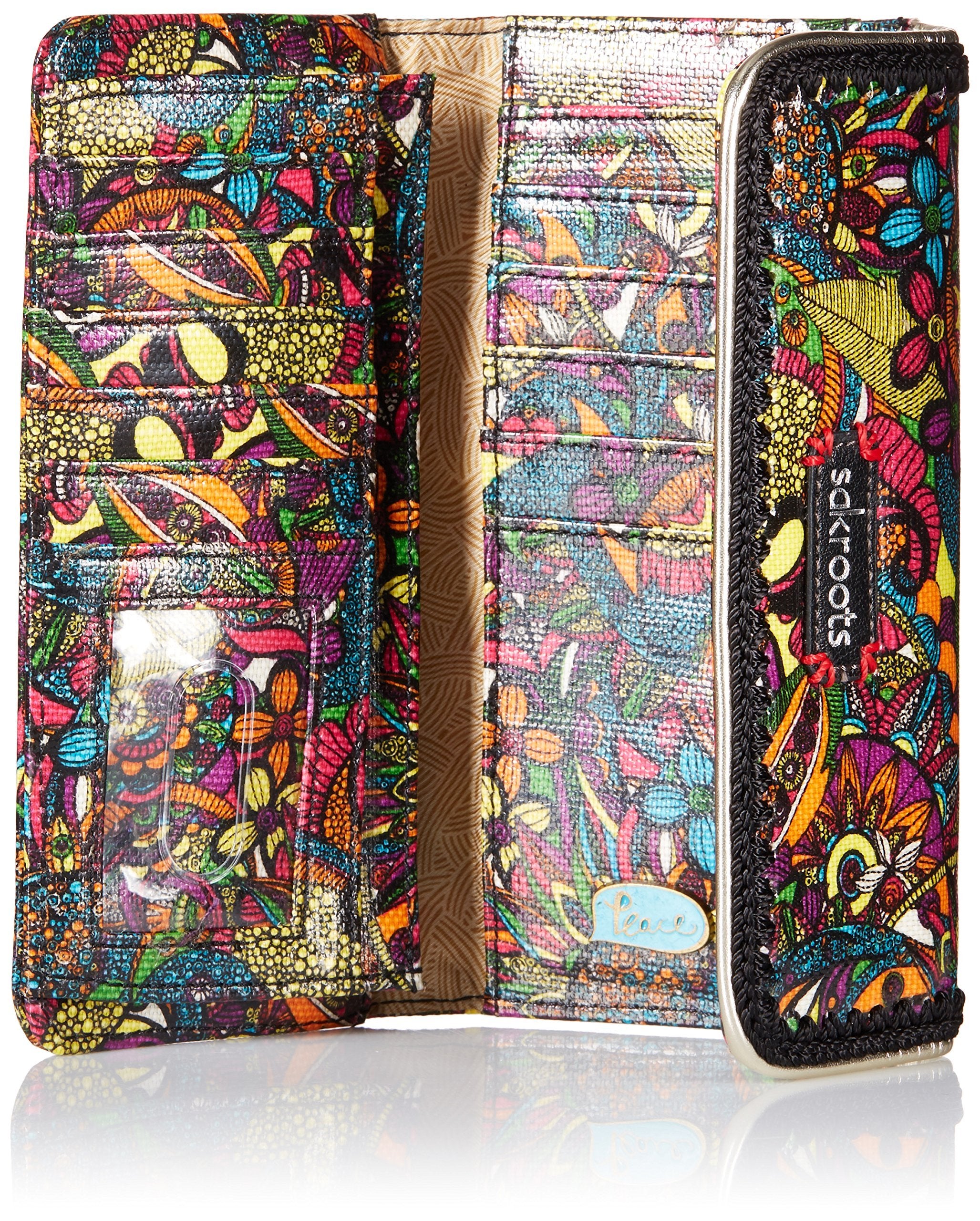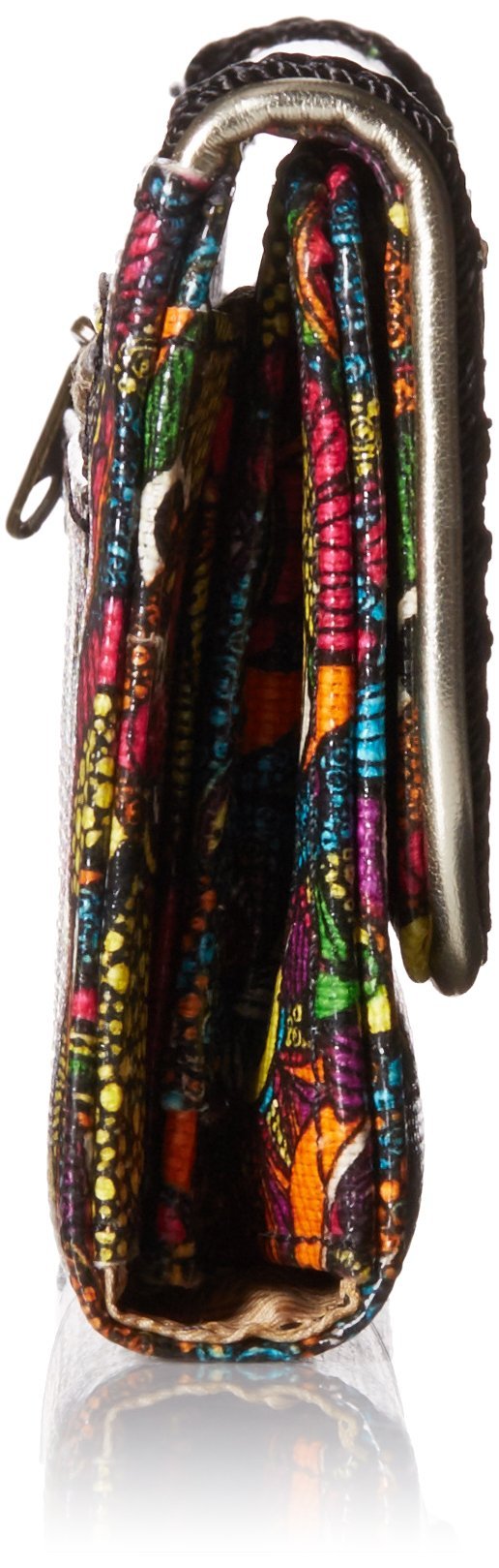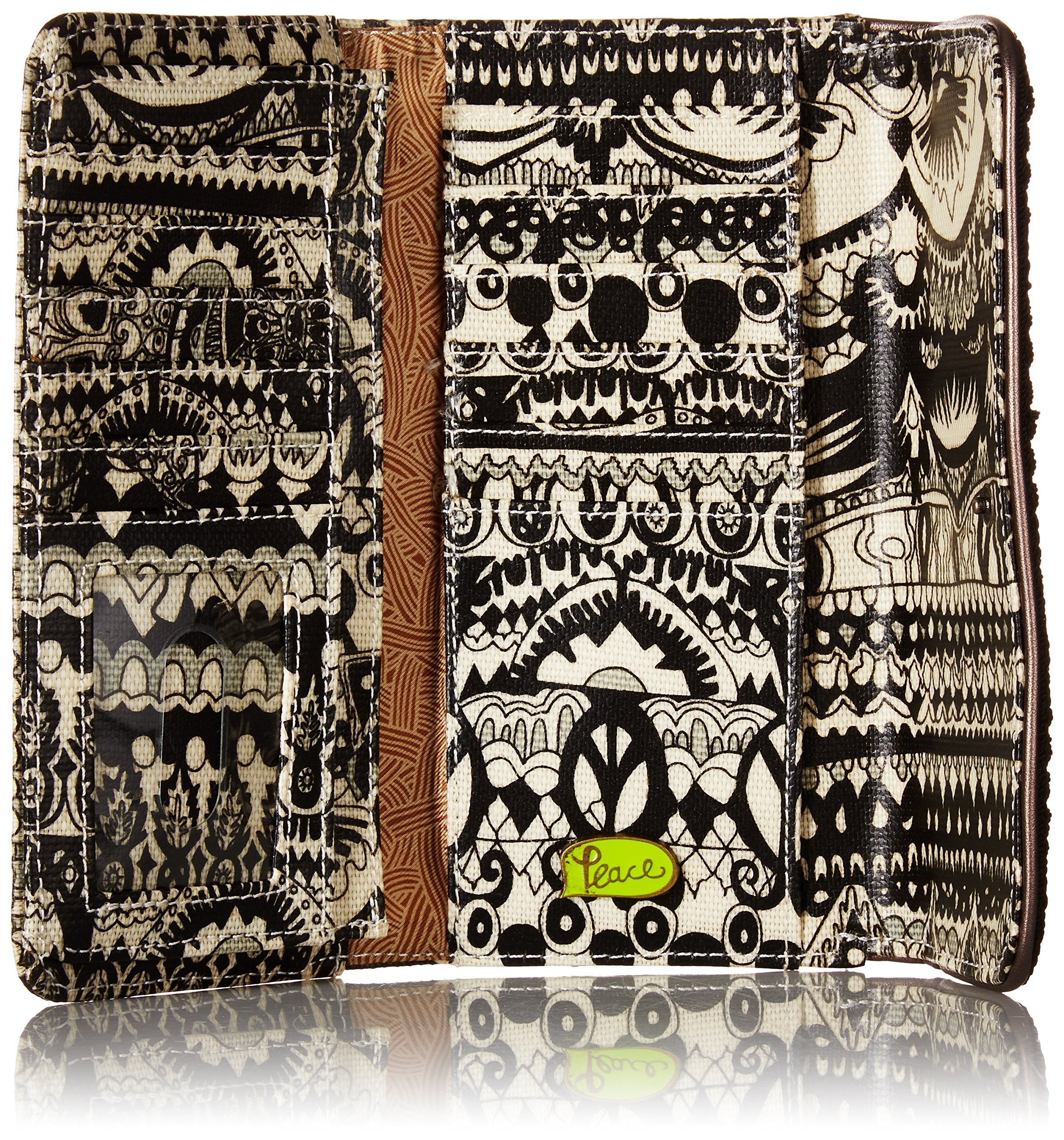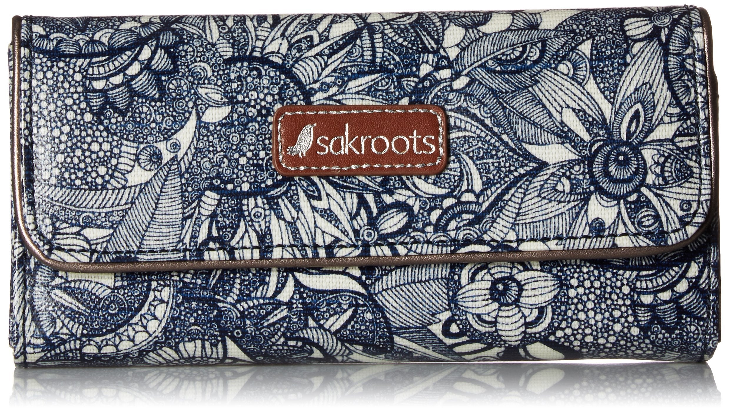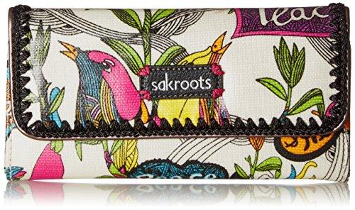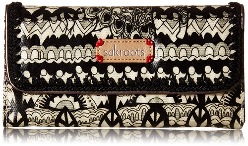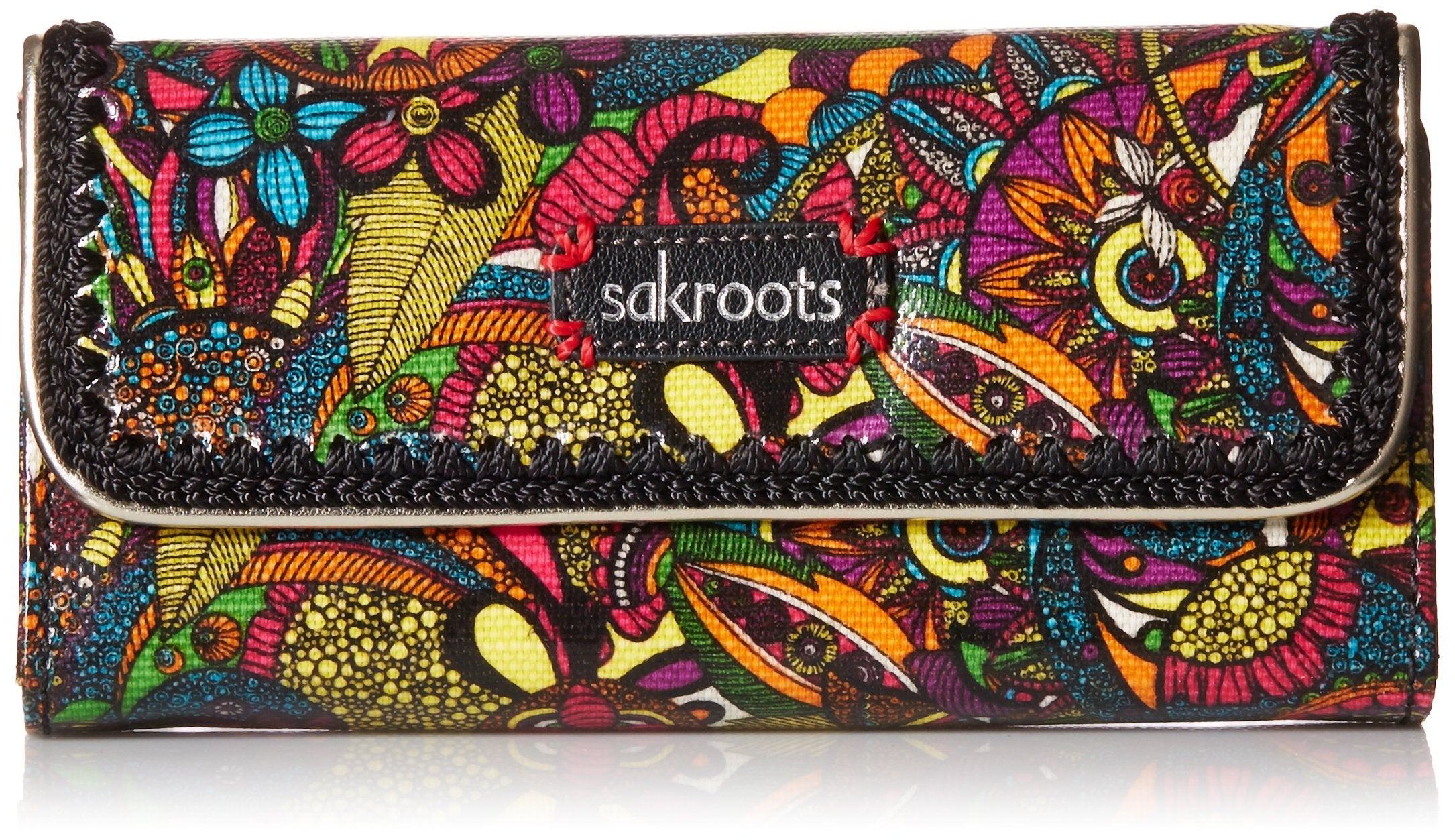 Sakroots Artist Circle Trifold Wallet keeps your most valuable personal and financial items organized and easily accessible with vibrant style. It has a snap closure, and it contains a clear ID window; several lined, full-length bill compartments; a zippered coin pocket; and multiple credit card slots. It offers a slim silhouette for an easy fit inside your favorite Sakroots handbag or tote.