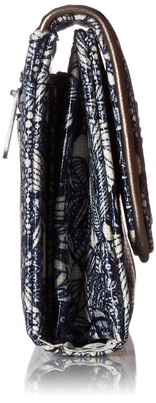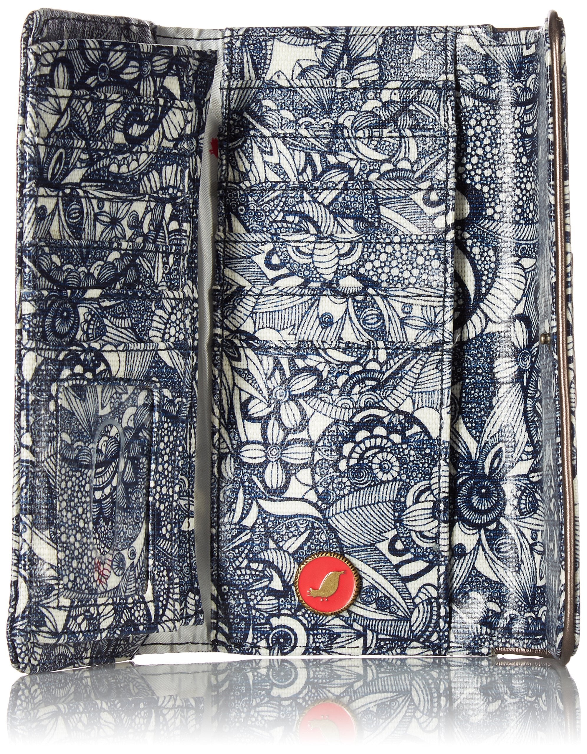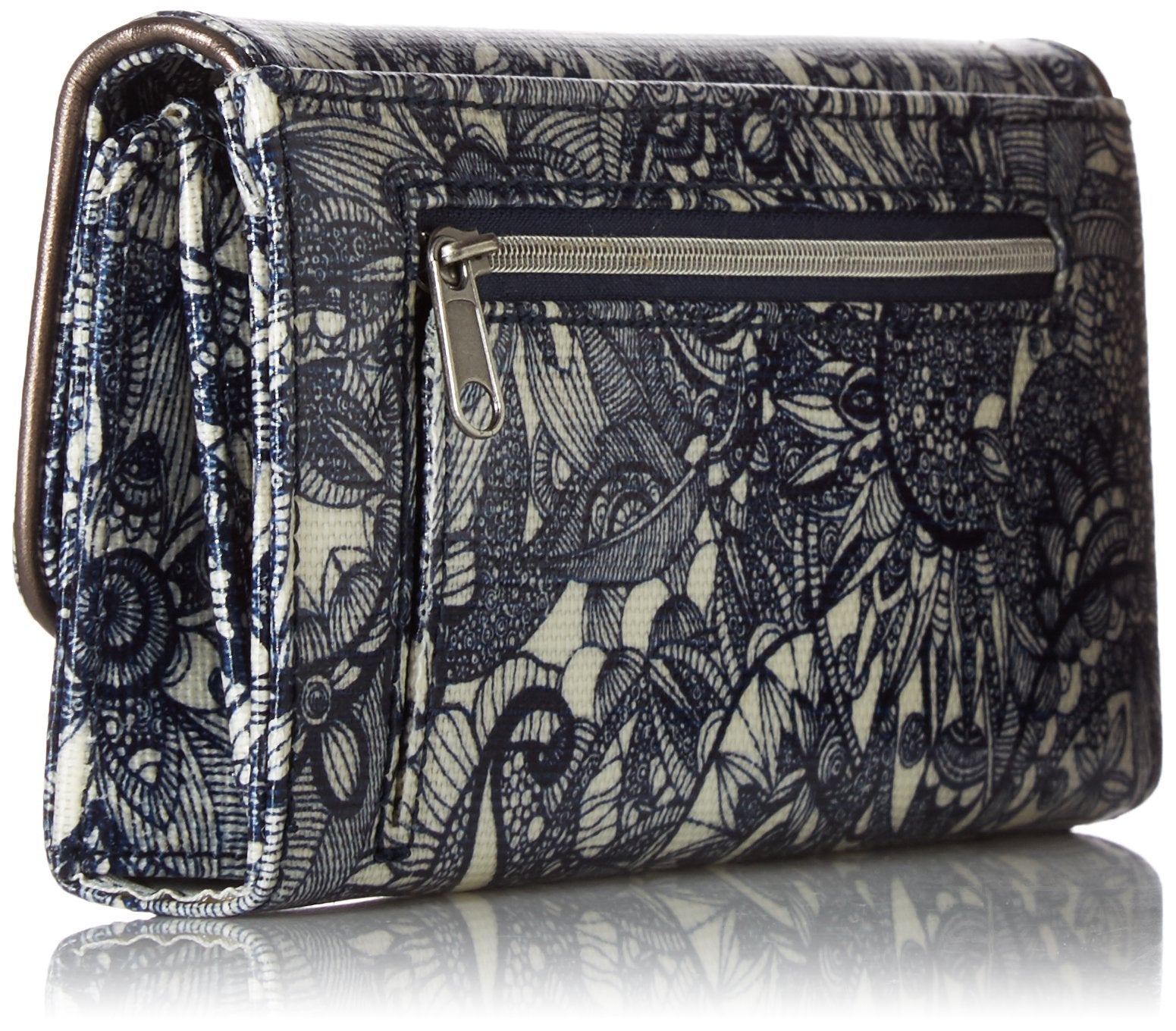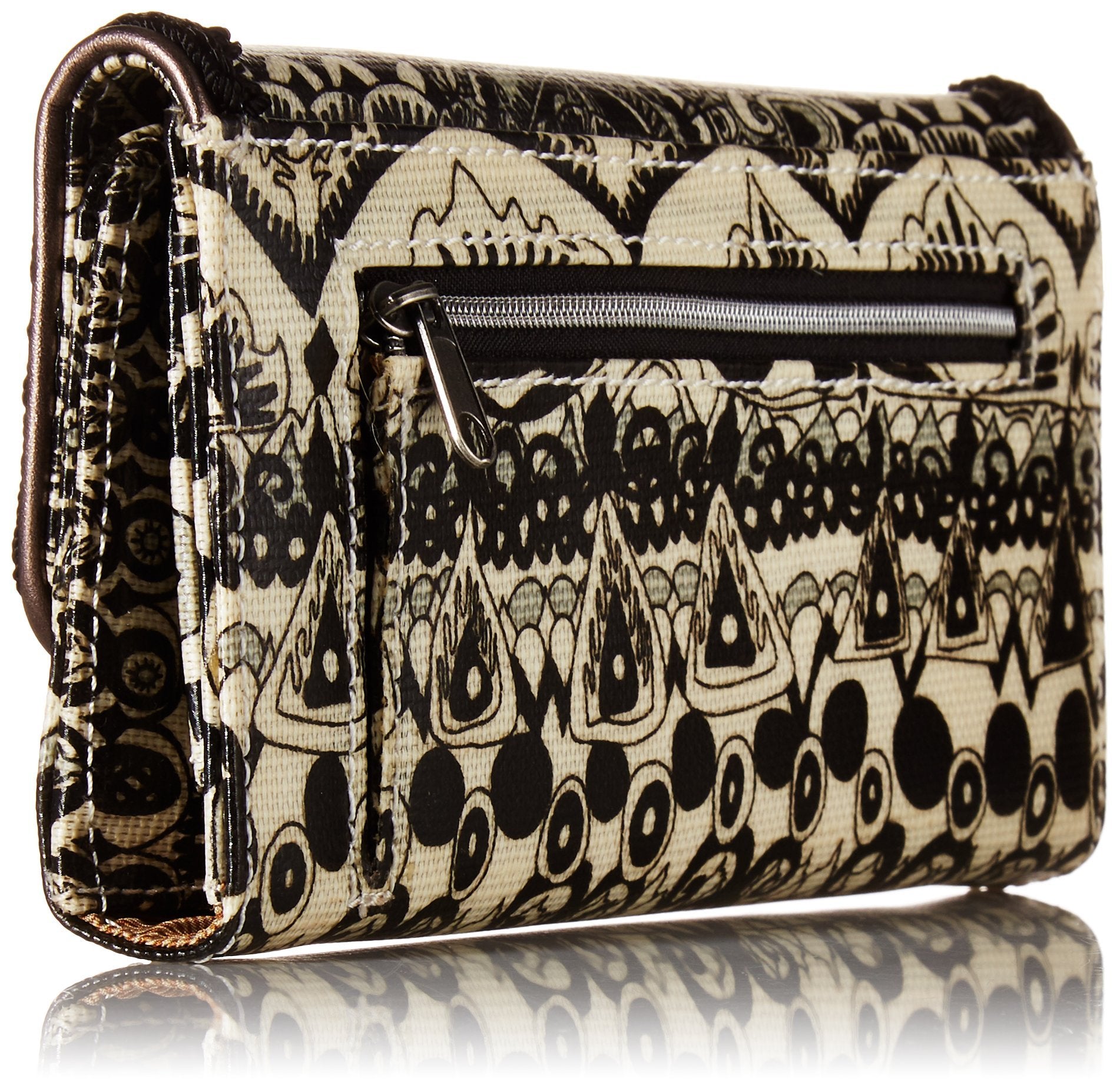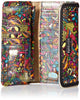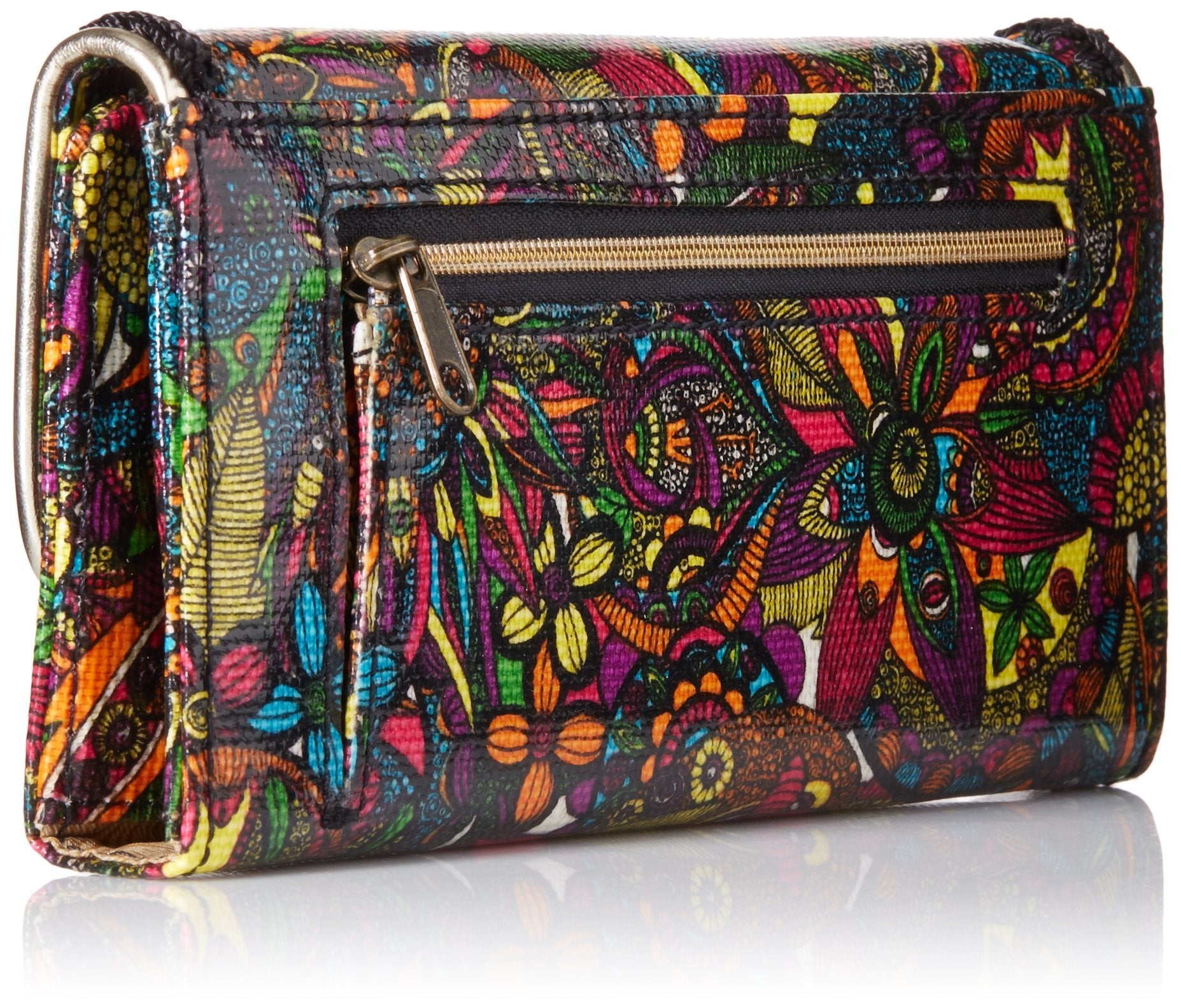Sakroots Artist Circle Trifold Wallet keeps your most valuable personal and financial items organized and easily accessible with vibrant style. It has a snap closure, and it contains a clear ID window; several lined, full-length bill compartments; a zippered coin pocket; and multiple credit card slots. It offers a slim silhouette for an easy fit inside your favorite Sakroots handbag or tote.