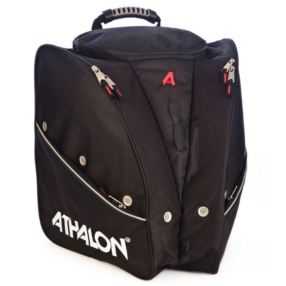 The Tri- Athalon Adult Boot Bag is loaded with features to suit your active lifestyle. Pack your boots and other must-haves for a winter sports adventure inside this lightweight and durable boot bag from Athalon. The Athalon Tri-Athalon Boot Bag is made from polyester fabric and features a unique design with zippered side entry and ventilated boot sections that allow you to pack your boots in separate compartments. Designed with an inside zipper pocket to hold accessories and a roomy center compartment to hold clothing, extra layers, or a helmet, this boot bag is perfect for the active individual on the go. Other features of this bag include a front daisy chain, a top carry handle, reflective piping accents, and lumbar pads with extra foam and mesh for carrying comfort.