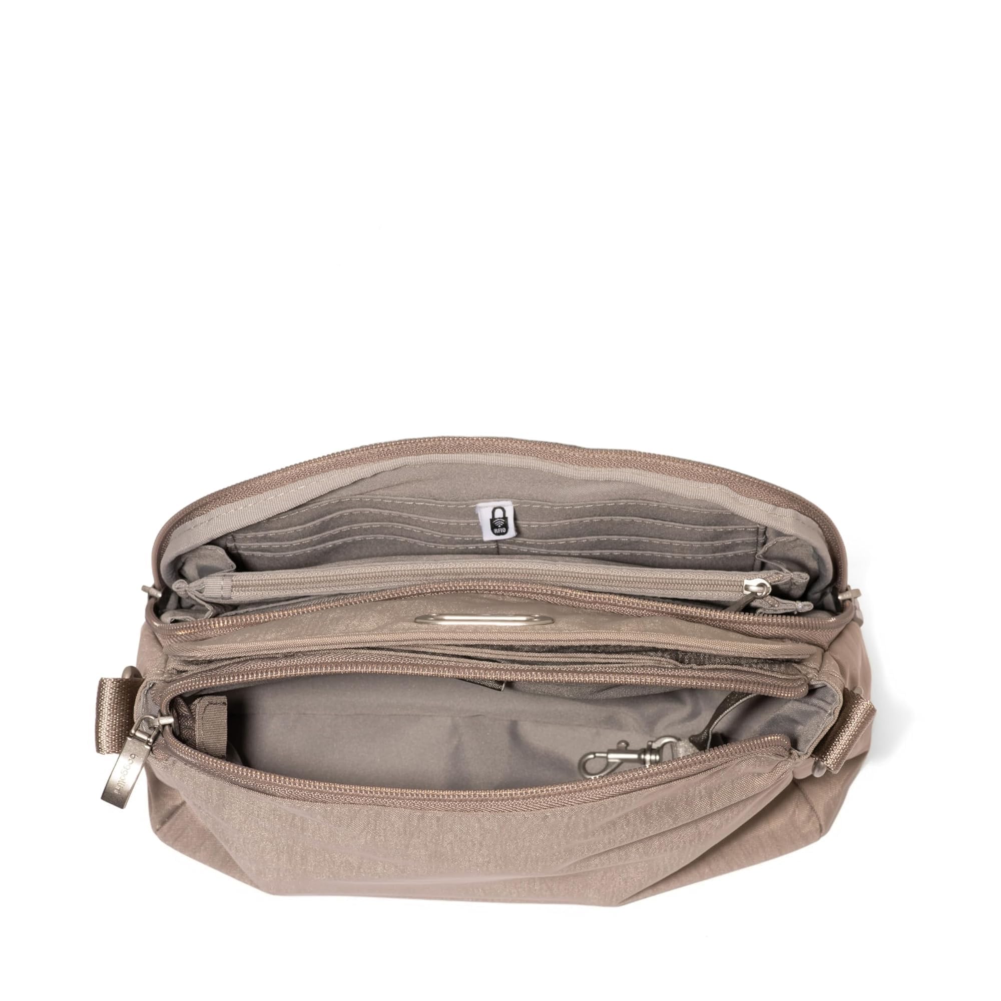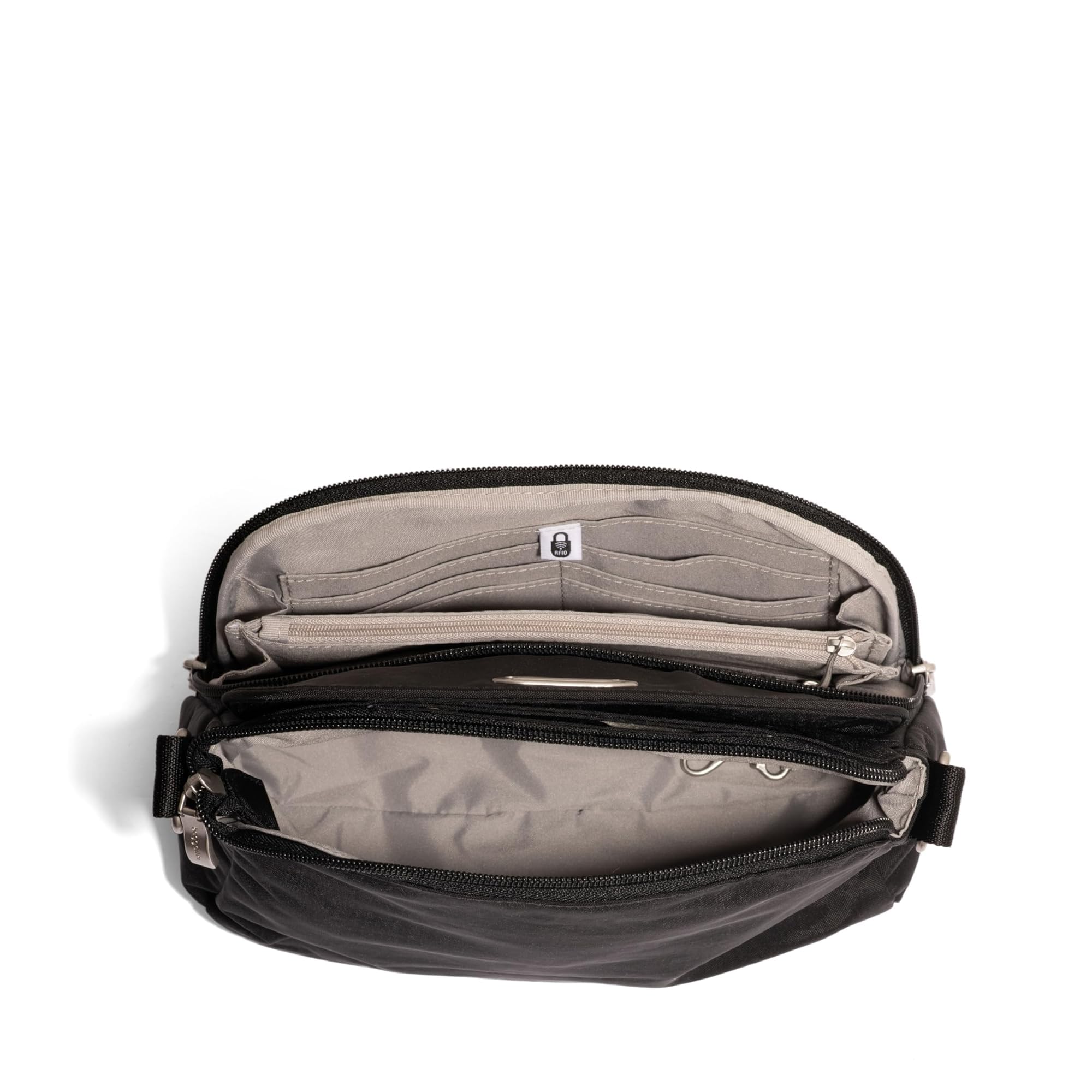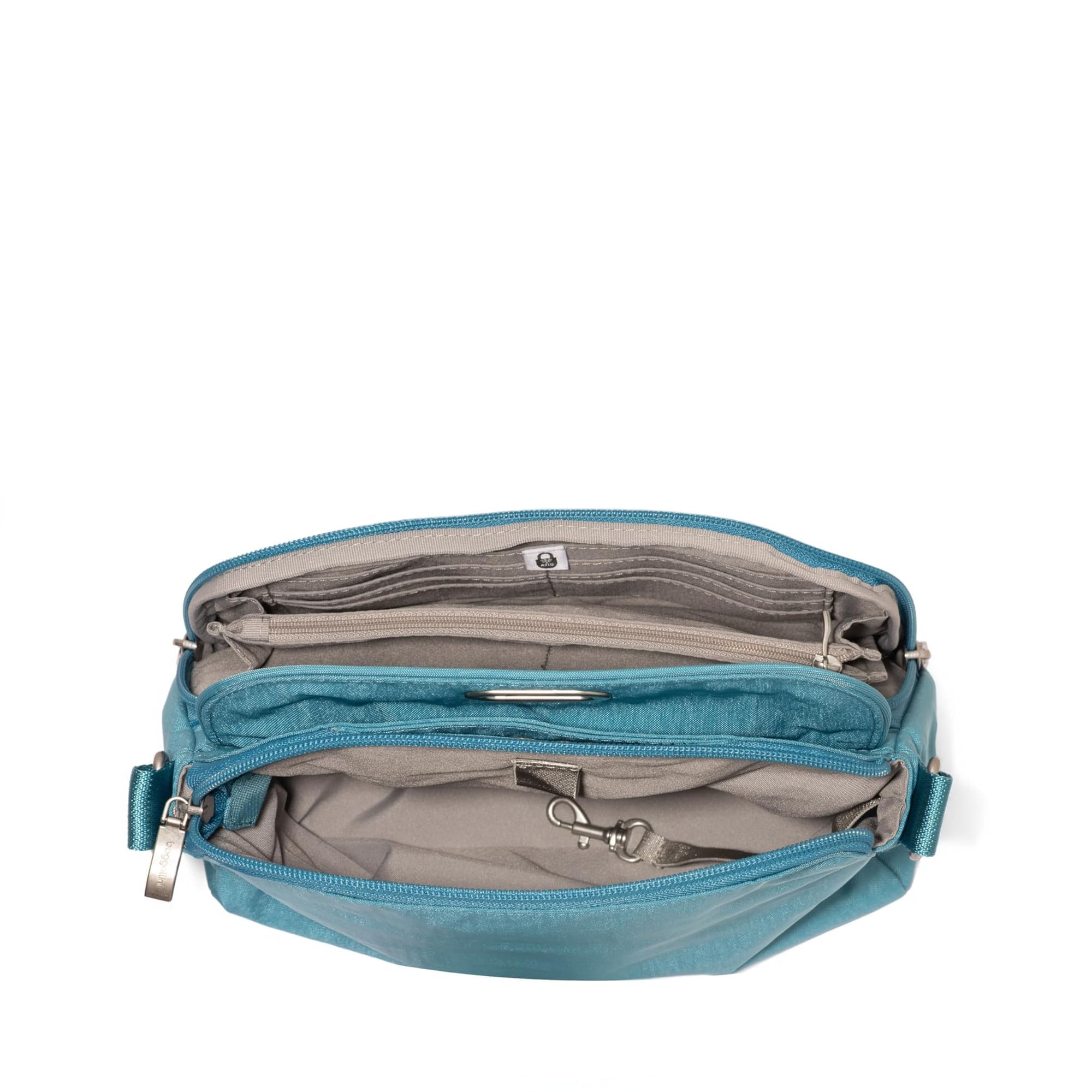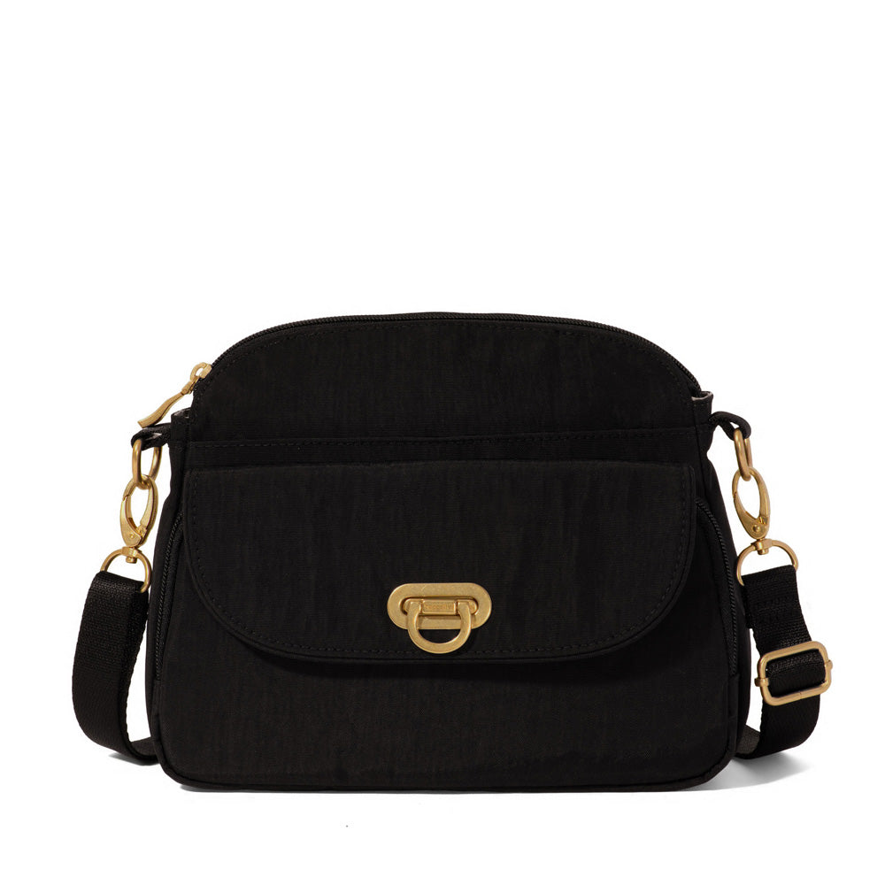 With a sleek flip lock closure and a built-in front RFID-wallet, this crossbody bag is all about functional style. A privacy pocket and built-in key leash helps keep smaller items secure. Plus, its easy to clean and even easier to wear thanks to the lightweight design.
