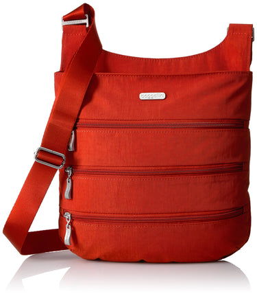 Zipped compartments that face different directions make organization easy. This cross body bagg widens at the bottom, yielding surprising capacity. Exterior pockets hold newer cell phones.