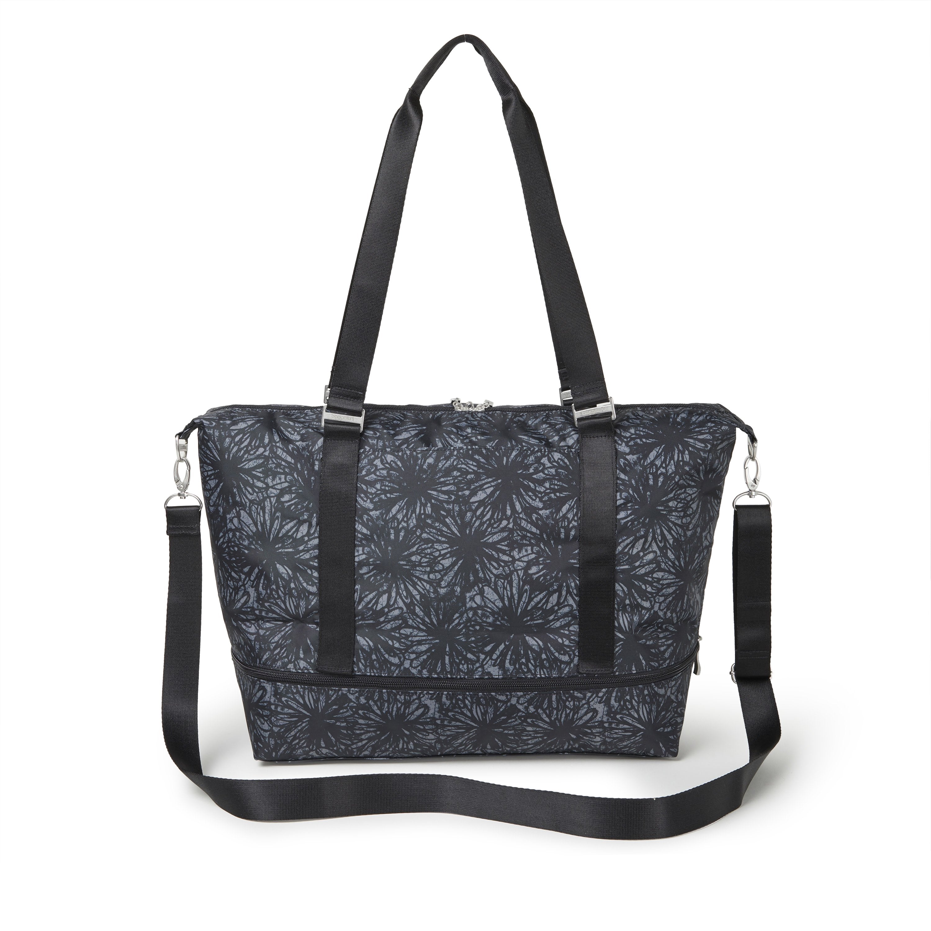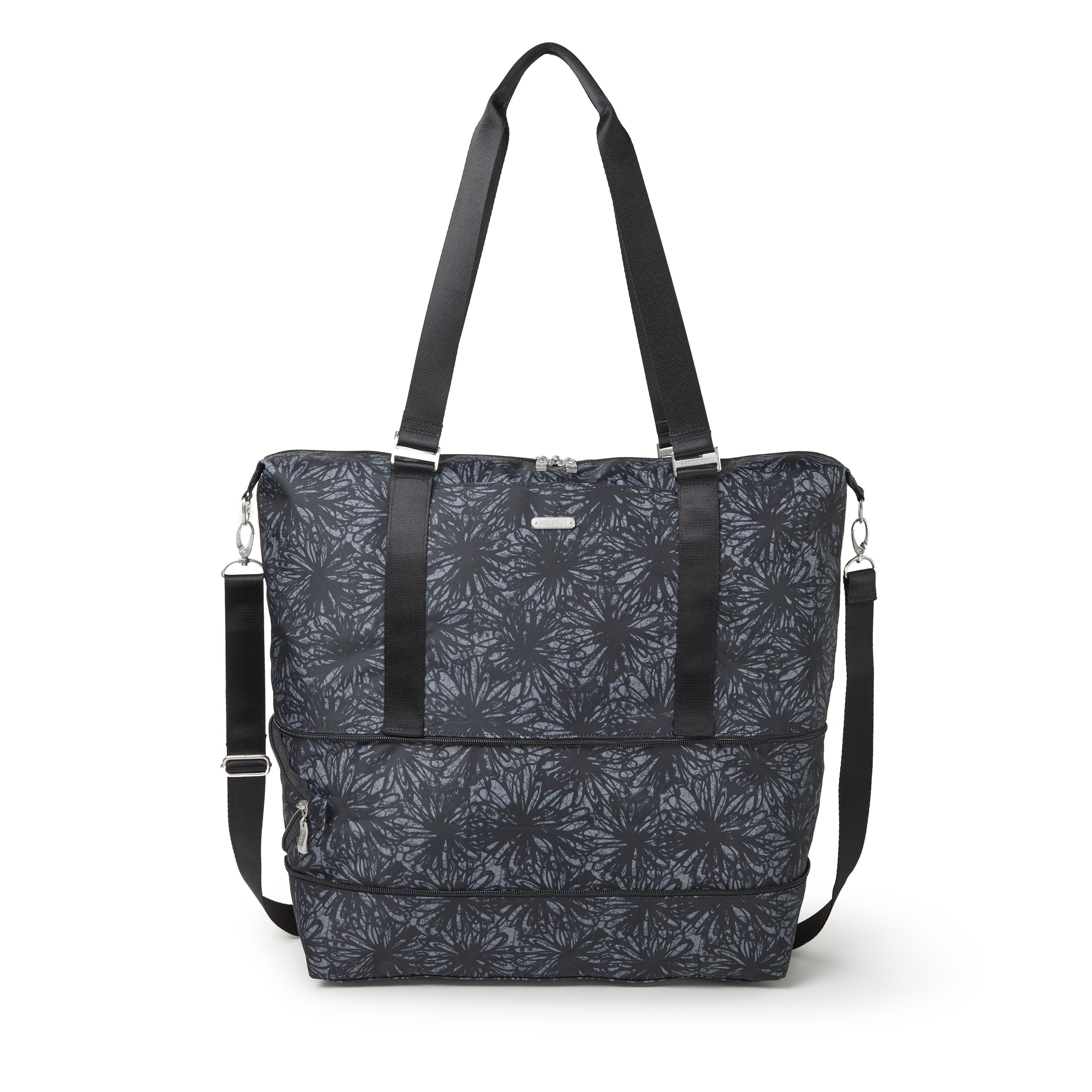 The expandable carry on duffel has everything you need to travel with ease. A roomy, expandable design accommodates souvenirs, while a removable RFID wristlet helps keep your information safe. Slip your luggage handle through the built-in pass-through, and feel confident that your bagg wont slip or fall while you run to make your connection.
