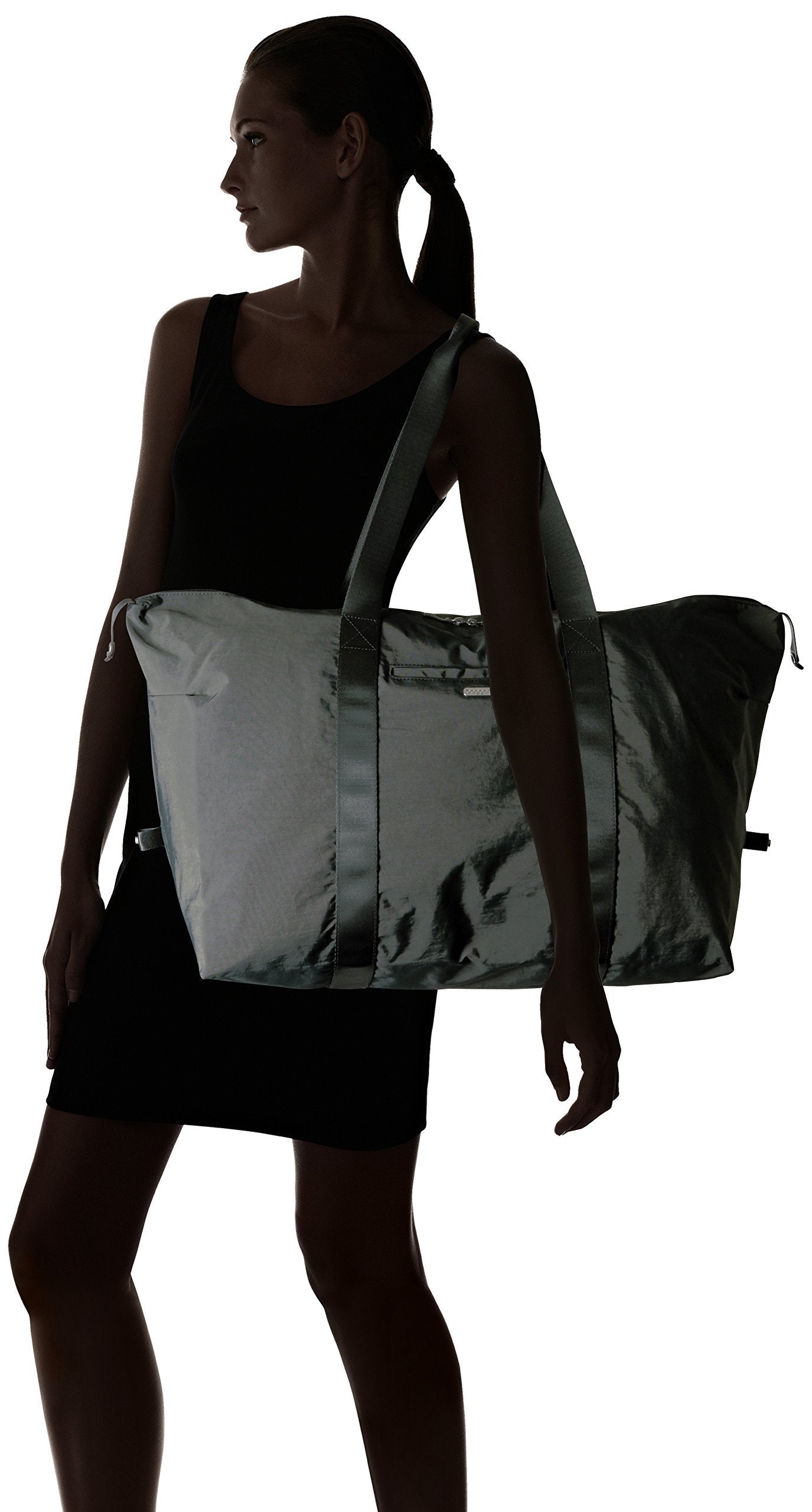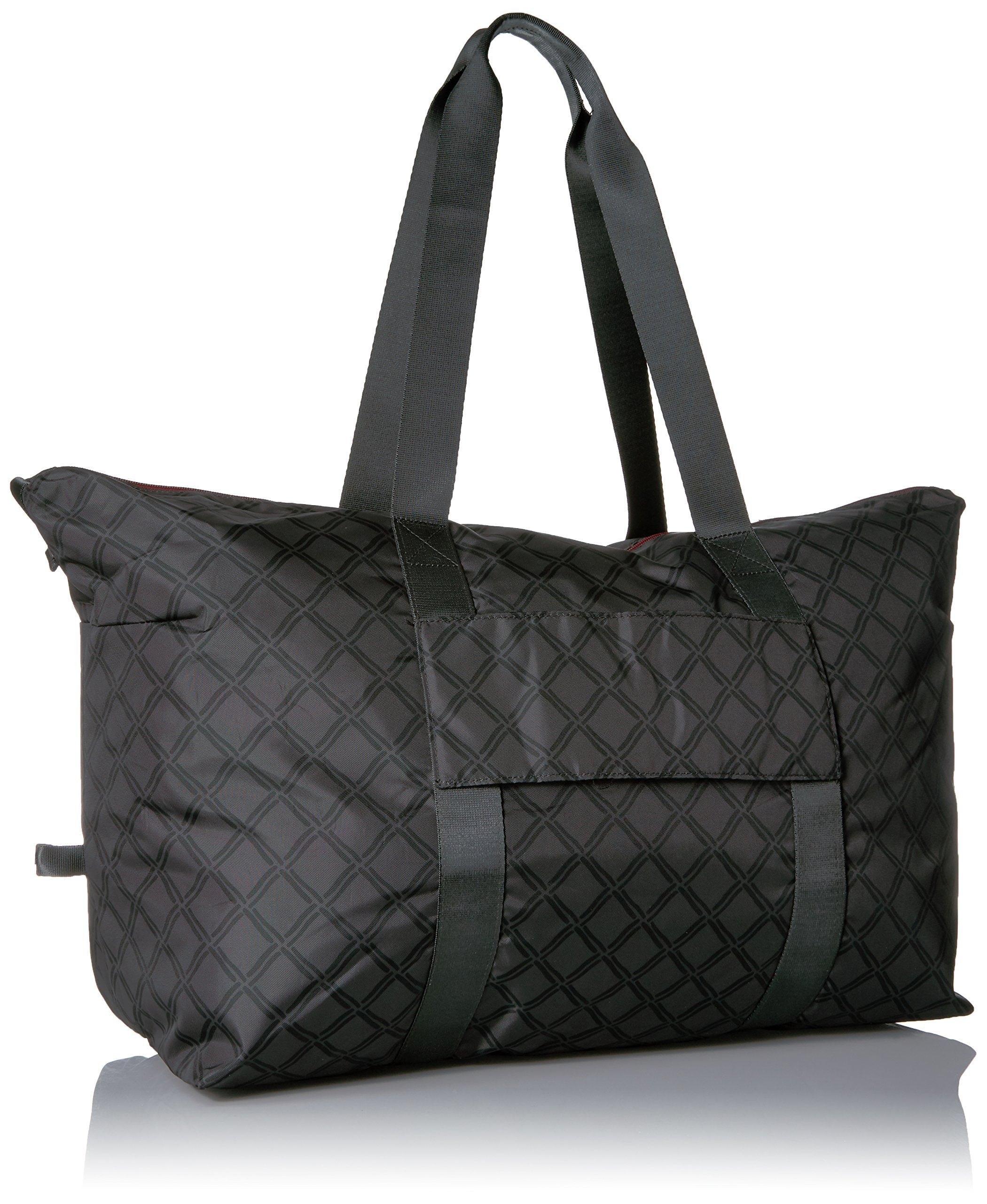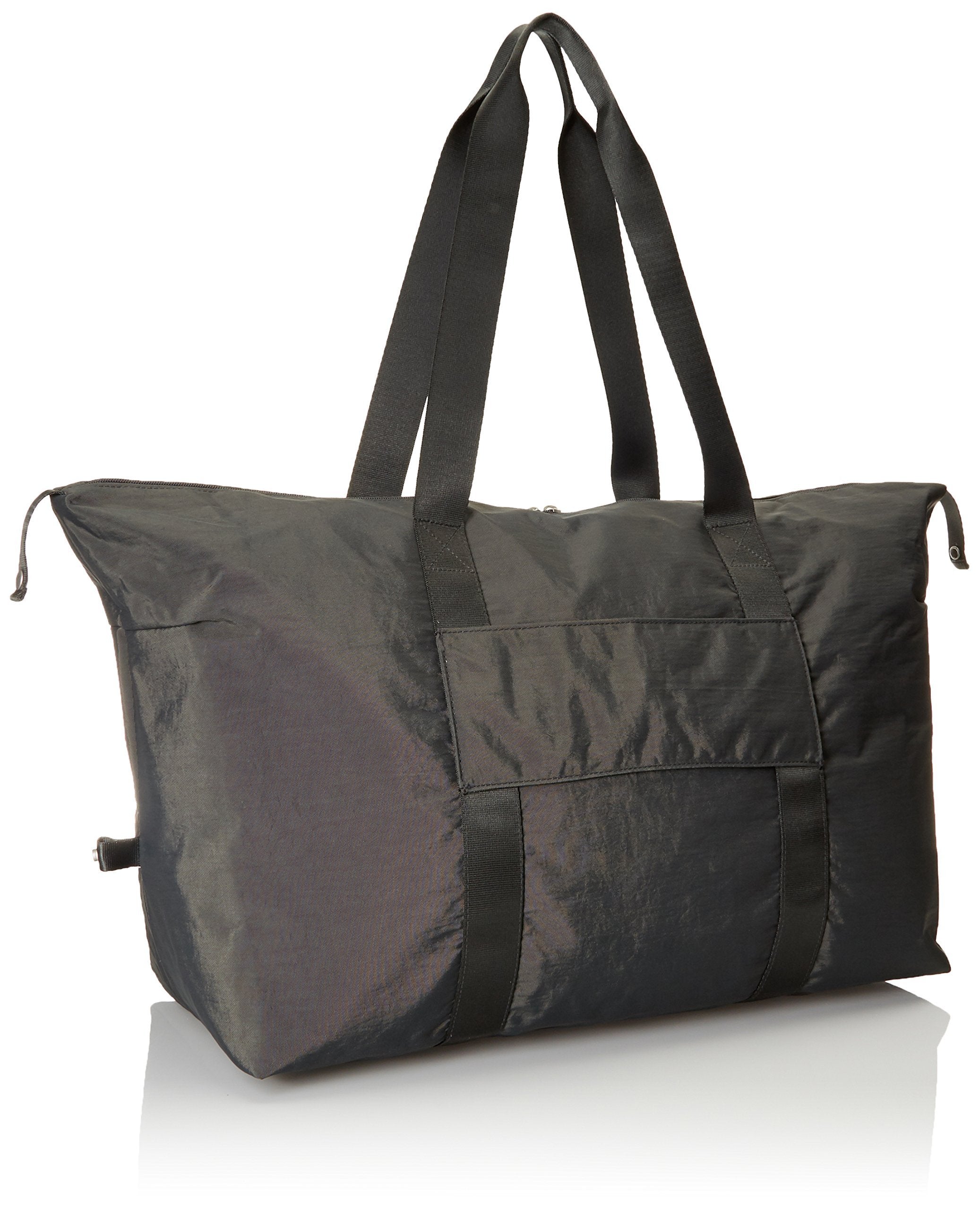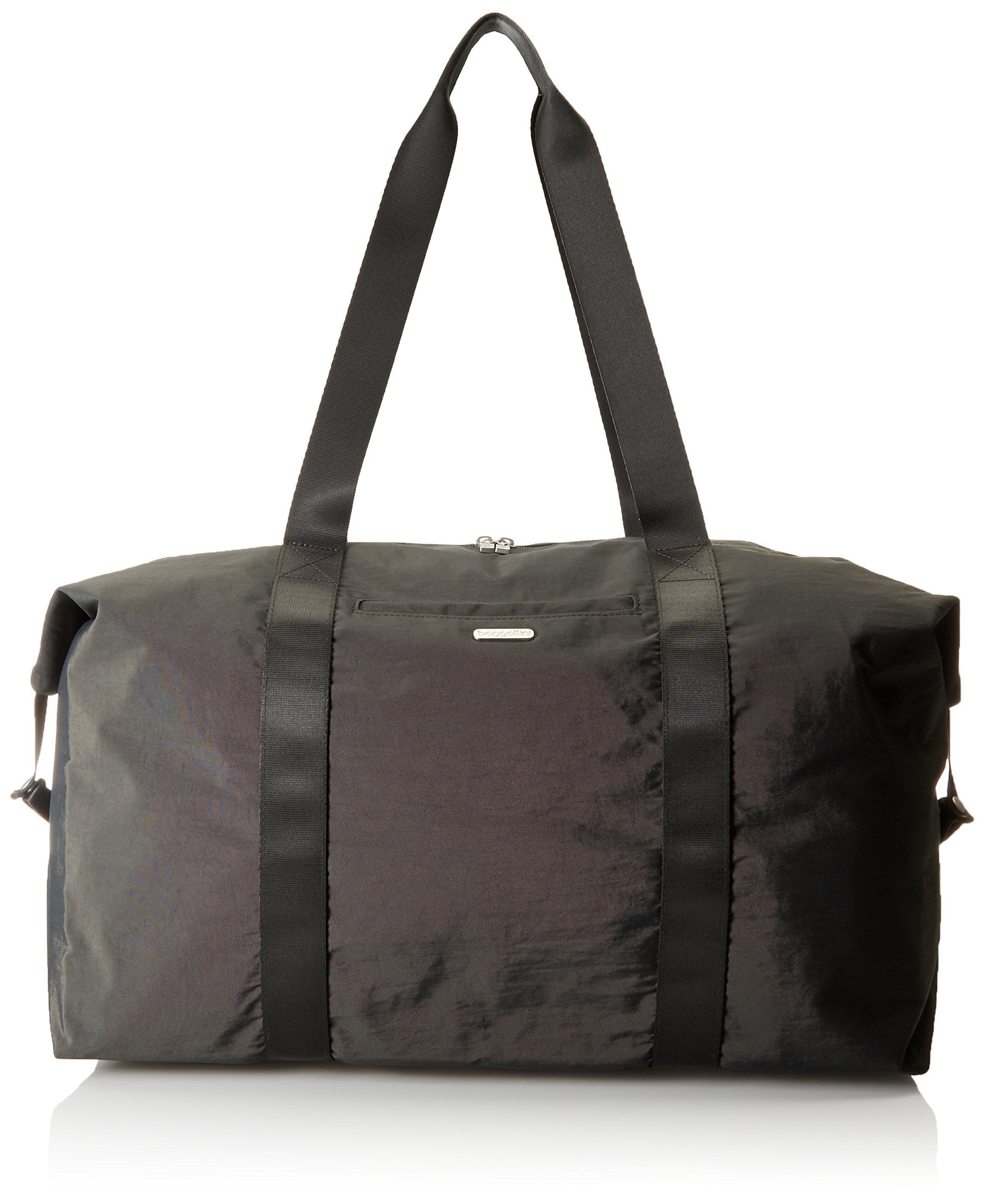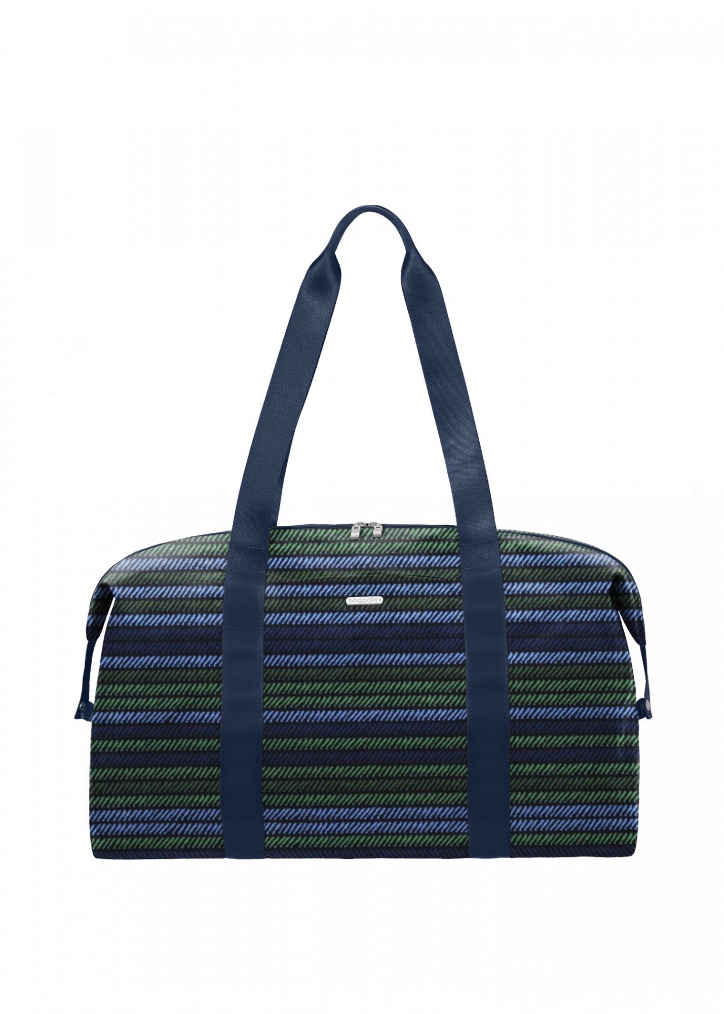 The duffel, refined! The ends of the two-way zipper snap down, and pops ofcolor brighten the trim. A sleeve slides over your suitcase handle.