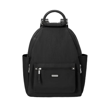This stylish backpack lets you go hands-free. Its perfect for shopping trips or activities with kids. The metro backpack with RFID wristlet is make with lightweight, water-resistant nylon and has sleek faux leather accents. The included RFID wristlet helps keep your information safe, so you can focus on more important things.