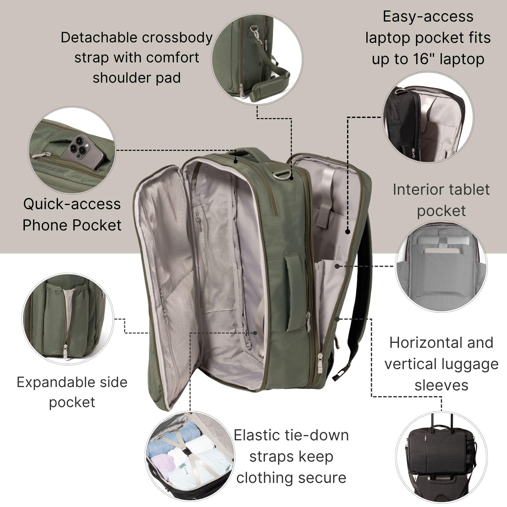 Make the most of your next adventure with a travel backpack made to adapt to anything the journey has in store. This convertible backpack opens flat for easy, suitcase-like packing, and features a convenient crossbody strap when you want to wear it as a duffel. With an expandable main compartment, a convenient luggage handle sleeve, and an easy-access laptop pocket, travel's never been easier.