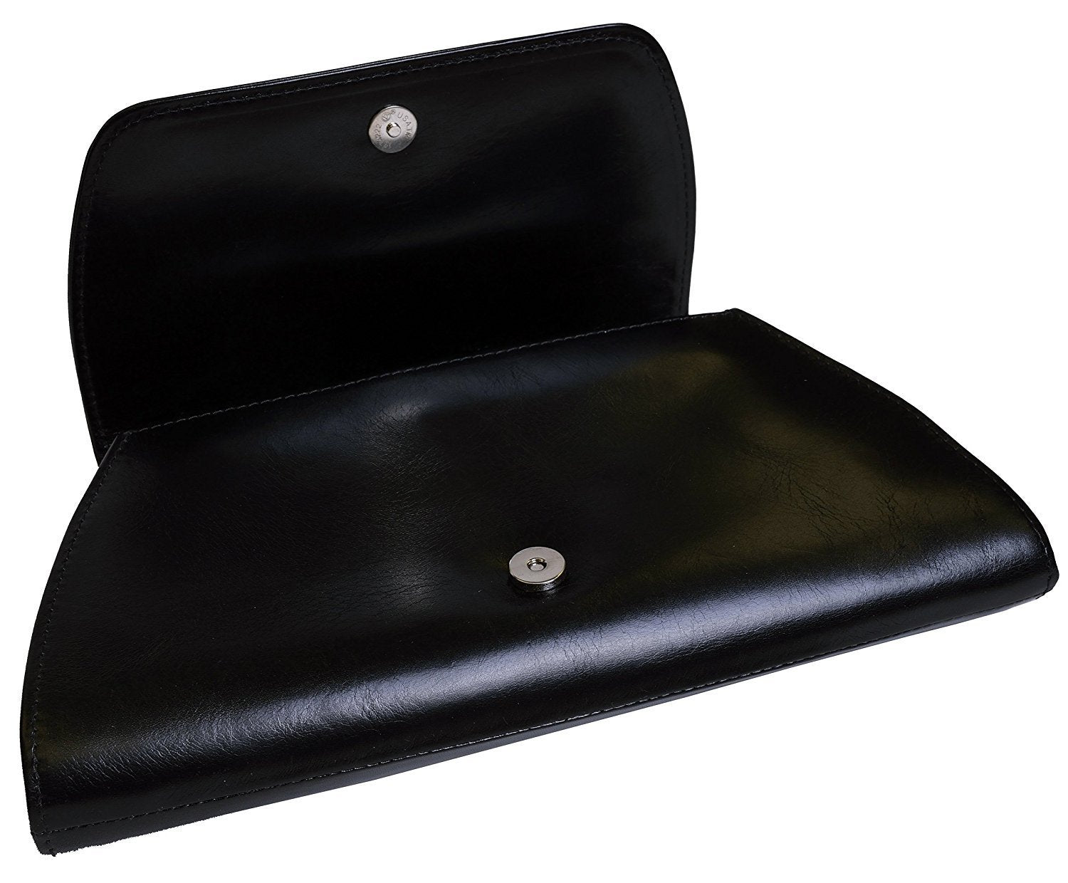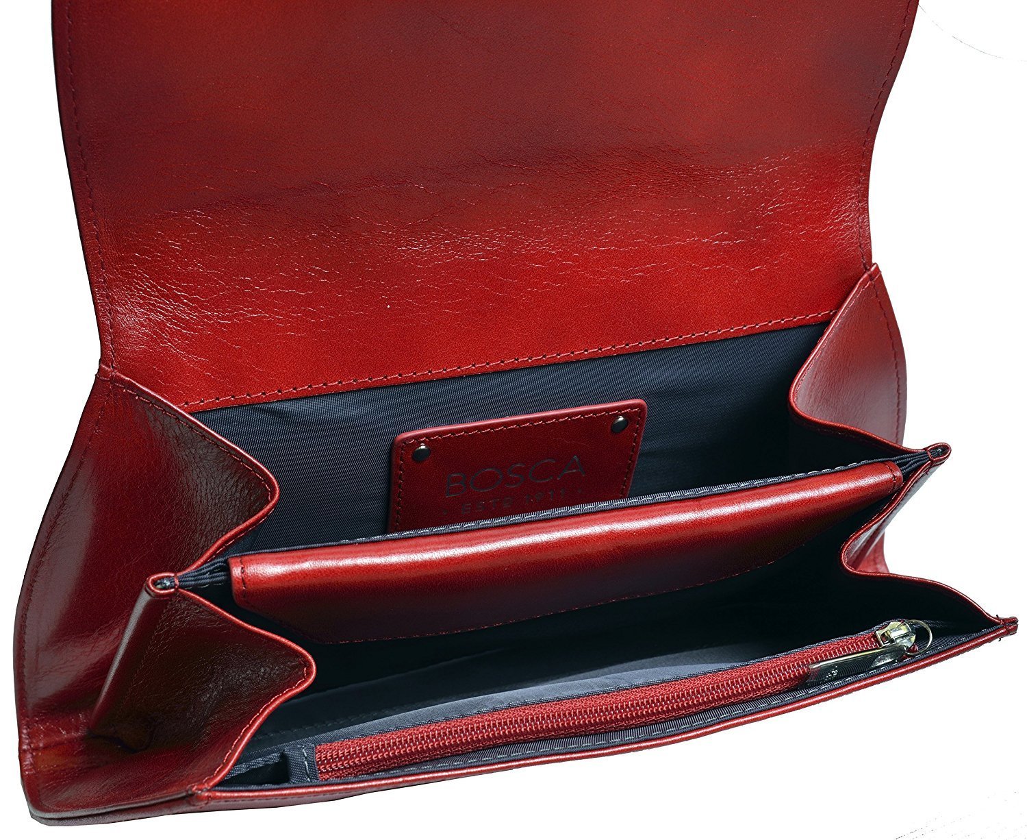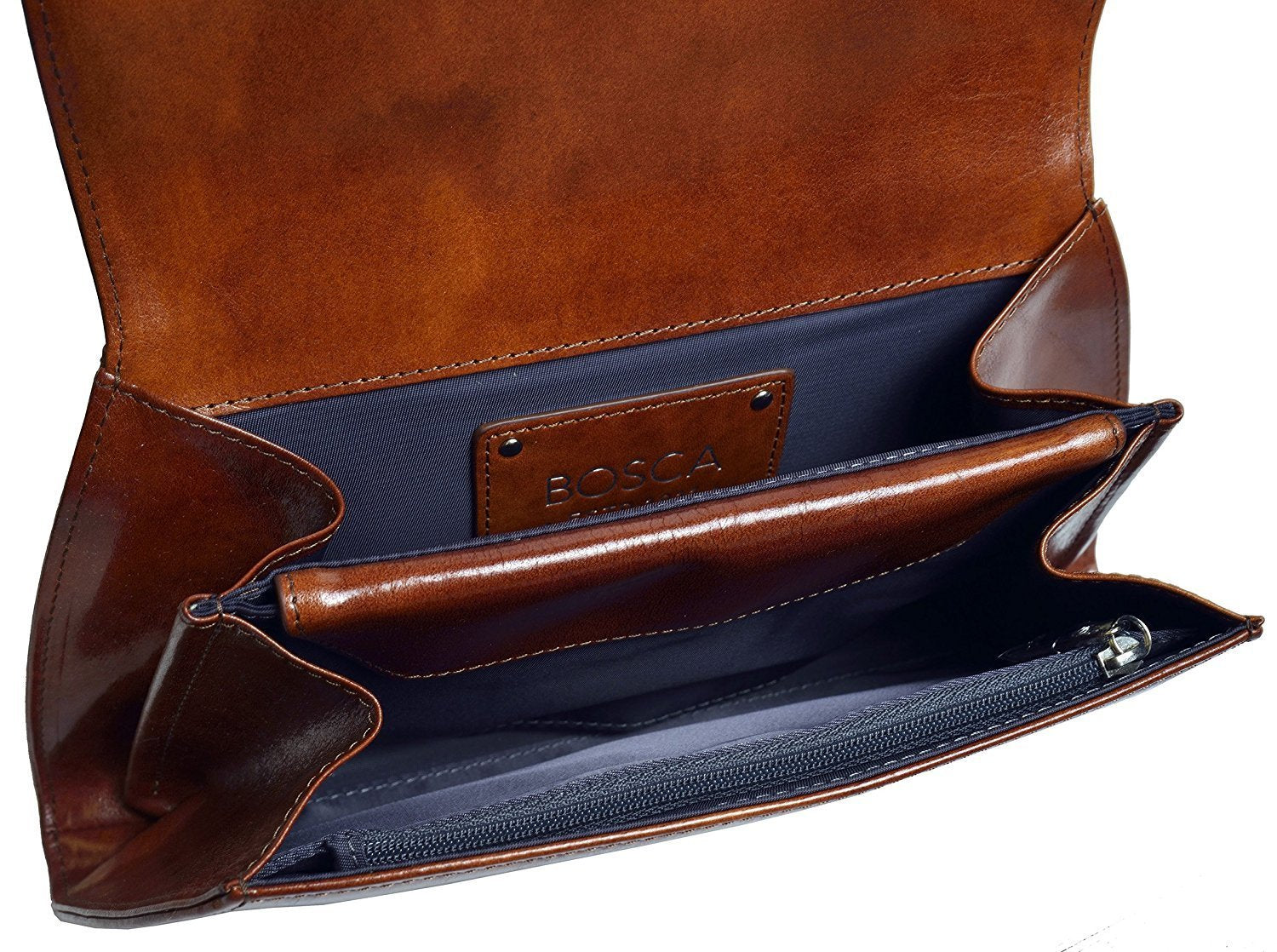 The good life of the Roaring 20s carried a cost- you get to carry just the clutch. Pulling from Boscas 100 years of archives this art-deco shape finds new high-life in this oh-so-functional clutch. Carries just enough of everything a girl could want. 5.375" x 10.5" x 1.25"