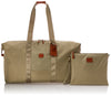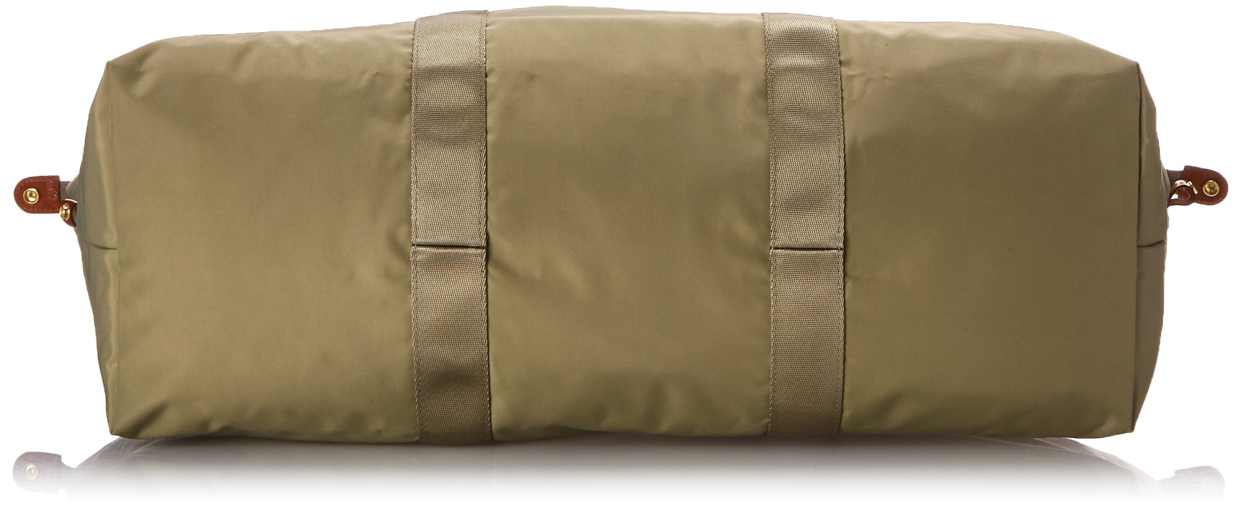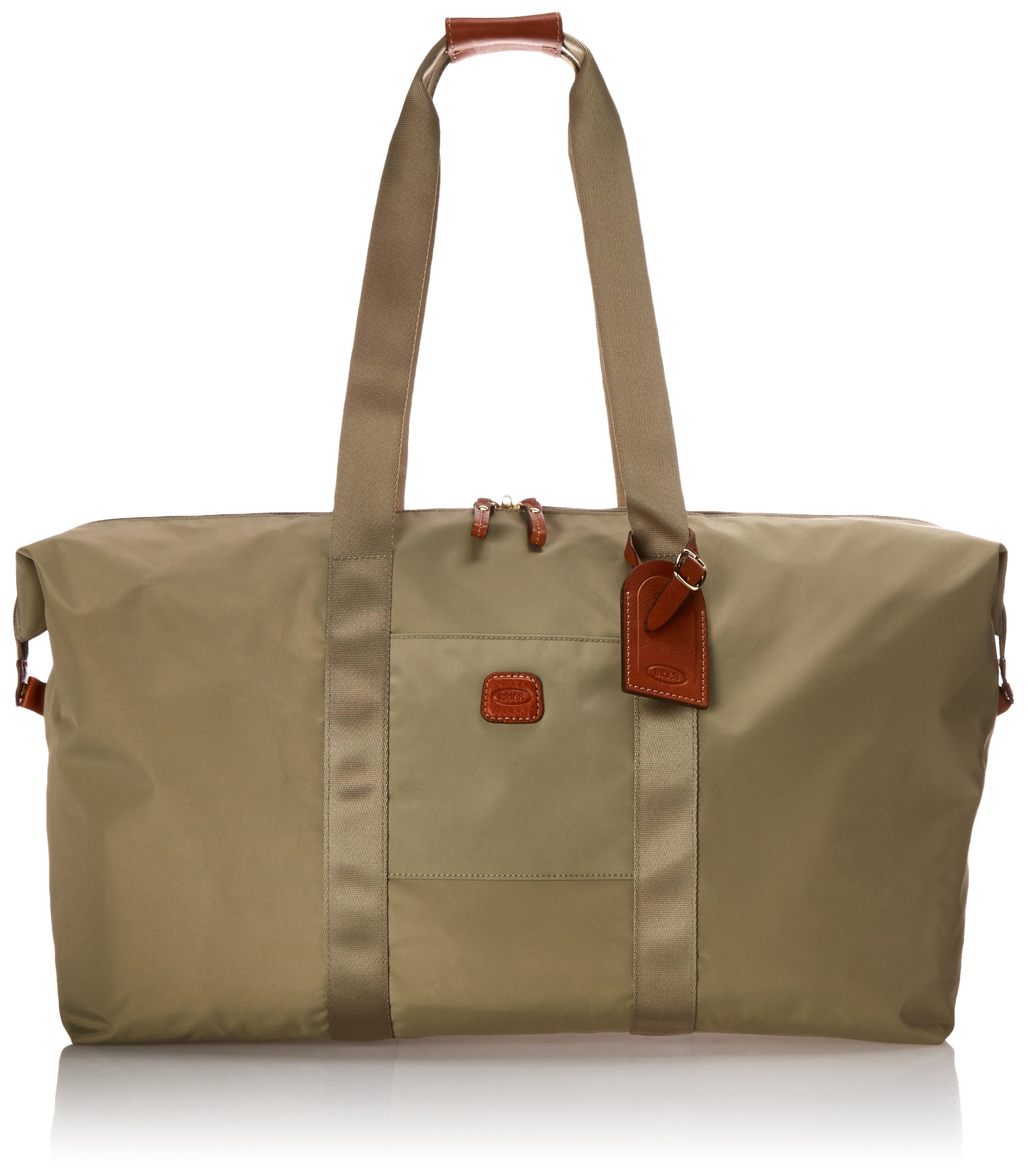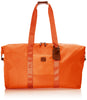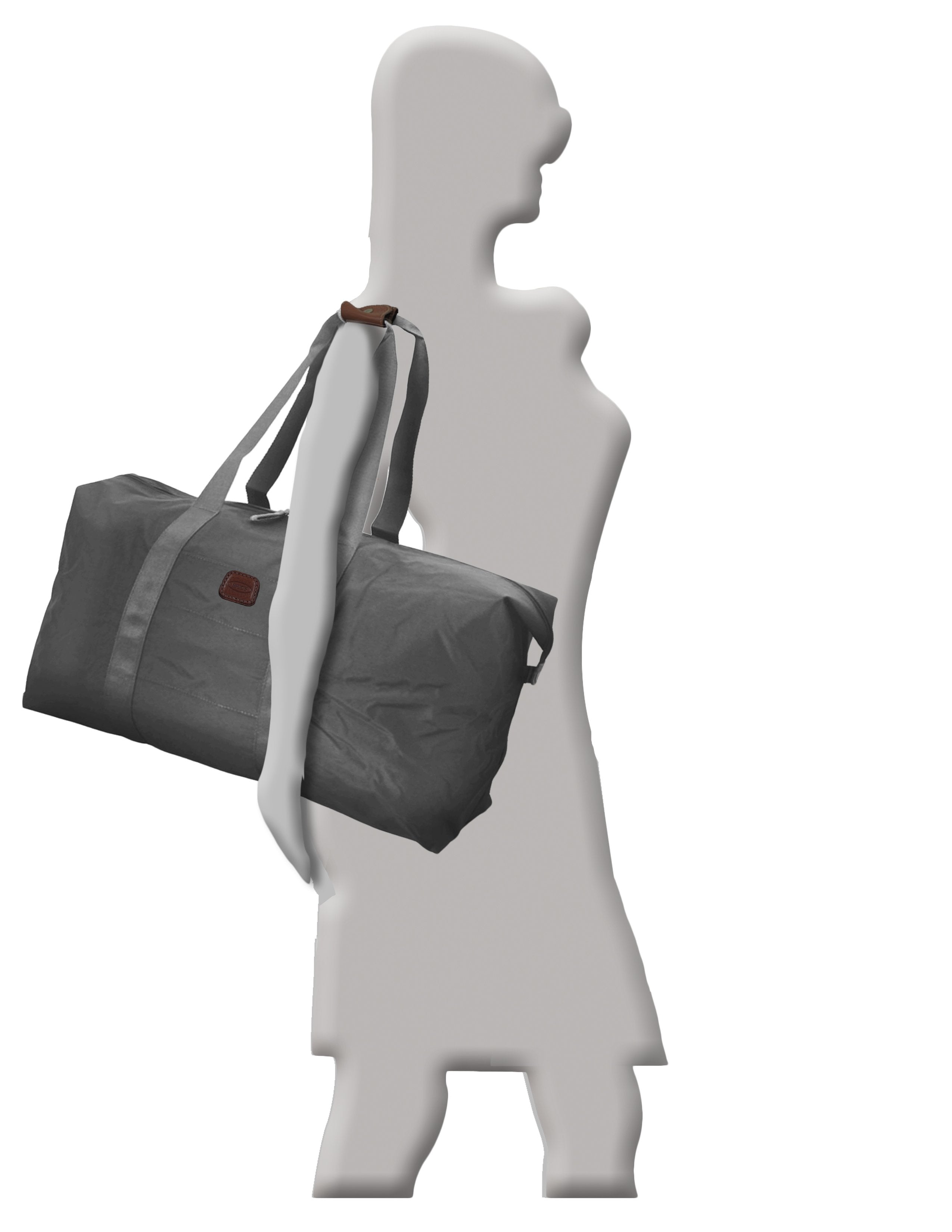Color:Orange Melon A stylish foldable duffel carry on that fits all the extra'stuff' we bring along with us when we travel. Main compartment includes azippered closure with one interior pocket and one exterior-front pocket forsmaller items. Long straps allows bag to be worn over shoulder. Greatweekender duffle with Tuscan leather trim