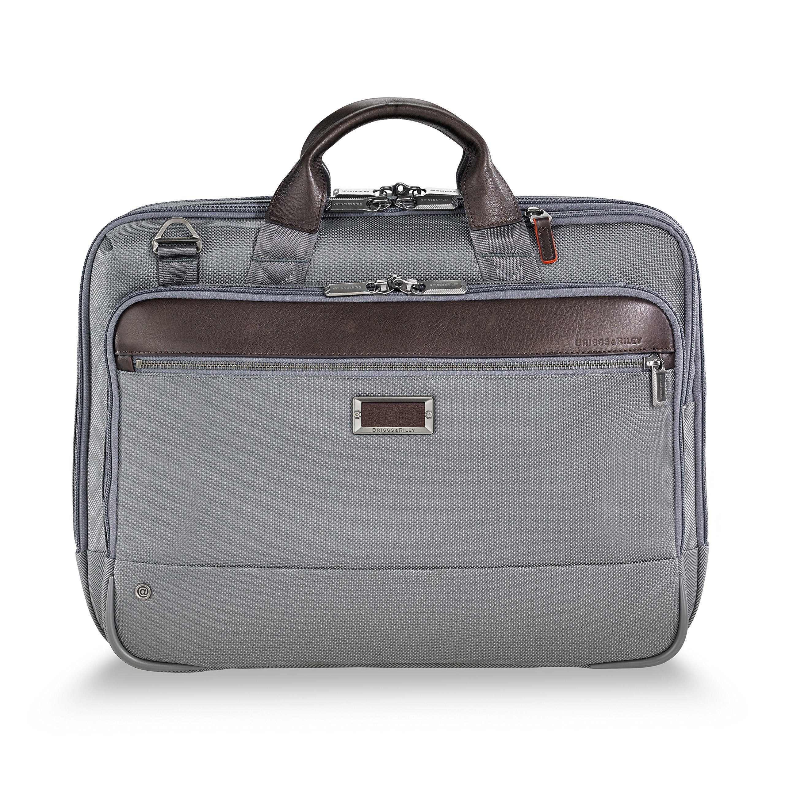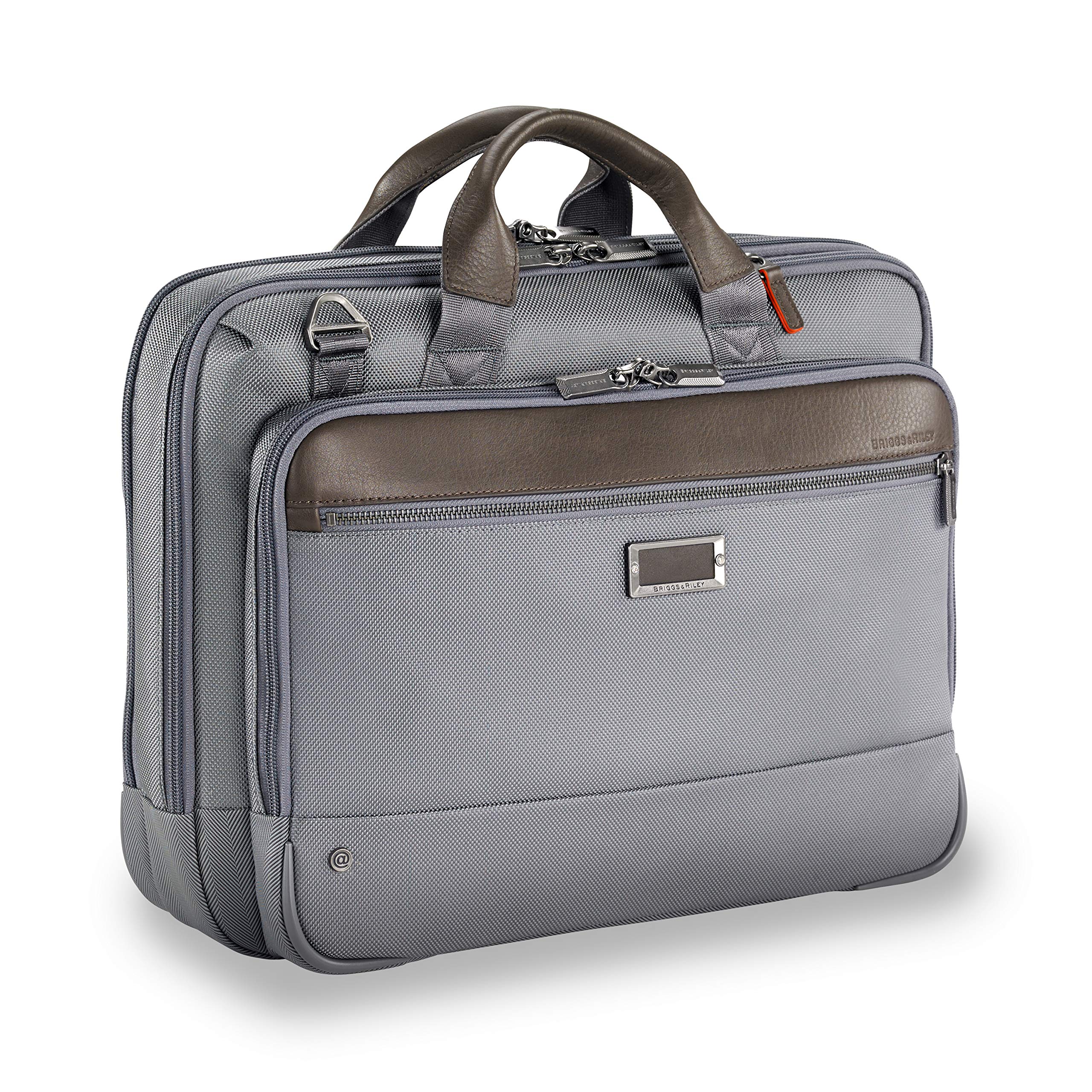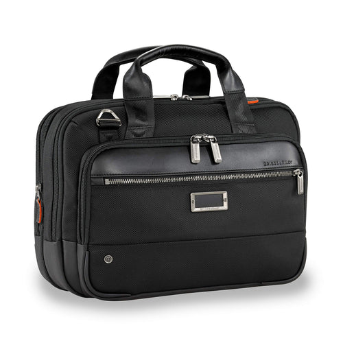 • 1600D ballistic nylon outer fabric resists wear, moisture, dirt and abrasion. Monogrammable leather nameplate on front panel to customize your brief with your initials. Corner SpeedThru pocket for quick storage of items at security checkpoints; can be easily accessed without letting go of the handles; orange lining alerts you if the pocket is open. Full-length zip pocket on front panel for easy access to extra items, such as sunglasses or a phone.