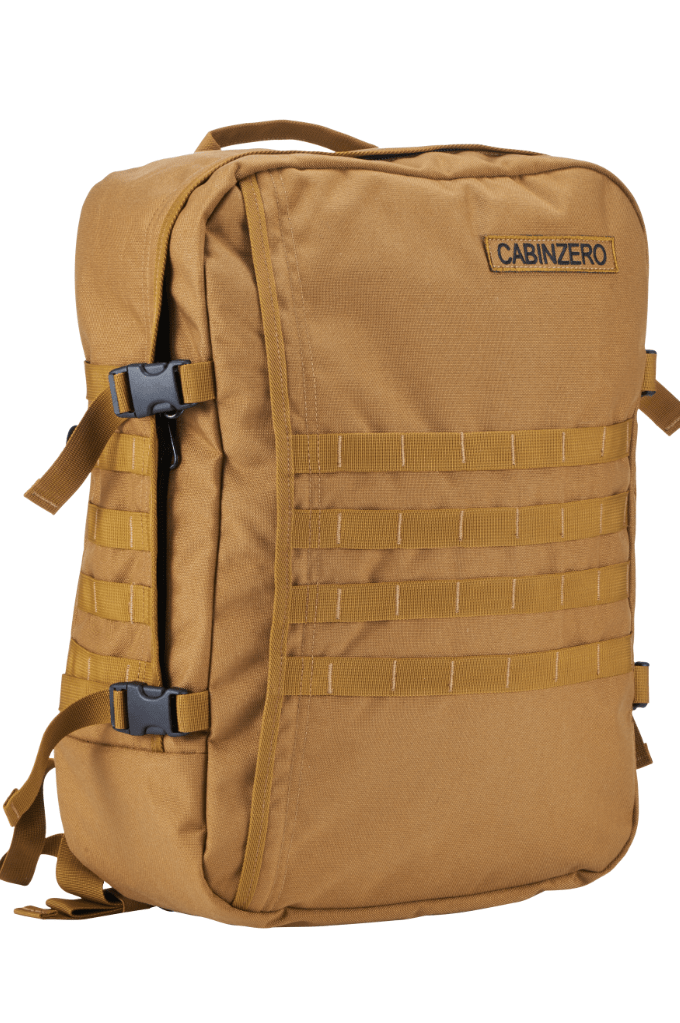 Heavy duty specs mean theres no terrain too tough for the Military CabinZero backpack. Out on the open road, you need luggage that wont let you down. With military-grade nylon, webbing, AirMesh shoulder straps, top and side grab handles, bottle pocket, lockable zippers (lock not included) this bag is as resilient as you are.