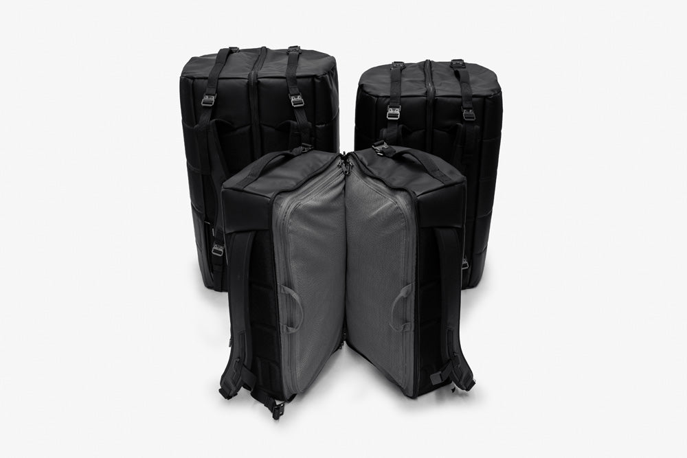 A split duffel to organize your adventures, made from recycled fabrics and ready for anything.