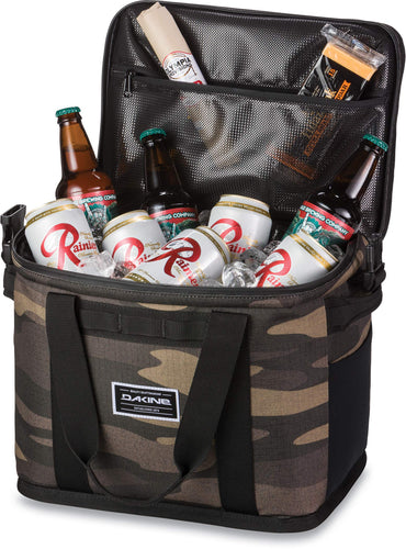 Bring the party to the people with the good time vibes of the Dakine PartyBlock bag! Fits up to 18 cans. 1 in thick closed cell foam insulation. Water-resistant YKK PU coated zipper. Padded shoulder strap converts in to partybelt. Includes four attachable insulated koozies. Internal water-resistantsnack pocket. Built-in bottle opener. Materials: 6004D polyester Volume: 15LImported. Measurements: Middle Width: 12 in Depth: 15 in Height: 15 in HandleLength: 19 in Handle Drop: 8 in Weight: 2 lbs 10.6 oz