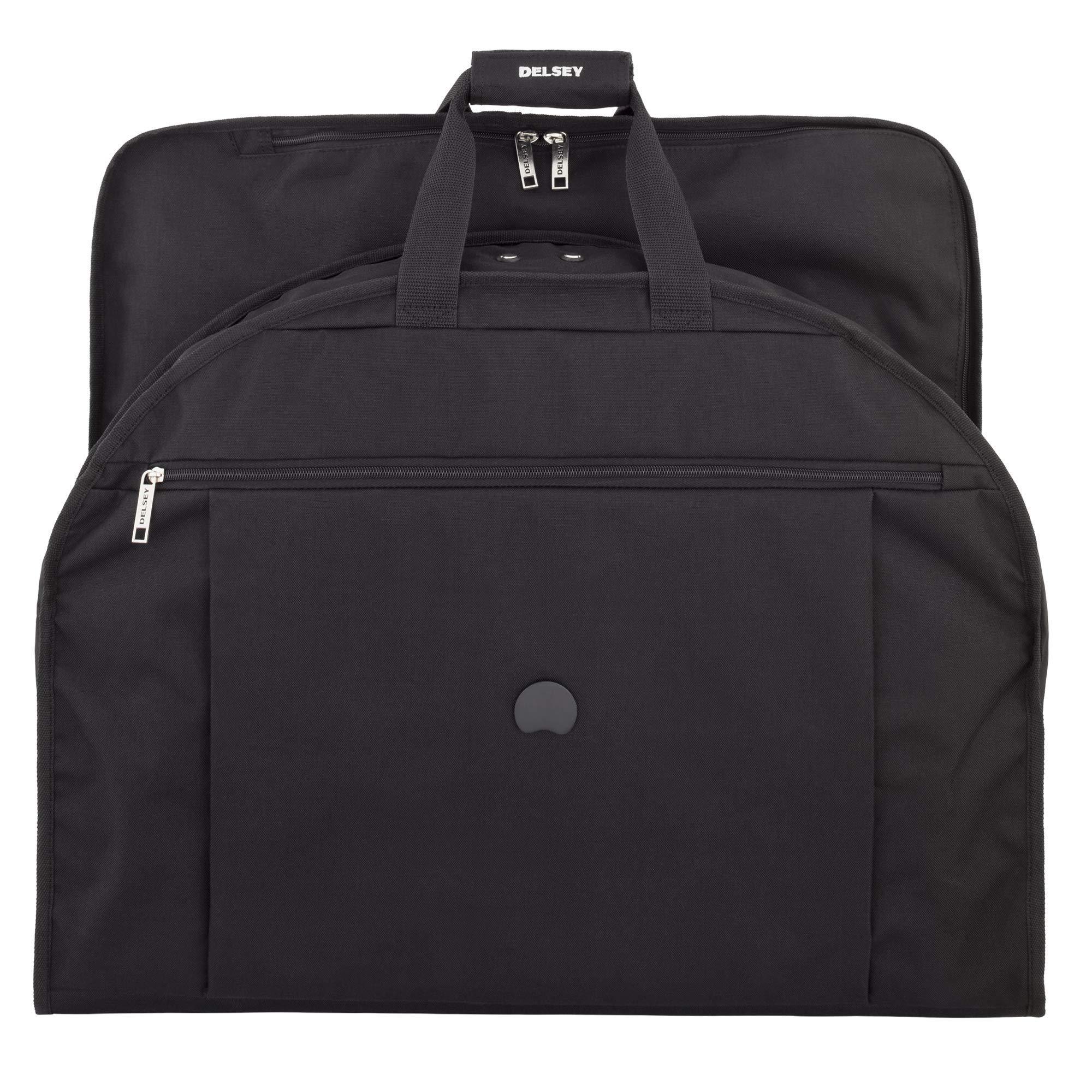 Color:Black The Garment Collection from Delsey Paris is perfect for anybusiness meeting or weekend away. This garment cover offers multiple pocketsfor organization, fastening carry handle, and a universal clamping system tofit clothes hangers for travel or storage. Keeps your clothes wrinkle free.Worldwide Limited 10 Year Warranty.