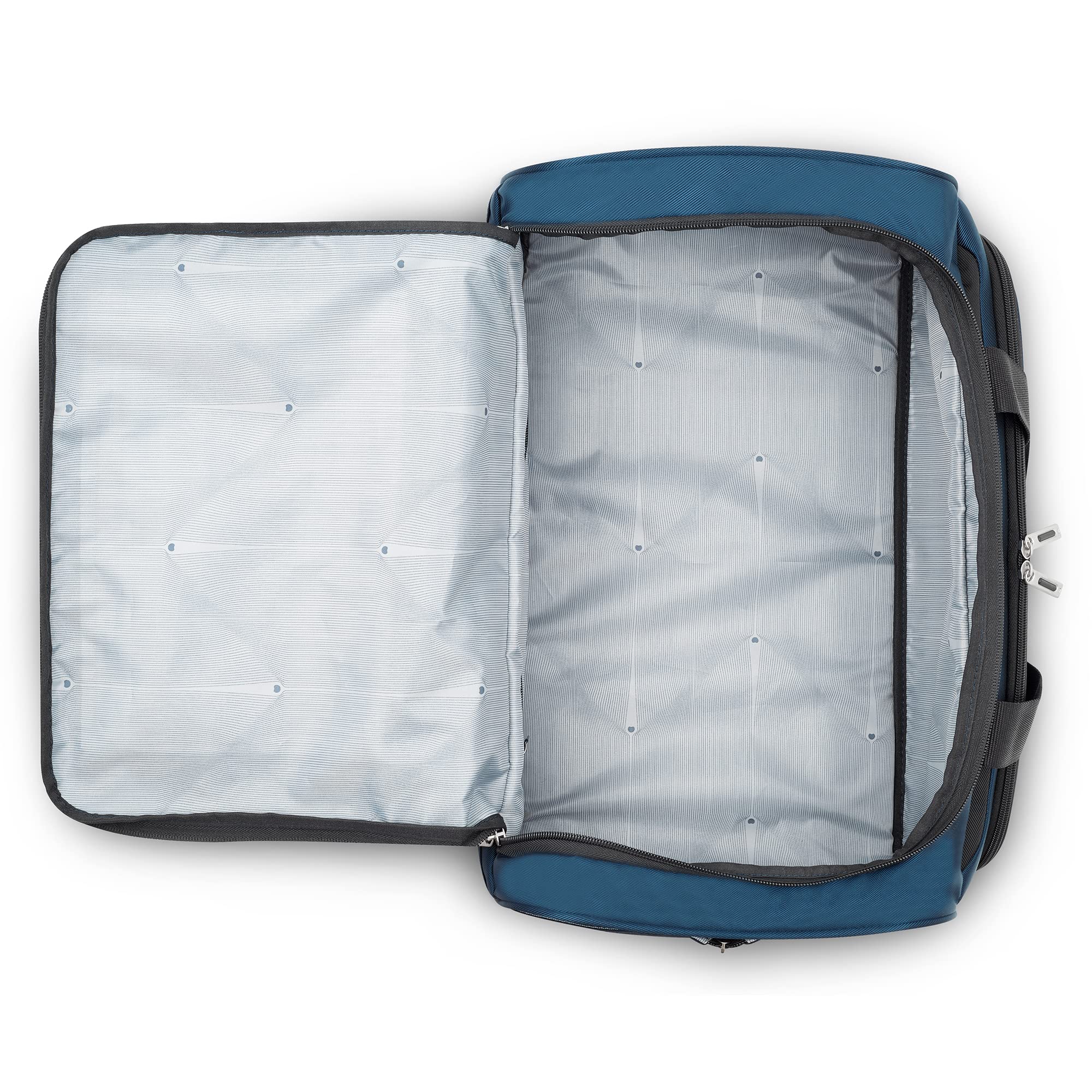 A versatile duffel carry-on with well-designed organization and a roomy packing compartment to hold enough clothing for a two-day trip. Carry it by hand, over the shoulder, or slide it over the tubes of a rolling luggage when traveling with several pieces of luggage thanks to its integrated smart band.