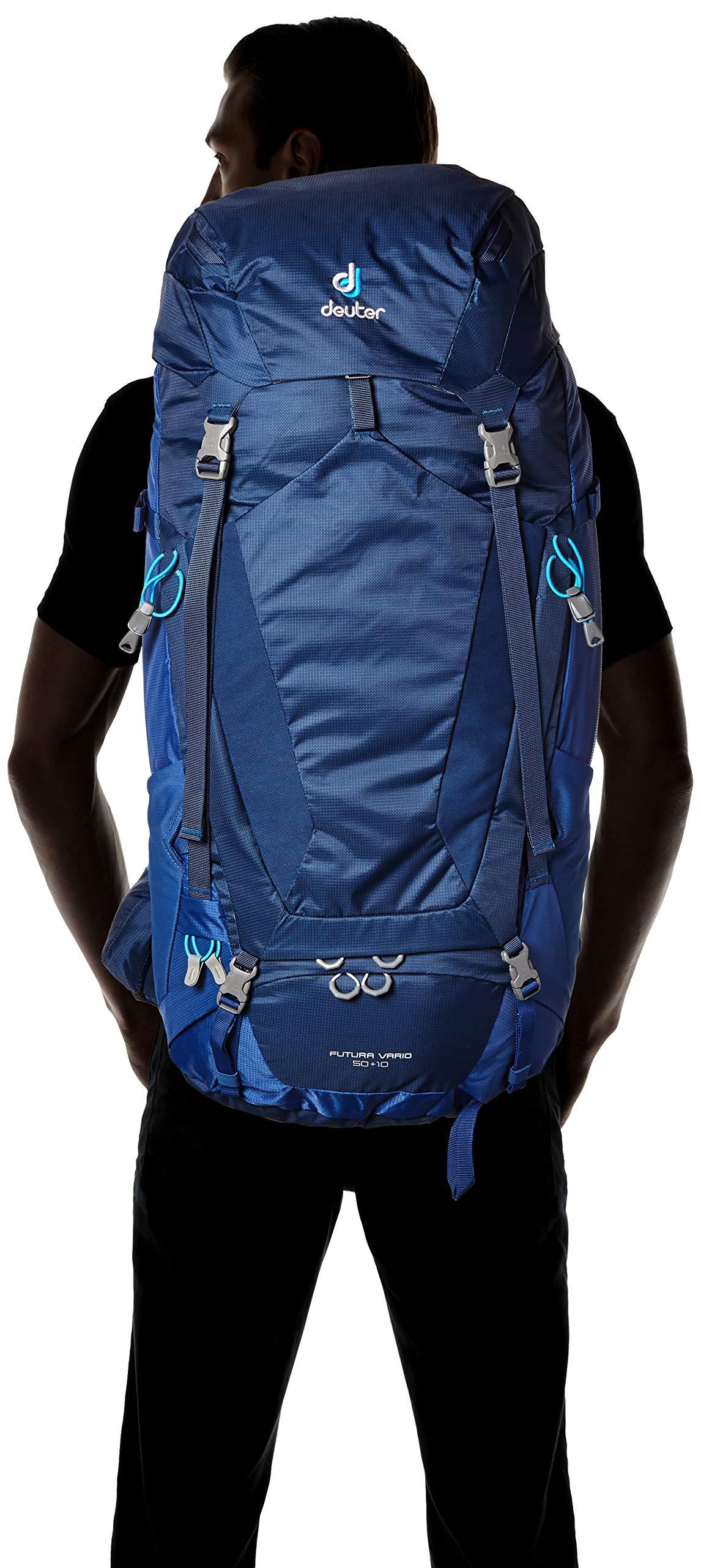 The Futura Vario 50 + 10 is a spacious backpack for long hikes and overnightbackpacking tours. The sophisticated details of the Aircomfort Sensic VarioBacksystem allow energy efficient carrying of medium loads with maximumventilation, so you can push further into the backcountry without feeling theburn. The new fit of the Aircomfort Sensic Vario Backsystem combineslightweight comfort, flexibility, and freedom of movement with maximumventilation and easy adjustability. Super-comfortable, dual-density foam hipfins with breathable 3D mesh melt into each wearer's body for a custom, high-performance fit. Accommodating internal and external pockets and loops keepyour cargo organized and easy to grab. The Futuras keep backwoods safety inmind: the detachable waterproof rain cover features a reflective logo for useat night, and the SOS label provides just-in-case lifesaving tips. Whether onurban escapades or excursions into the great outdoors, the Futura Vario 50 +10 is the high-performance, super-versatile solution for any adventure.