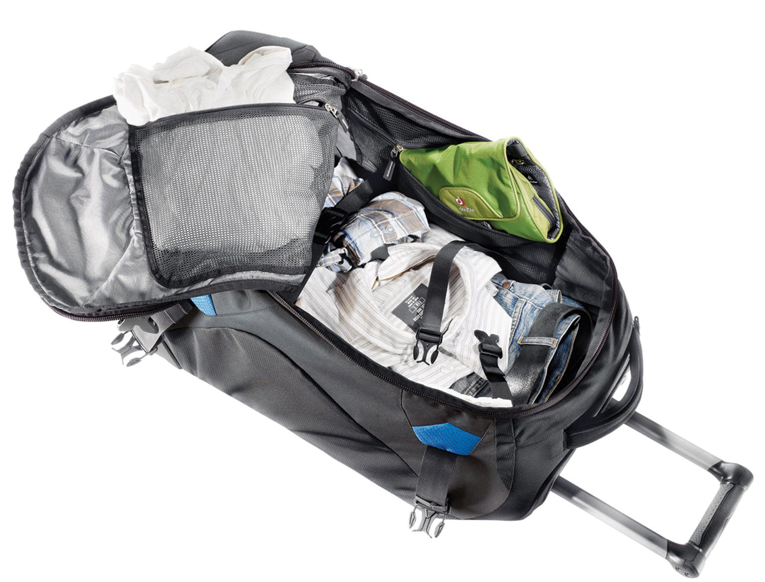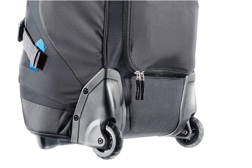 • Roller and duffle bag in one. Rugged exchangeable wheels with quality bearings covered by the hip wings when the carry system is unfolded.