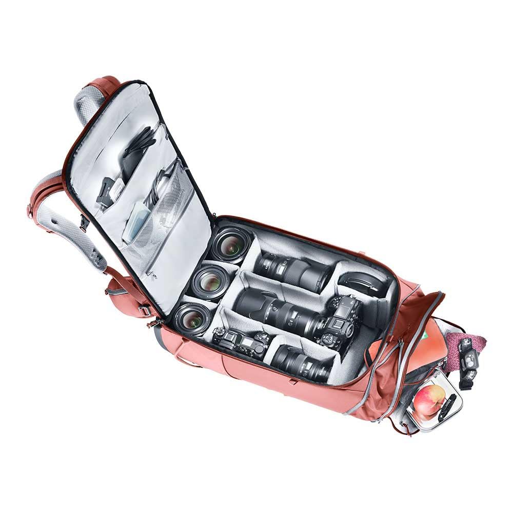 • large main compartment with Velcro dividers that can be moved to accommodate a range of sizes and types of camera gear: 5 x 1-bay dividers, 3 x small 1-bay dividers, 2 x 2-bay dividers, 2 x 3-bay dividers, 2 x 4-bay dividers